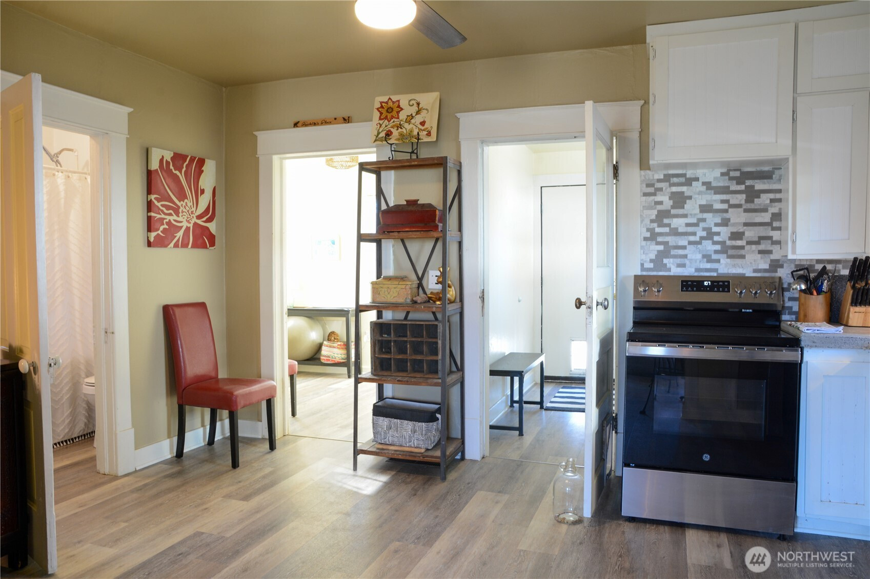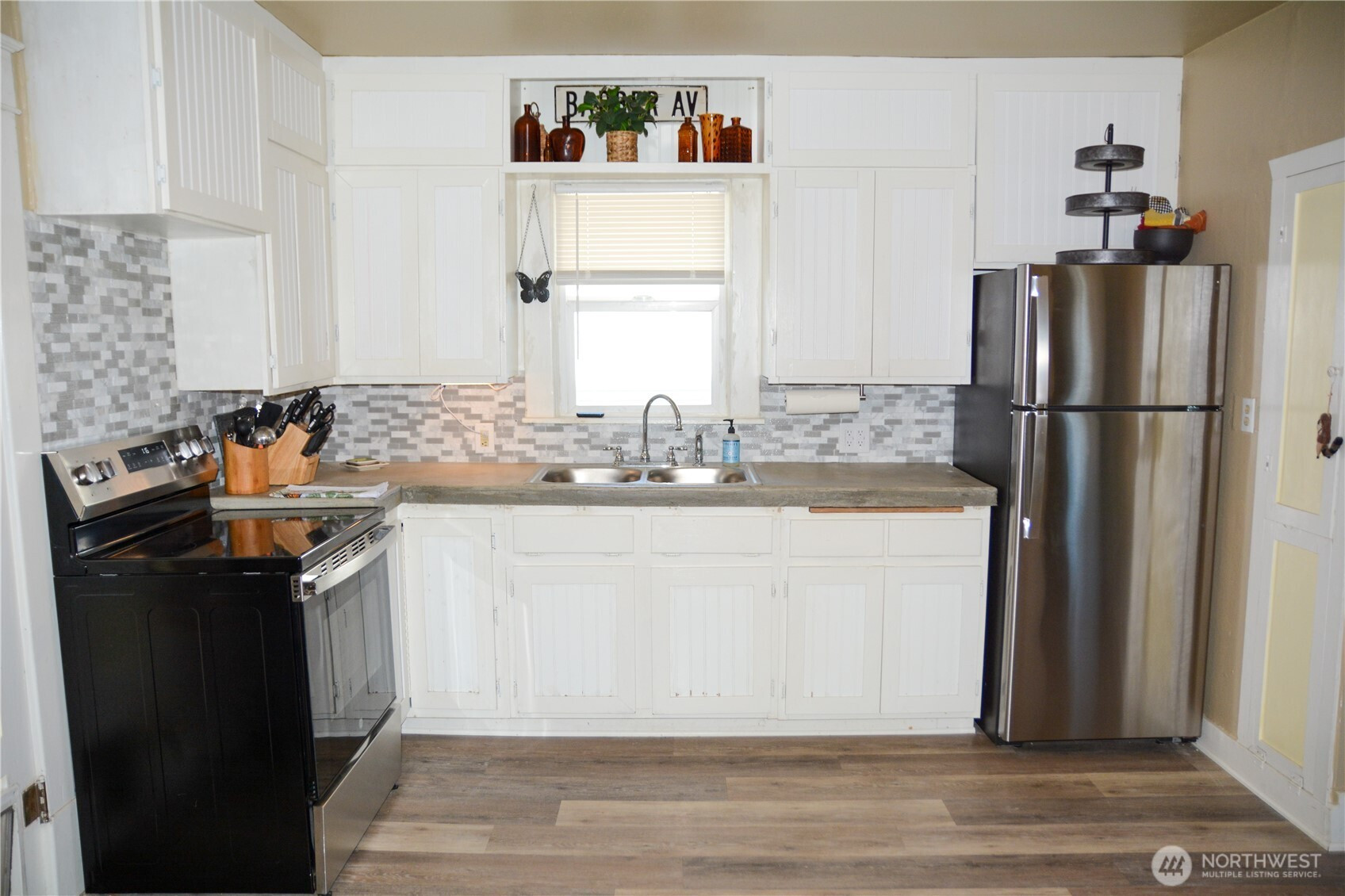 Nicely refreshed 2 bed one bath Craftsman home located in a great location in Ritzville near the Park, Golf Course, Schools, Tennis Courts and Hospital. New Concrete countertops in the kitchen. Bathroom has a Clawfoot Tub and shower. All new vinyl plank flooring and new paint inside. All appliances are new including the washer and dryer. Newer Windows. 200 amp electrical service. New water heater. Large parking area next to the house. Yard is fenced. Single car garage in the back of the home off the alley. Updated entry doors. Nice covered front porch with new Cedar decking. Plenty of storage in the basement. Short commute to Moses Lake or Spokane.