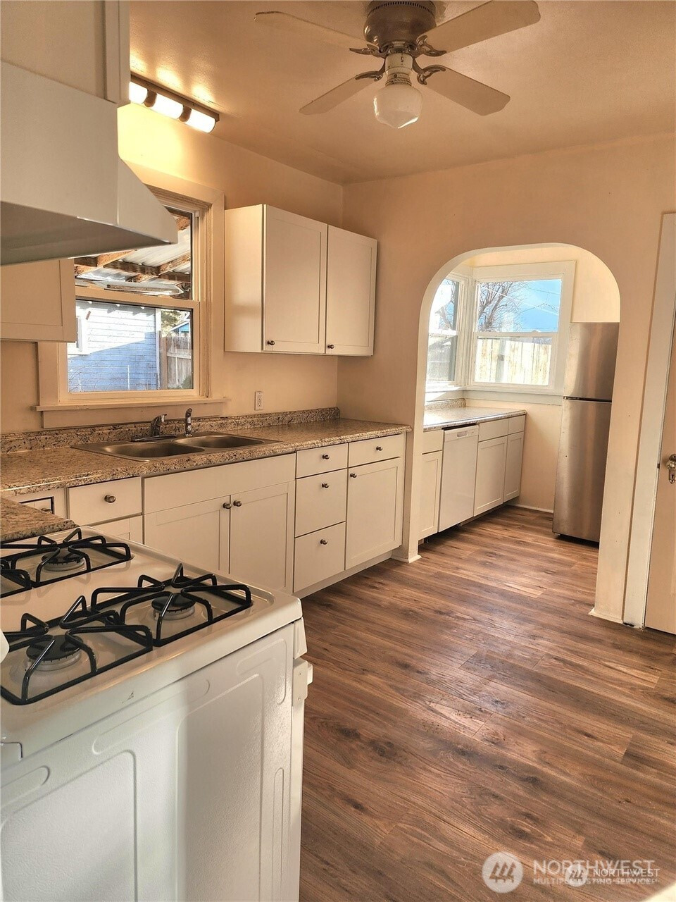 There is lots to love about this cute, refreshed home near downtown Ritzville. A new roof with new windows, interior paint, kitchen cabinets and bathroom surround and vanity all new in 2023. Newer pellet stove keeps you toasty warm in the winter with additional wall units in the bedroom to supplement. 2 good sized bedrooms upstairs w large dining area that could easily be an office area. Large basement area recent remodeled for a bonus room that could be a 3rd bedroom or play room. New electric panel installed. Separate laundry area with stackable unit off upstairs bath. Use the spacious carriage house for a storage shed. Fully fenced backyard for pets. Nice patio area off the back of the house inside the fully fenced yard for privacy.