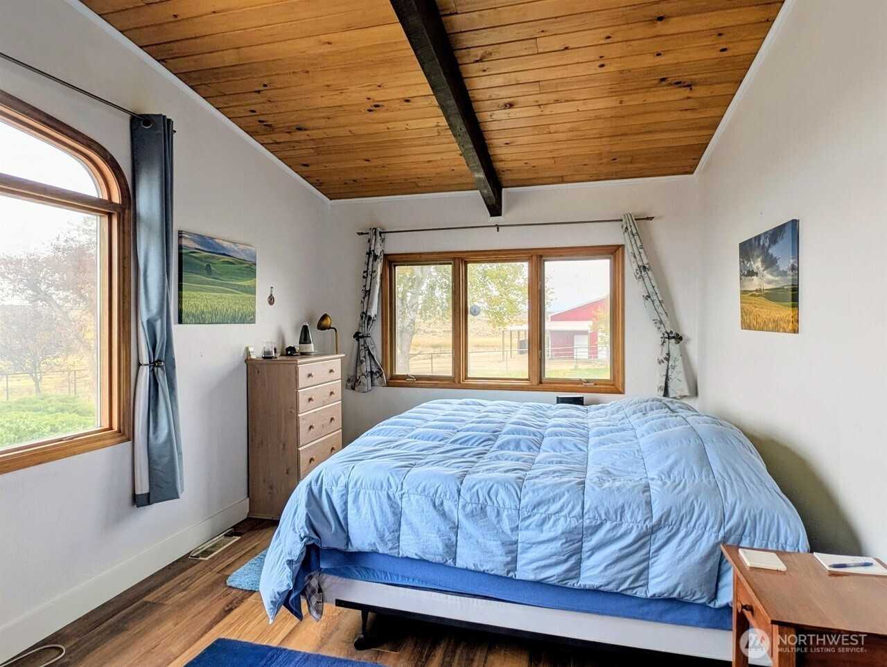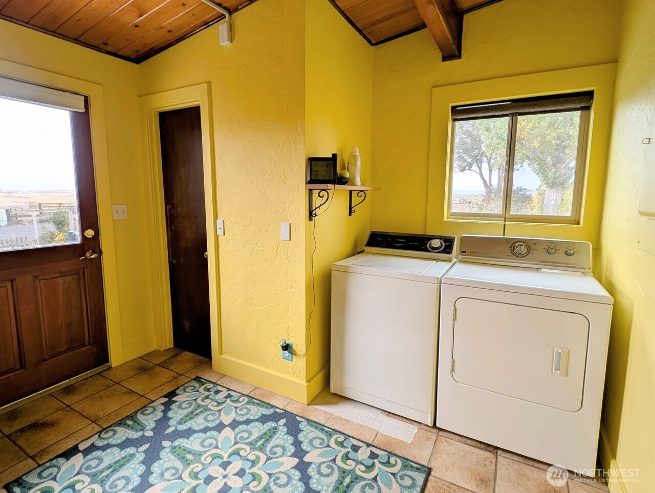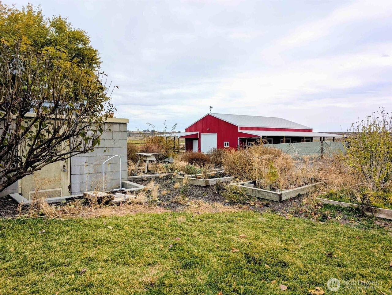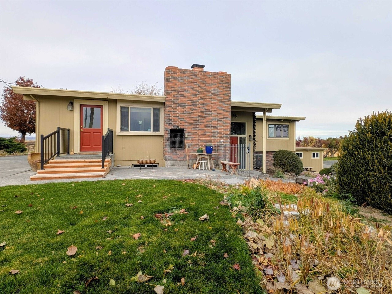 Beautifully designed Country Home showcasing sweeping territorial views of the Saddle Mountain Range and even Mt. Rainier on clear days. Enjoy Sunny Eastern Washington living with natural light filling the main living area. Gorgeous wood beams and tongue-and-groove ceilings create a warm, rustic charm. The spacious kitchen features a granite island with sink, quality cabinetry, and a large pantry- perfect for the home chef. Little touches in the home shine with pride of ownership! A true horse lover's dream, the property is fully animal-ready with secure pipe-and-cable fencing, cross-fenced paddocks, and corrals. The 40x54 barn includes five stalls with paddocks, concrete hay storage, roll-up-door, power, lighting, and 4' man-door, plus a 12' three-quarter-sided lean-to for extra covered workspace. Additional features include a generator hookup for backup power (no generator), small powered workshop, and a chicken coop with run. Conveniently located close to town and Potholes Reservoir.