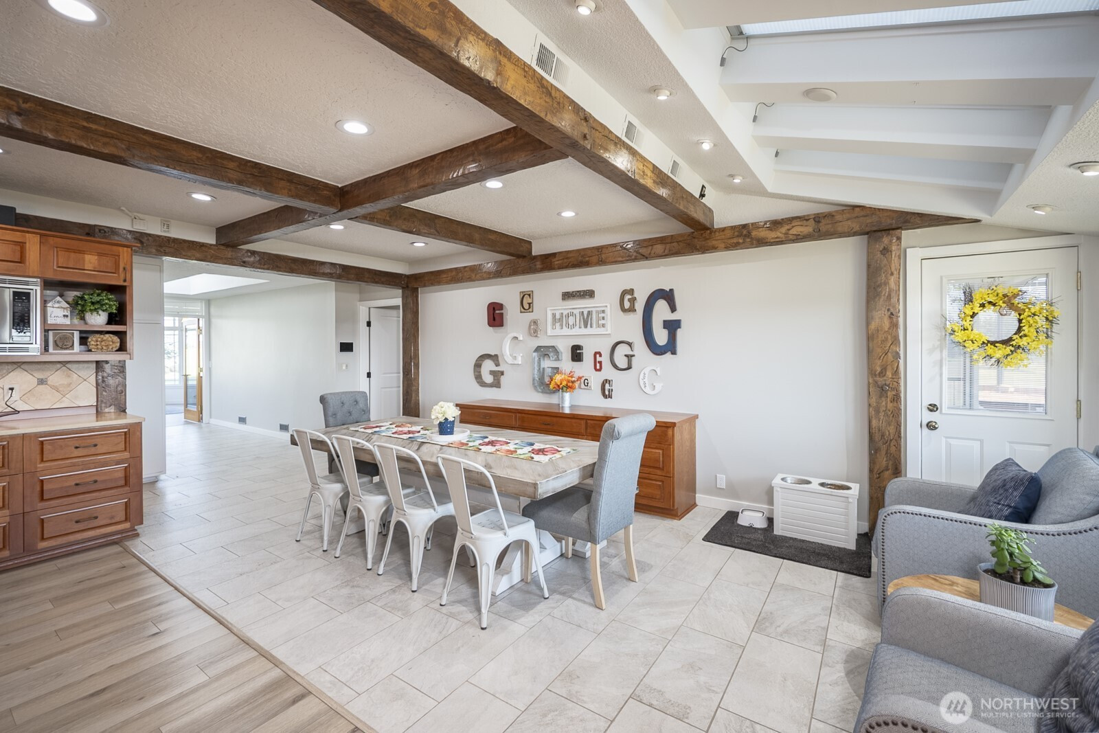 Welcome to your dream home! Nestled on 5 beautifully developed acres, this stunning 4,919 sq. ft. retreat offers breathtaking country views. Featuring 4 spacious bedrooms and 5 bathrooms, the home boasts two cozy living rooms and two full-sized, kitchens—perfect for entertaining or multi-generational living. Recently remodeled, every corner reflects meticulous craftsmanship. Enjoy a paved driveway leading to a 3-car garage and a separate shop providing even more covered parking. This fully developed property offers you the elbow room that you need and close proximity to services that you want. This serene sanctuary is where comfort meets luxury. Schedule your private tour today and experience true elegance!