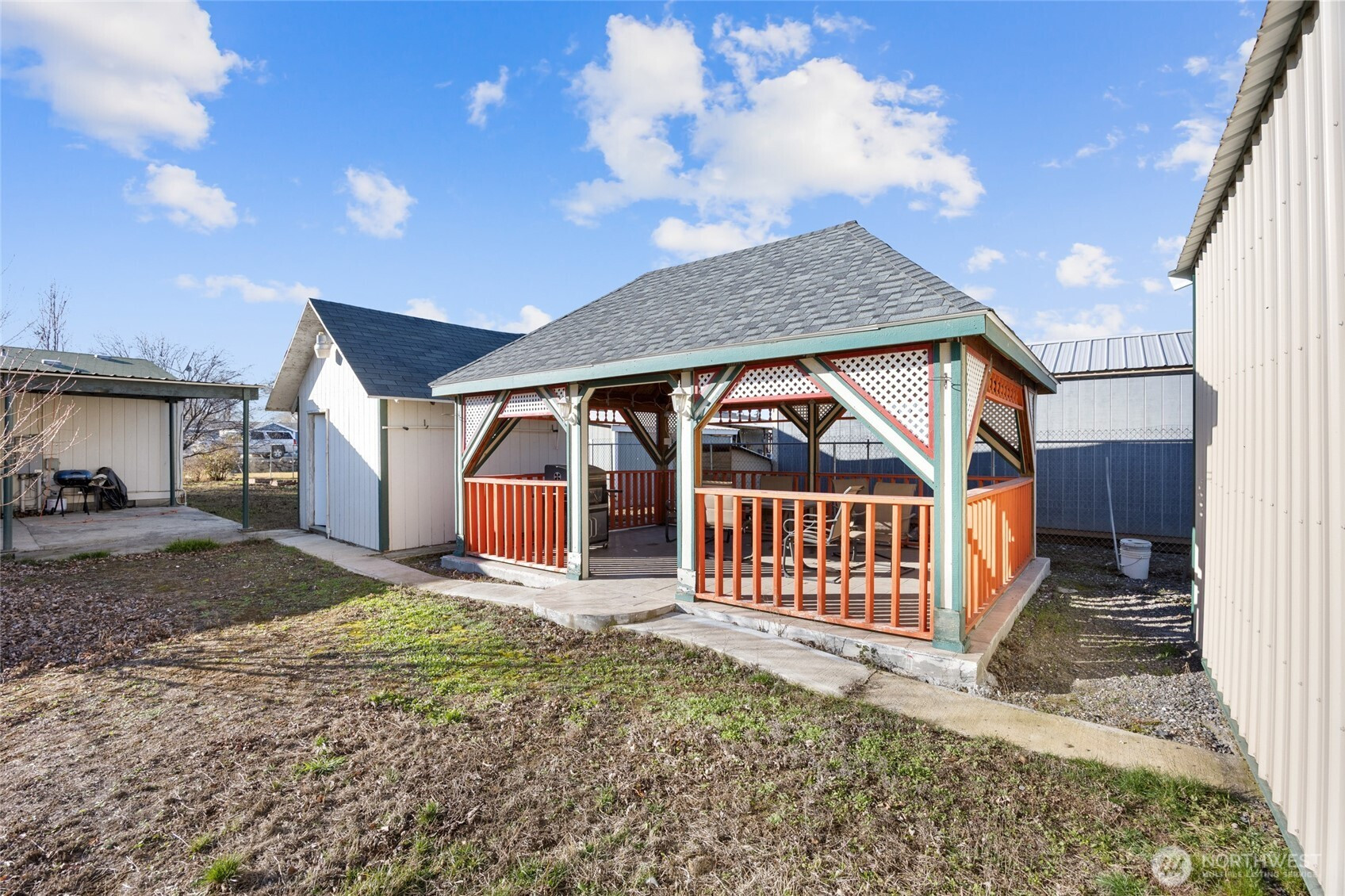 The perfect mix of charm and functionality! Check out this adorable 3-bedroom, 2-bathroom home situated on a spacious lot with room to roam. The massive backyard is an entertainer's dream, complete with a large covered gazebo that's perfect for BBQs, gatherings, outdoor dining, or relaxing no matter the season. The standout feature? A huge 720 sq ft detached shop/garage, ideal for all your toys, vehicles, workshop projects, or extra storage. An additional shed provides even more organization space.Additional highlights include a long paved driveway for easy parking and access, a fully fenced yard, and a cozy interior layout ready for your personal touch. This rare gem combines comfortable home living with serious hobby and outdoor space, perfect for car enthusiasts, DIYers, or anyone wanting room to spread out. Loaded with all the goods you've been searching for! Don't miss out schedule your showing today and fall in love with this amazing property!