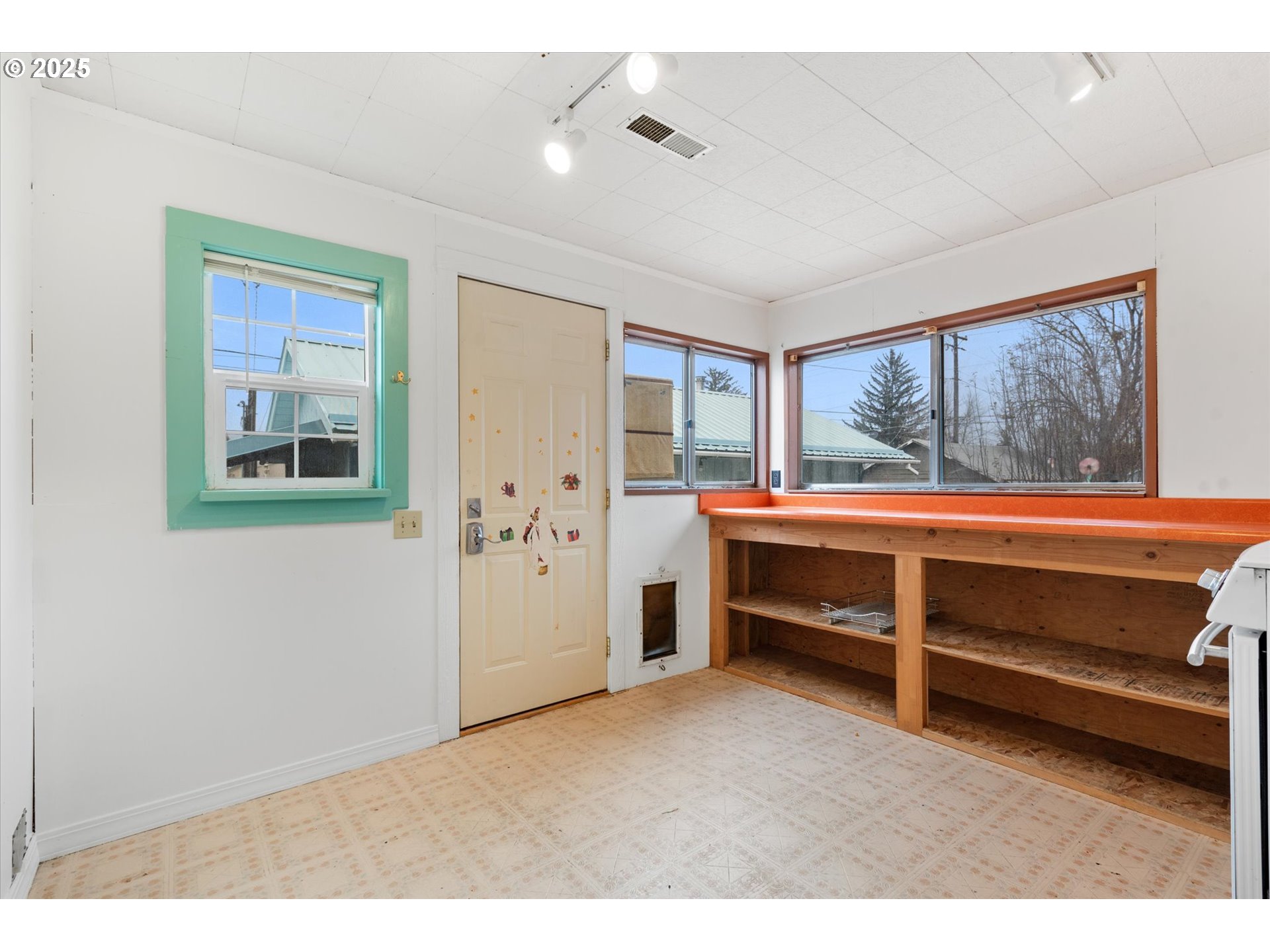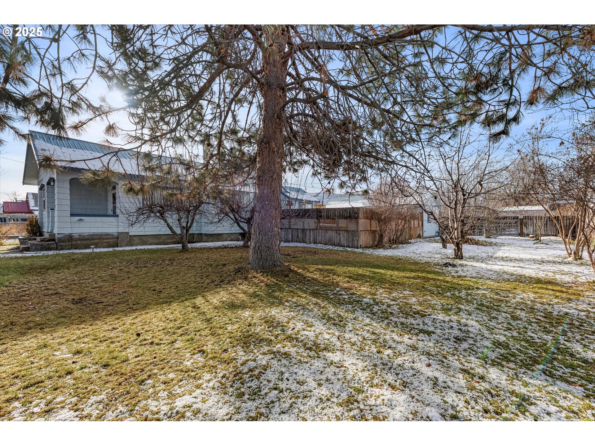 Charming, updated bungalow with shop, studio & oversized lot near historic downtown Baker City! This 2-bed, 1-bath home features a fluid layout with a cozy gas fireplace, a flexible bonus room ideal for a home office or craft space, and tasteful recent upgrades throughout. A durable metal roof, fresh finishes, and a pride-of-ownership shine make this one feel move-in ready. Step out onto the back deck and enjoy the fully fenced 125'x100' yard, complete with an internal patio fence with pond, prewired for a hot tub, and complete with an irrigation well to help keep everything green, especially the numerous fruit trees that are well established. A finished 512 sq ft outbuilding — complete with its own gas fireplace — makes a perfect artist studio, guest space, or workshop. And don’t miss the 24'x40' full shop with two overhead doors and driveway access — ideal for projects, parking, or extra storage. Alley access, a quiet historic neighborhood, and just blocks from downtown. This one’s looking great — and won’t last!