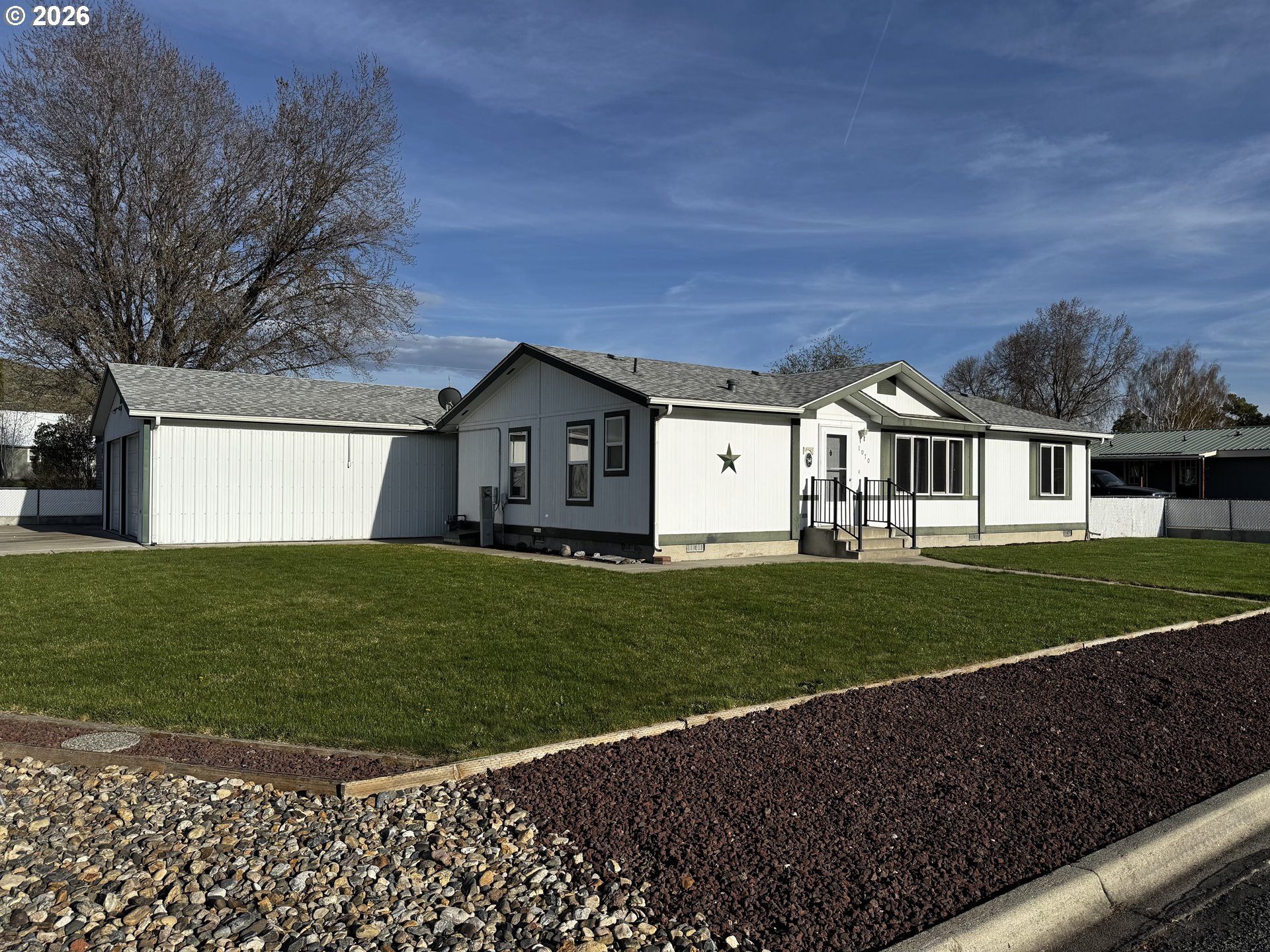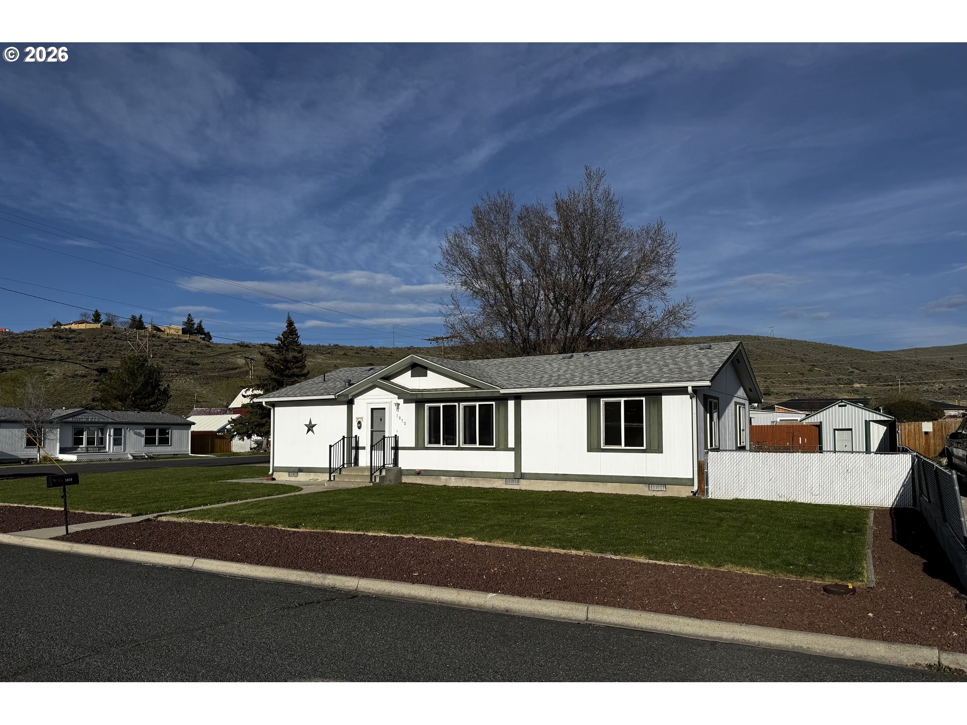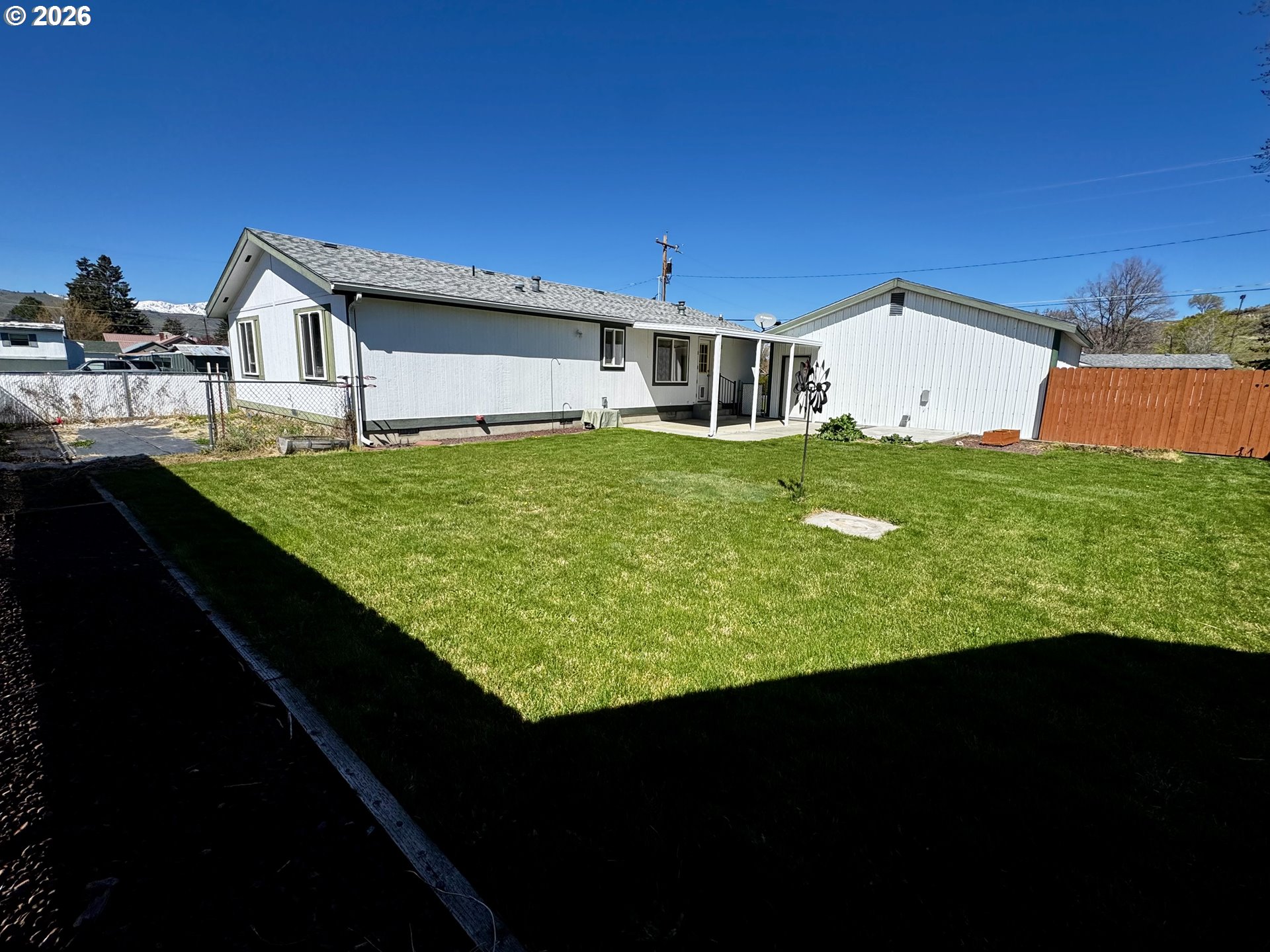 Well-cared-for 1995 Marlette manufactured home offering 3 bedrooms and 2 bathrooms with a comfortable split floor plan. This 1,344 sq. ft. home sits on an oversized corner lot, giving you space, privacy, and flexibility.The property features a fully fenced backyard, low maintenance landscaping with a sprinkler system, and mountain views in a quiet neighborhood. A standout feature is the insulated shop/garage, heated with a pellet stove—perfect for hobbies, storage, or workspace. The shop/garage is wired for 220 and has a 30 amp service for an RV. Plenty of room for all your needs with ample off-street parking, including space for RVs and recreational toys. The property also includes a poured slab and 30-amp service ready for a hot tub.A solid, move-in ready home with great outdoor space and functionality.