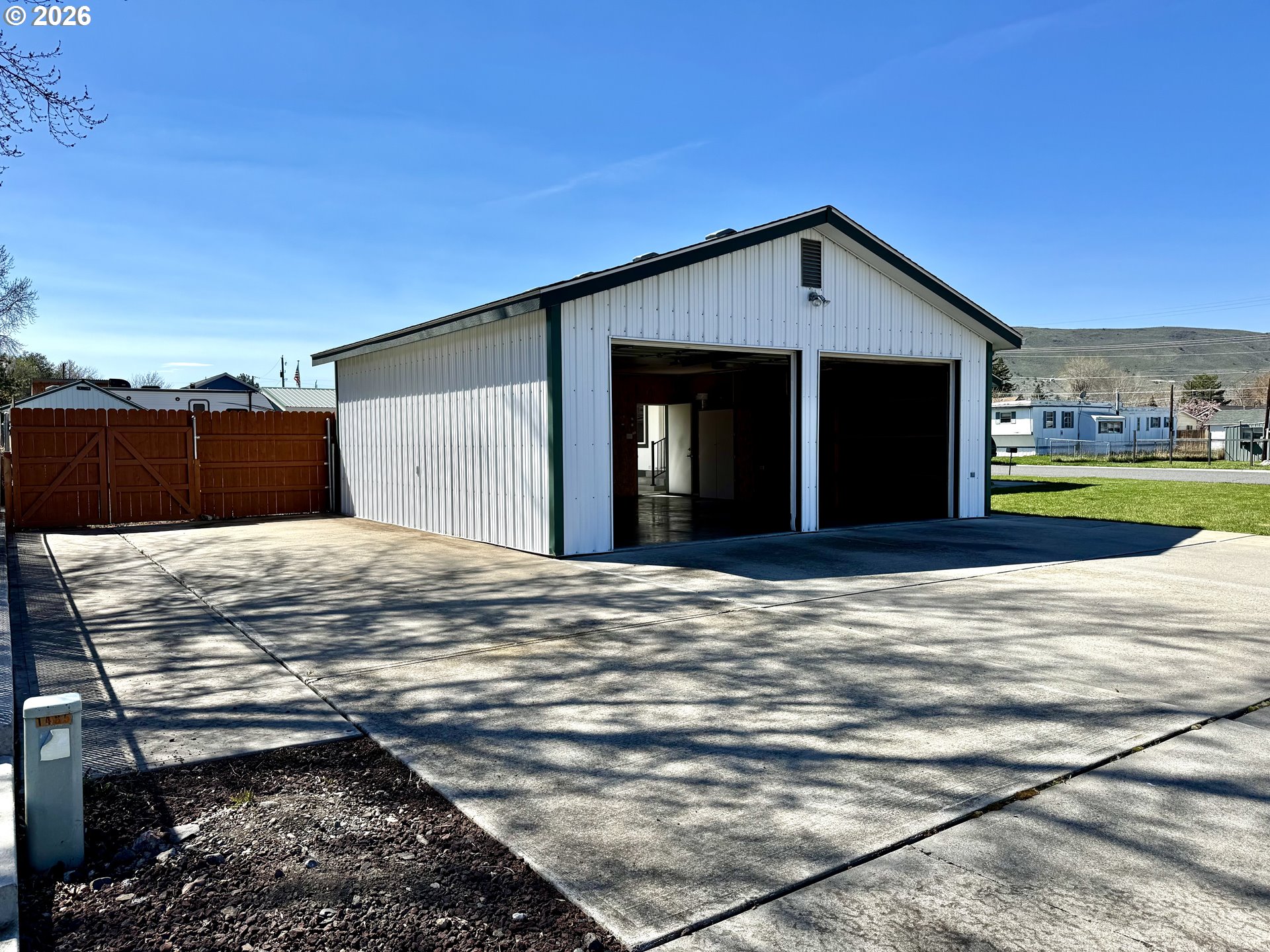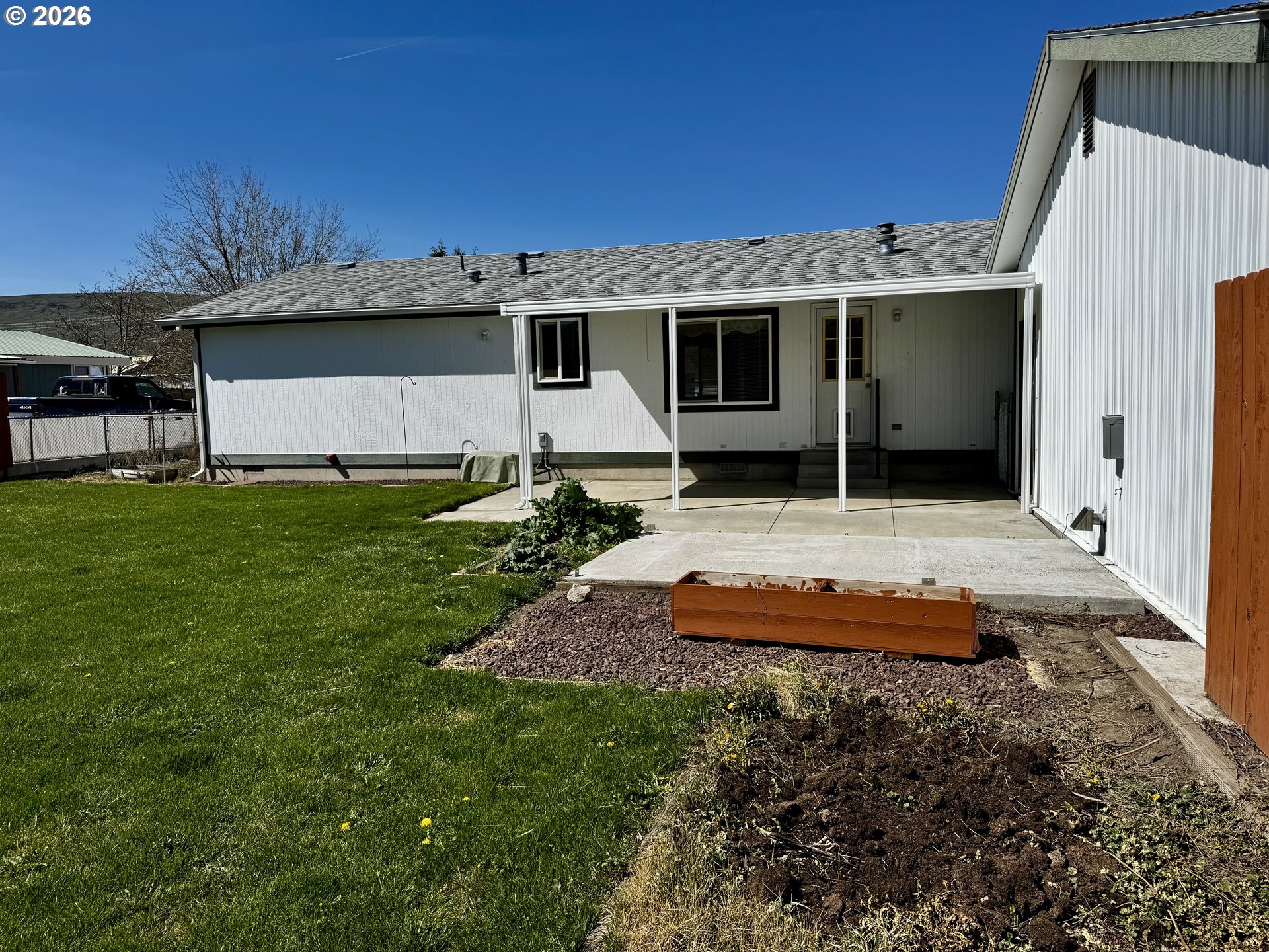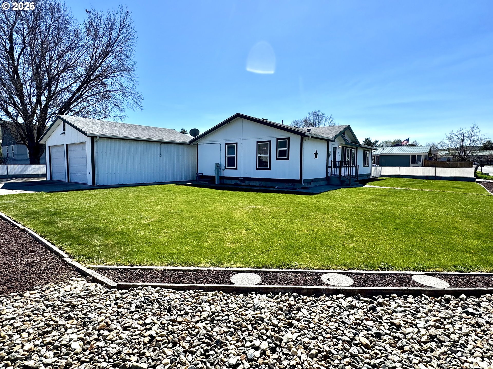 Well-cared-for 1995 Marlette manufactured home offering 3 bedrooms and 2 bathrooms with a comfortable split floor plan. This 1,344 sq. ft. home sits on an oversized corner lot, giving you space, privacy, and flexibility.The property features a fully fenced backyard, low maintenance landscaping with a sprinkler system, and mountain views in a quiet neighborhood. A standout feature is the insulated shop/garage, heated with a pellet stove—perfect for hobbies, storage, or workspace. The shop/garage is wired for 220 and has a 30 amp service for an RV. Plenty of room for all your needs with ample off-street parking, including space for RVs and recreational toys. The property also includes a poured slab and 30-amp service ready for a hot tub.A solid, move-in ready home with great outdoor space and functionality.