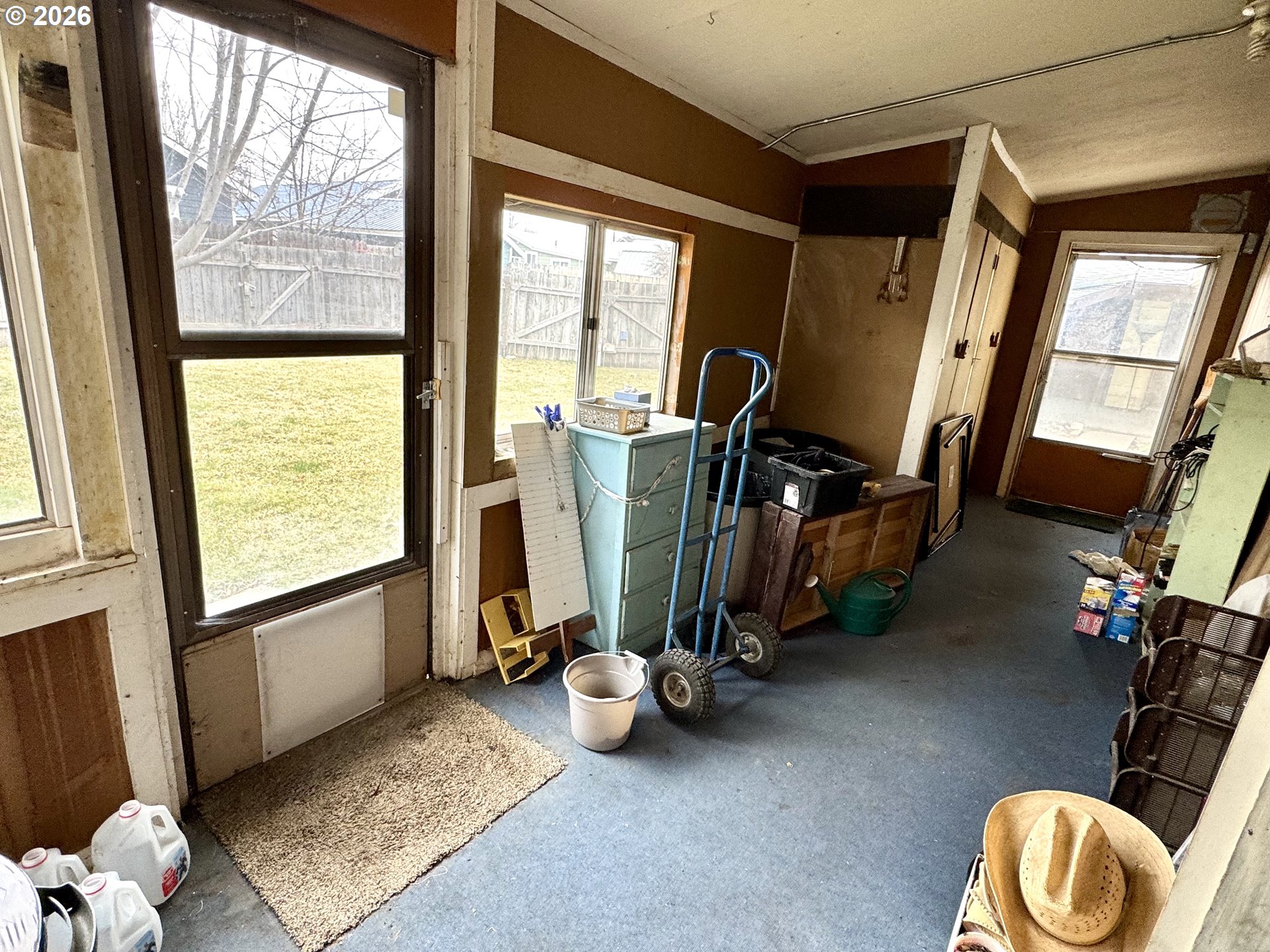 Charming Bungalow in the heart of historic Baker City. This two-bedroom, two-bath home offers a flexible floor plan with an additional room that could serve as an office, nursery, or extra storage. Enjoy the covered front porch and fully fenced yard situated on a double lot. The detached two-car garage and workshop provide plenty of storage and a the private mother-in-law suite offers great potential for guests or multi-generational living, hobbies or projects. The unique drive-through carport provides convenient access from Cherry Street to the alley, making parking easy with plenty of room for RVs, toys, or additional vehicles. This property blends character, versatility, and space. Come check it out!