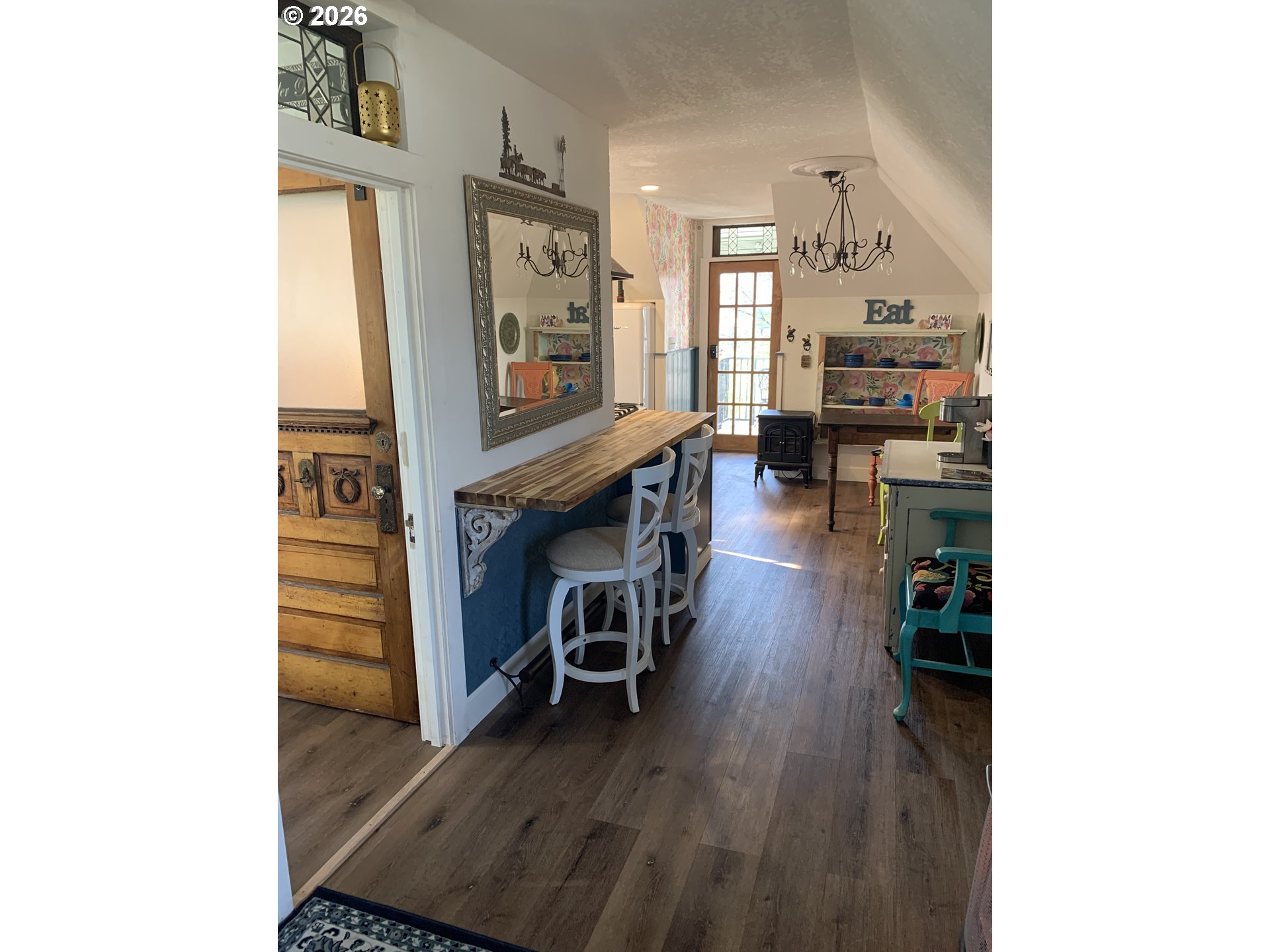 RARE opportunity for RIVER FRONT property ONLY BLOCKS FROM DOWNTOWN! This charming property is currently set up as a duplex, but could easily be converted back to a single-residence home. The downstairs unit boasts a lovely front porch, 2 bedrooms, bathroom, and large kitchen - not to mention all of the lovely upgrades enhancing the historical charm of the house. Upstairs is accessed from the side yard, up an exterior stairwell. The upstairs unit features a bedroom and office/2nd bedroom, along with fully renovated kitchen and bathroom. This charmer backs up to the Powder River and is only 2 blocks from the historic downtown.