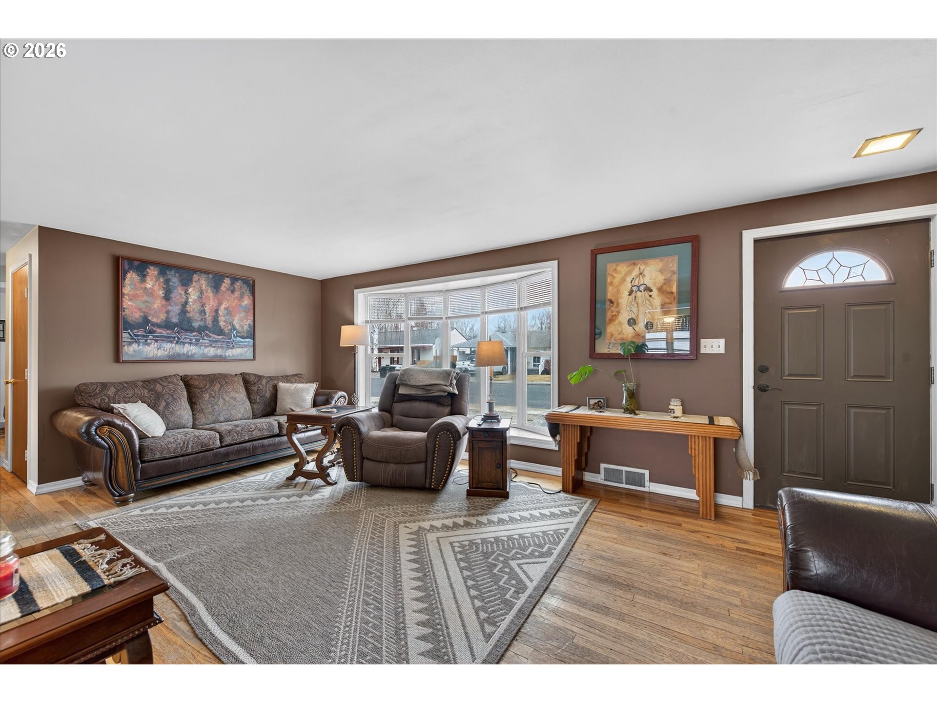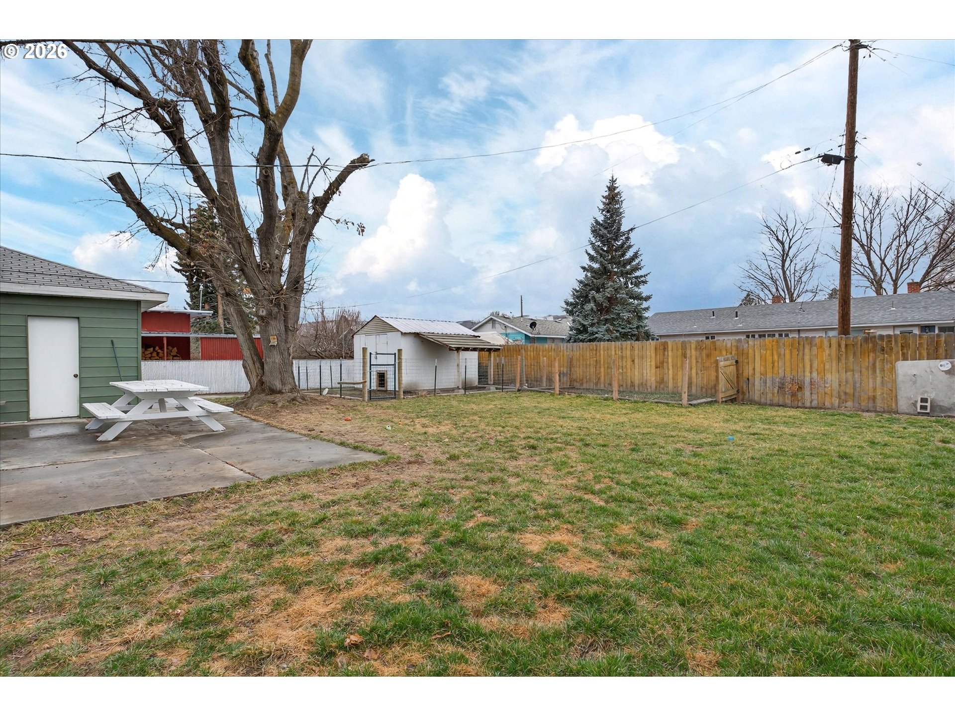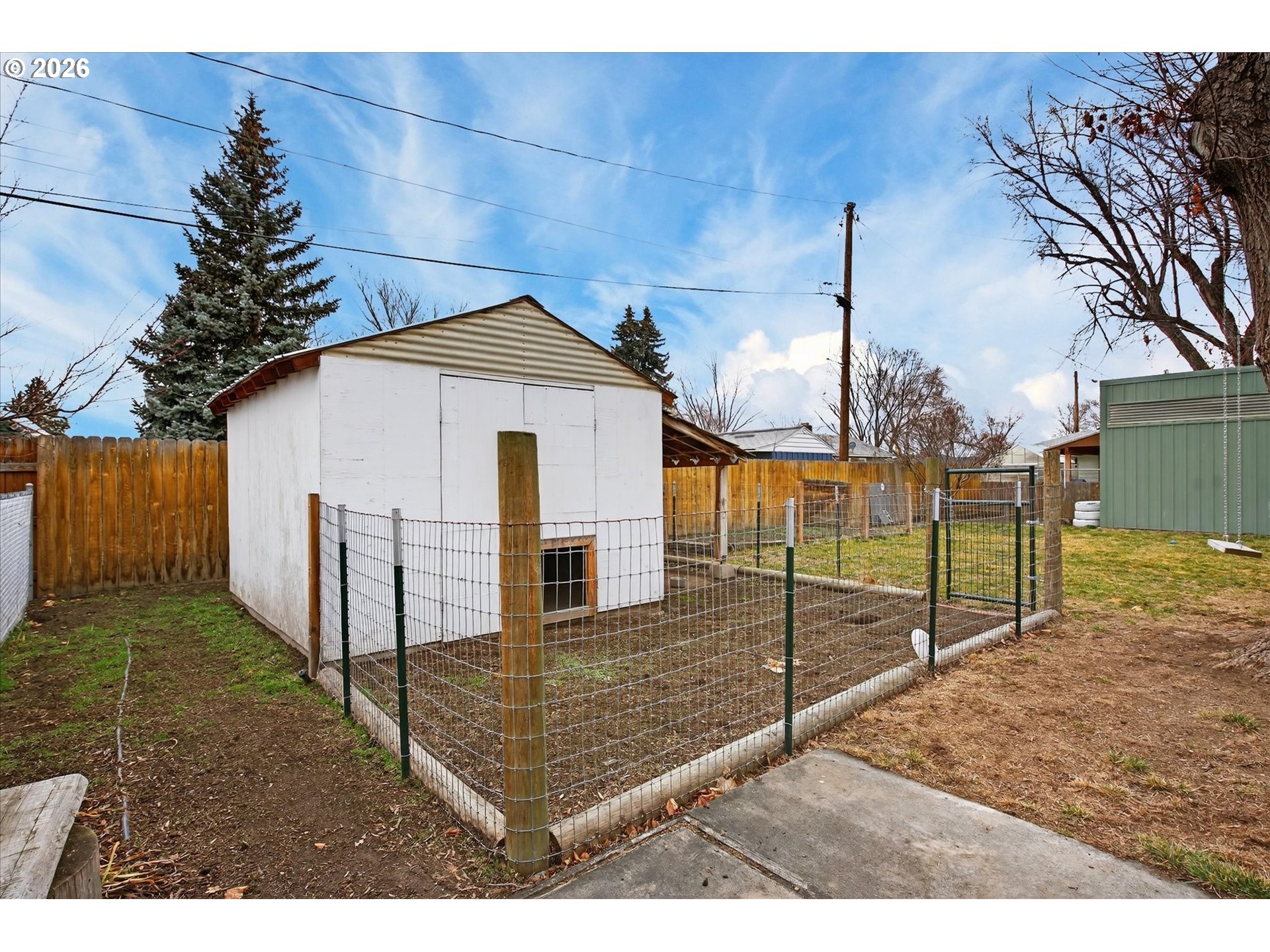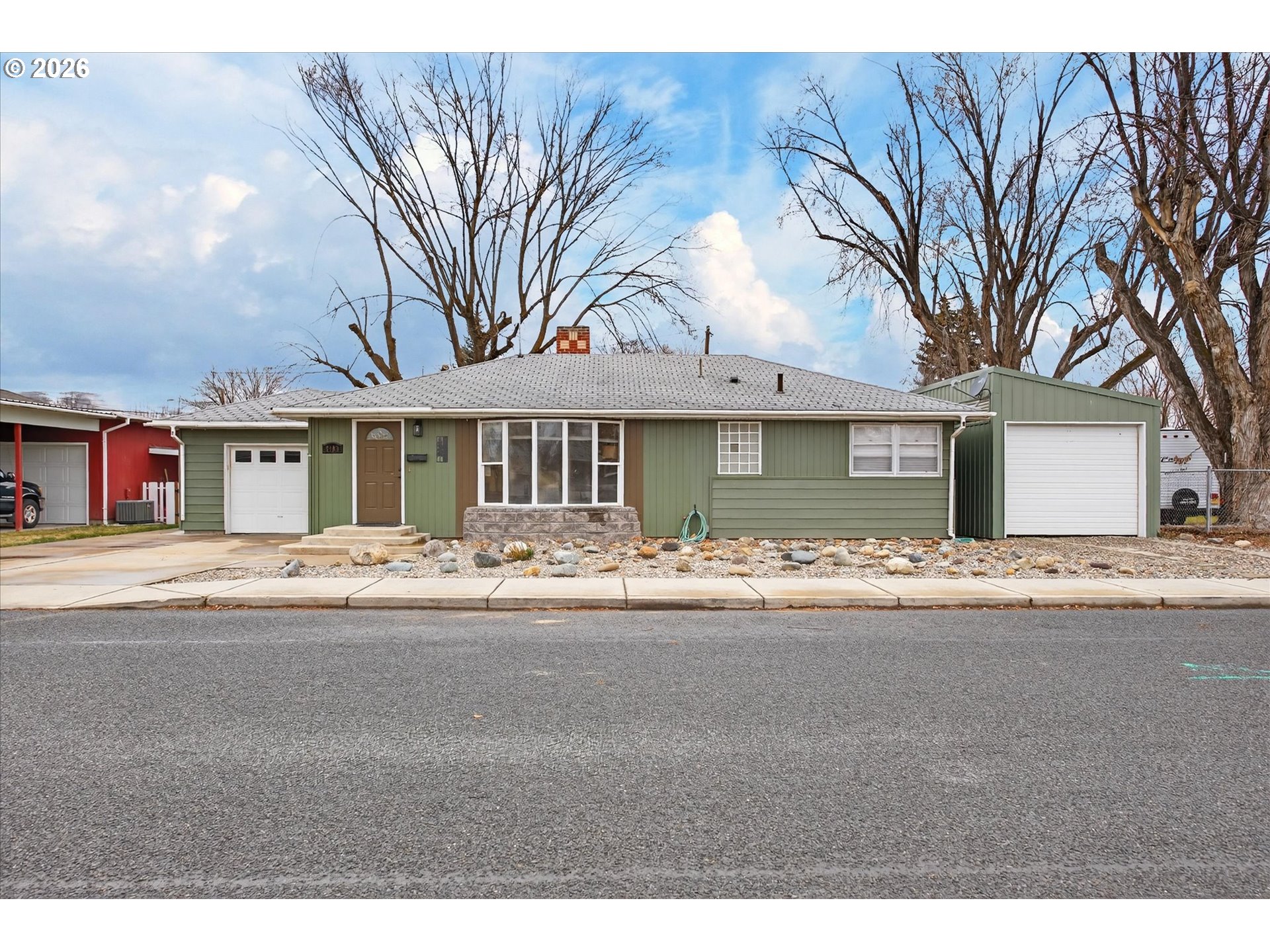 Well-maintained Mid-Century Ranch in the highly desirable Grandview neighborhood of Baker City, just minutes from historic downtown, local dining, and the Leo Adler Memorial Parkway walking path. This 2 bedroom, 2 bath home offers timeless character with original hardwood floor and fireplace. The basement provides flexible space with potential for a third bedroom, home office, or additional family room. A low-maintenance xeriscaped front yard and a spacious backyard featuring a patio and garden area. A versatile outbuilding works well as a dog run, chicken coop, or additional storage. The property includes a single attached garage plus an impressive 12' x 60' enclosed carport with roll-up door—ideal for RV parking, toys, workshop space, or extra covered storage. Rare covered parking capacity combined with in-town convenience makes this property a standout.