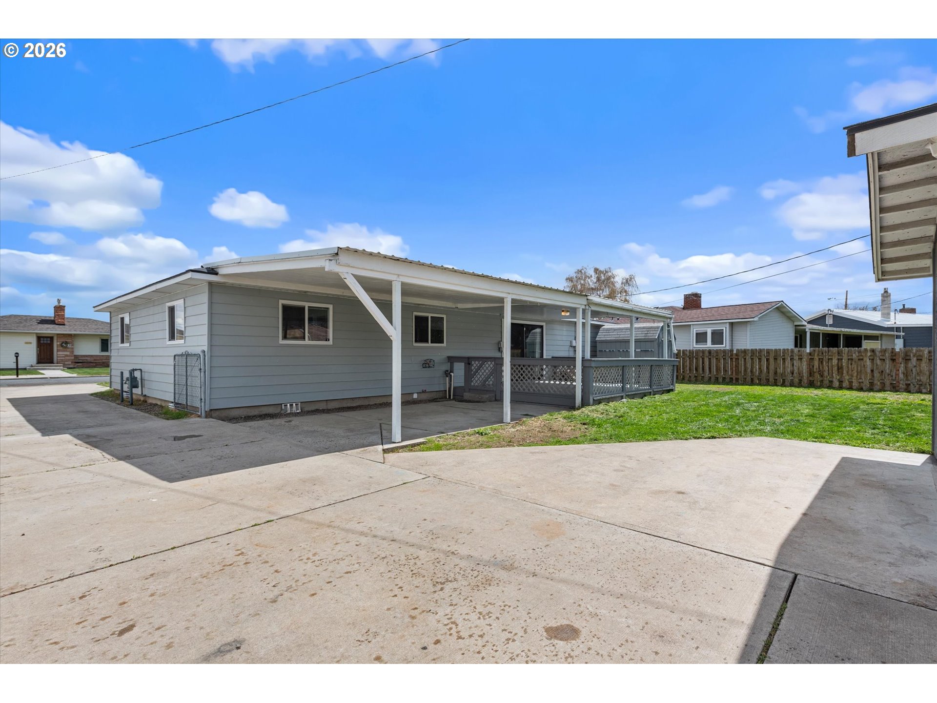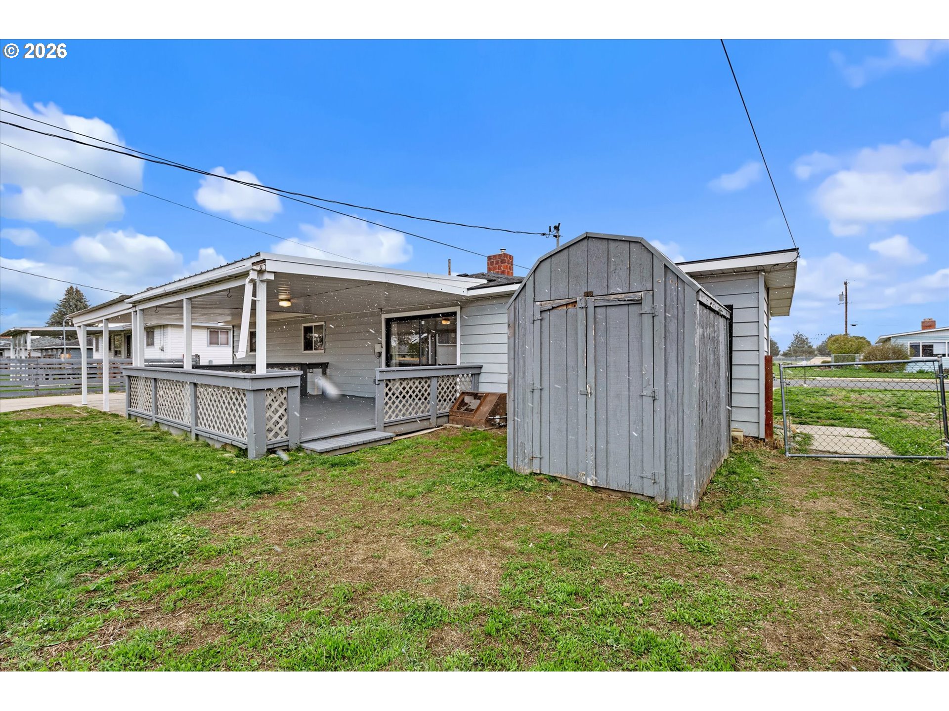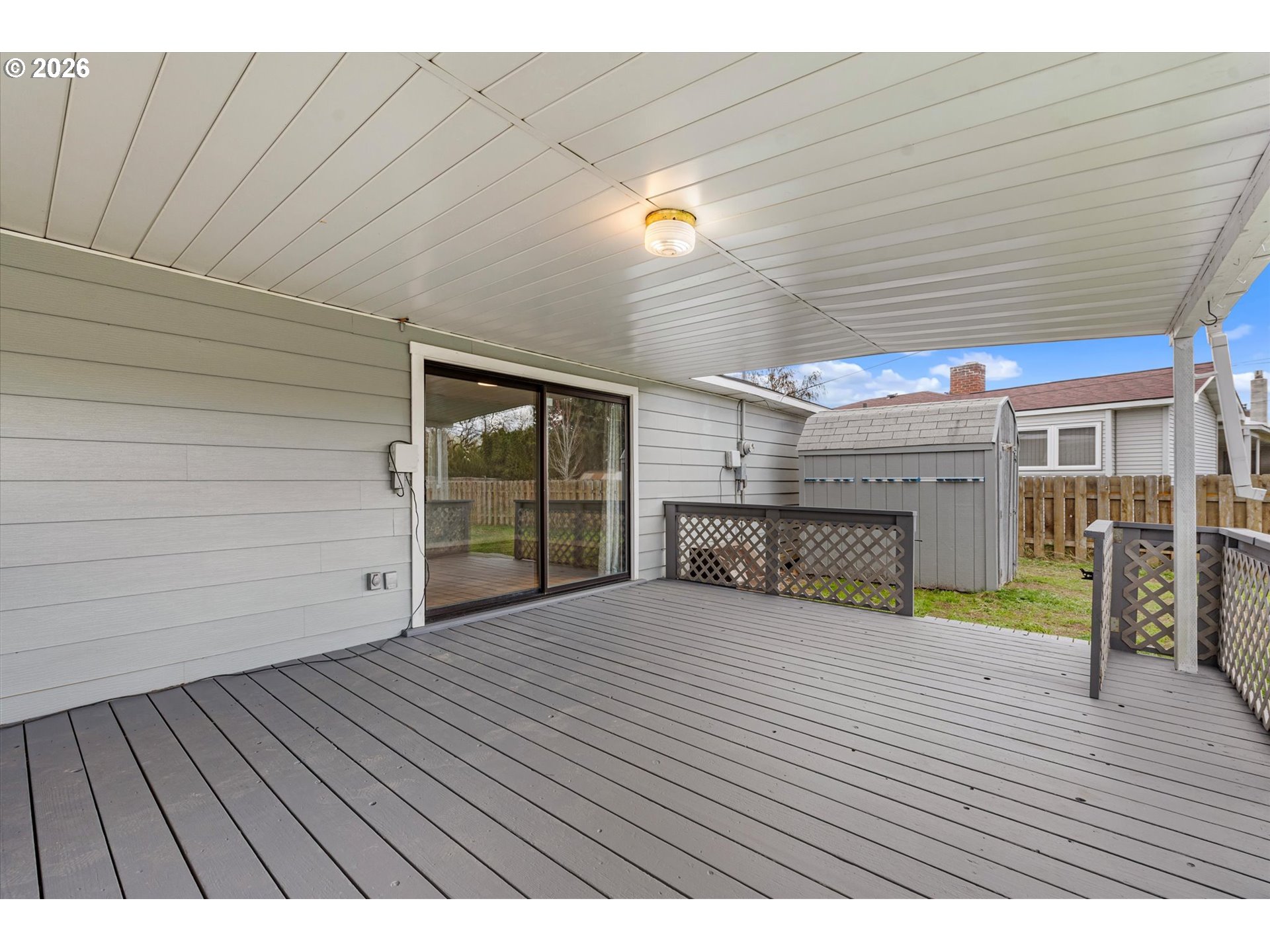(503) 893-8874Mid-century modern 2 bed, 2 bath home with a functional open kitchen/dining layout. Features original hardwood floors, fresh interior paint, and a cozy gas fireplace. One bath offers a walk-in shower, the other a tub. Updates include furnace, A/C, and on-demand hot water. Exterior highlights include a covered deck for seasonal use, RV parking, greenhouse, attached carport, and detached oversized garage.