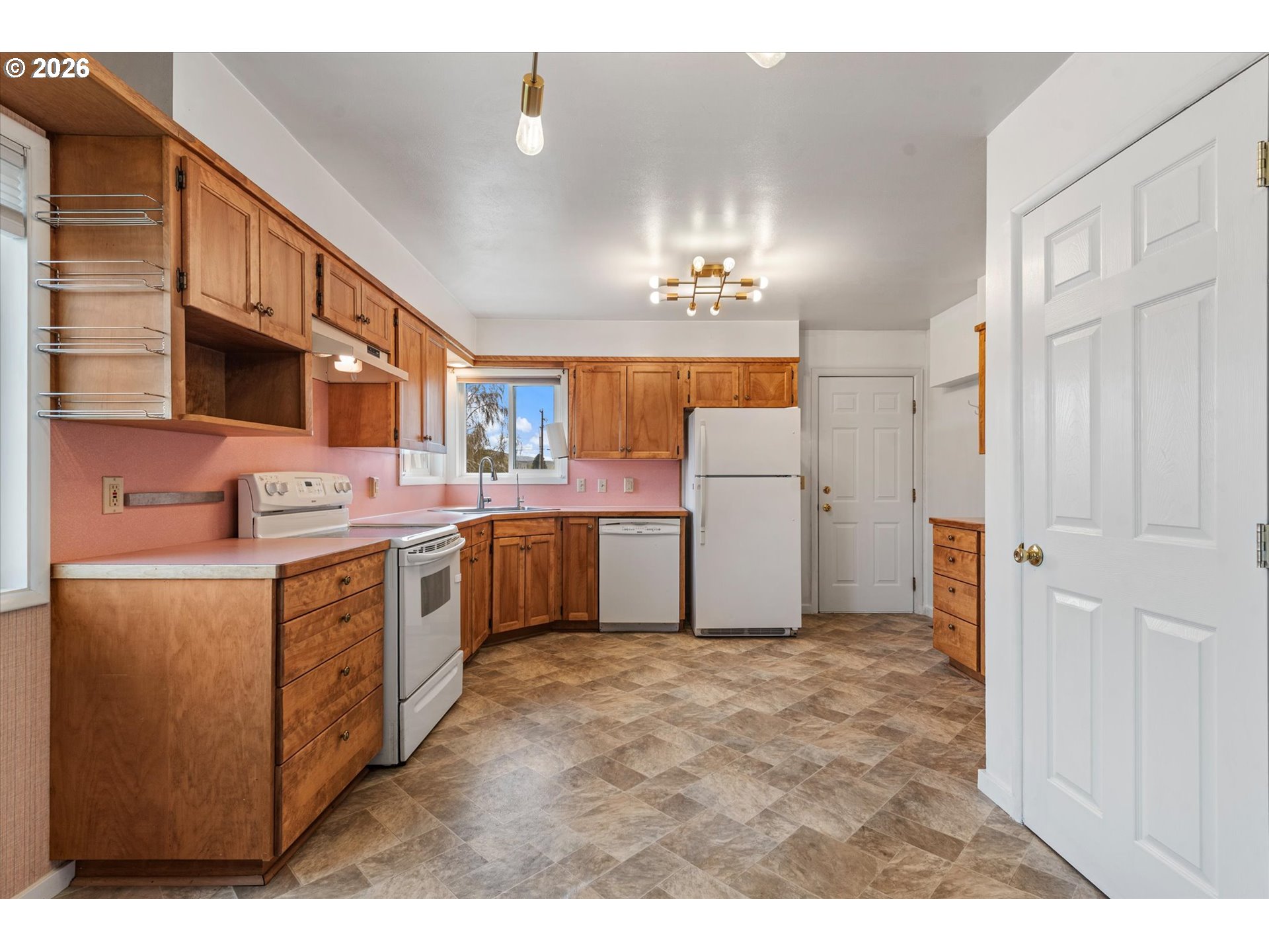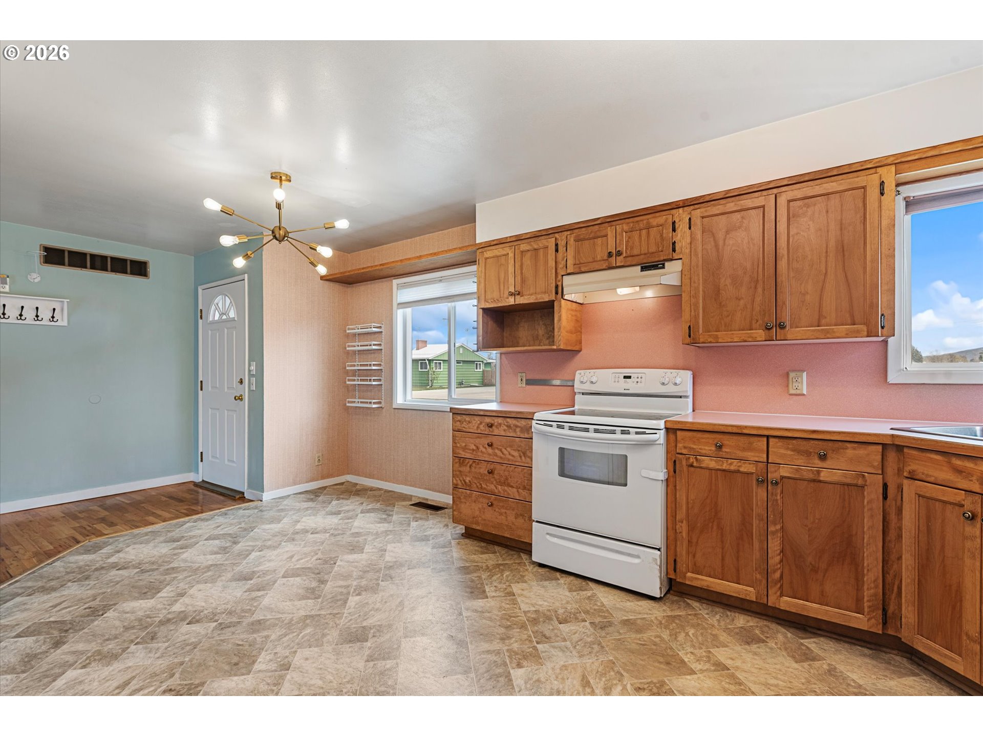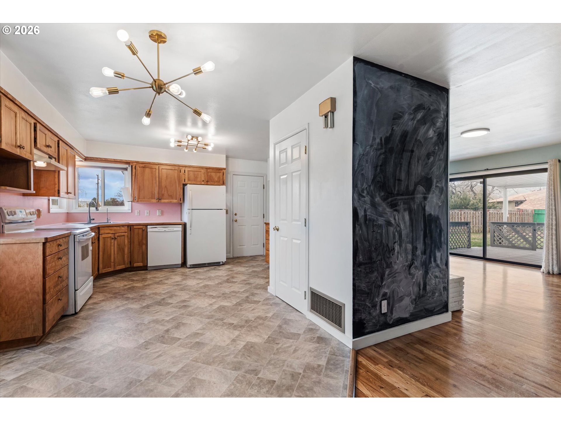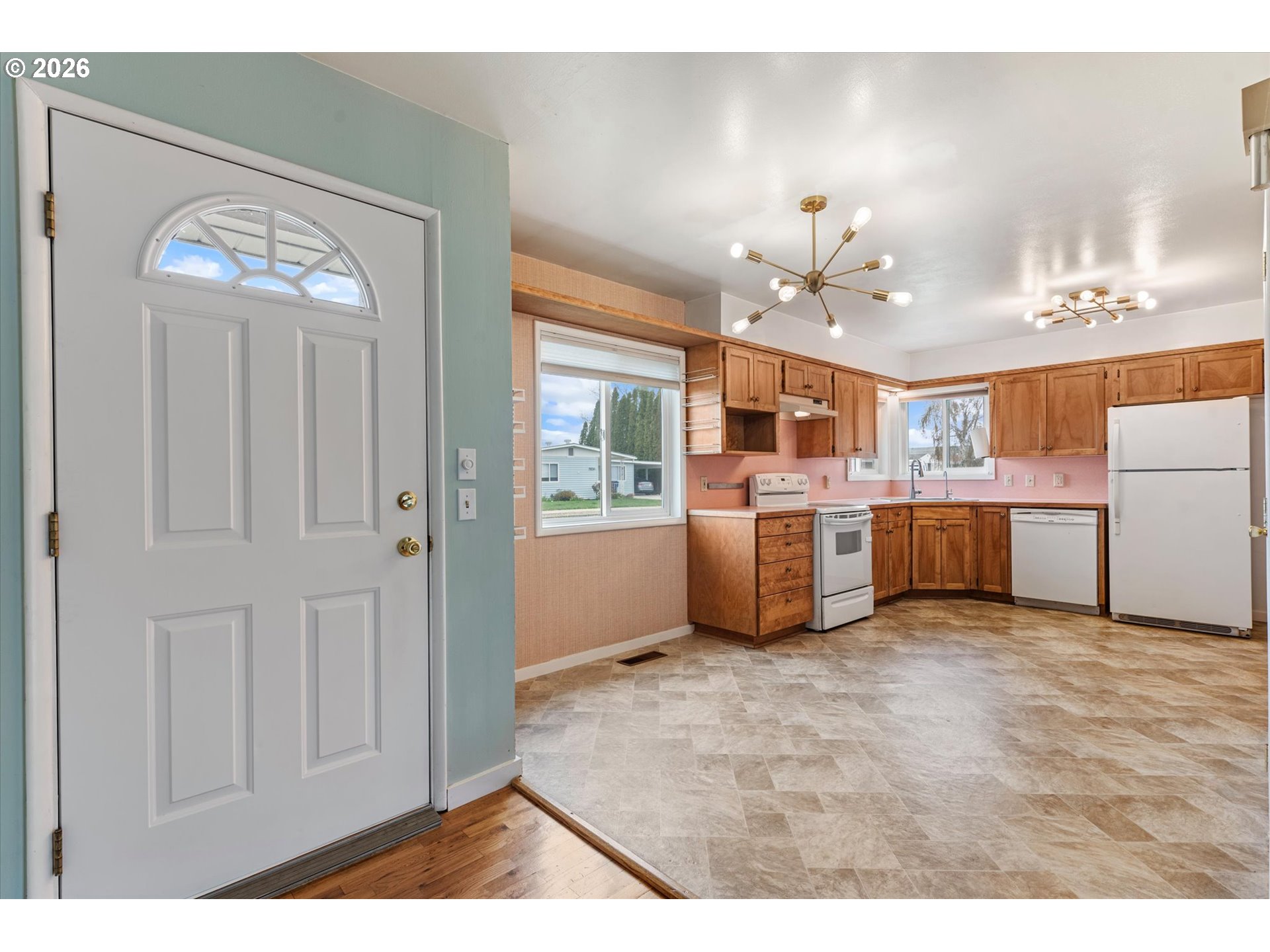 (503) 893-8874Mid-century modern 2 bed, 2 bath home with a functional open kitchen/dining layout. Features original hardwood floors, fresh interior paint, and a cozy gas fireplace. One bath offers a walk-in shower, the other a tub. Updates include furnace, A/C, and on-demand hot water. Exterior highlights include a covered deck for seasonal use, RV parking, greenhouse, attached carport, and detached oversized garage.