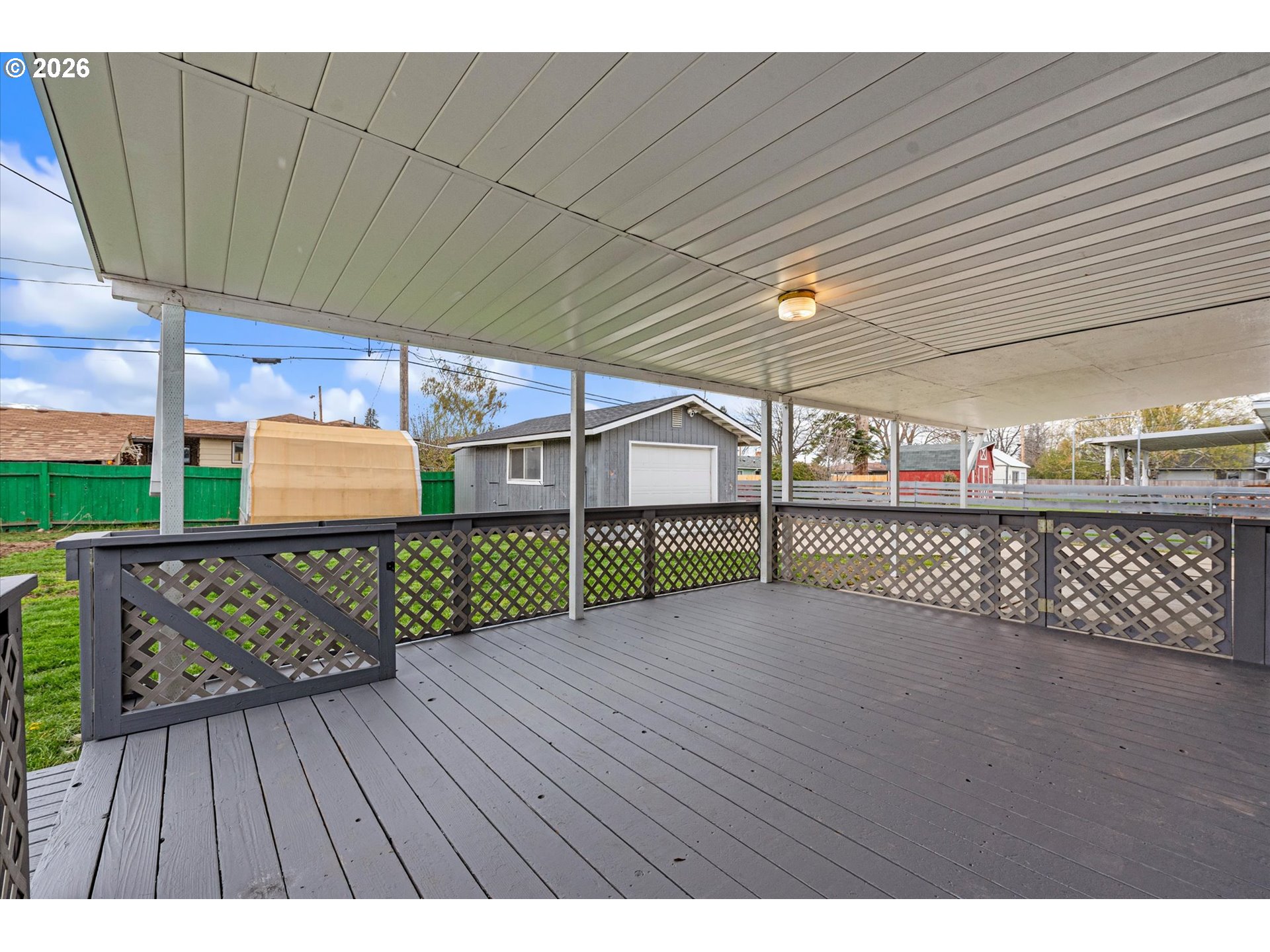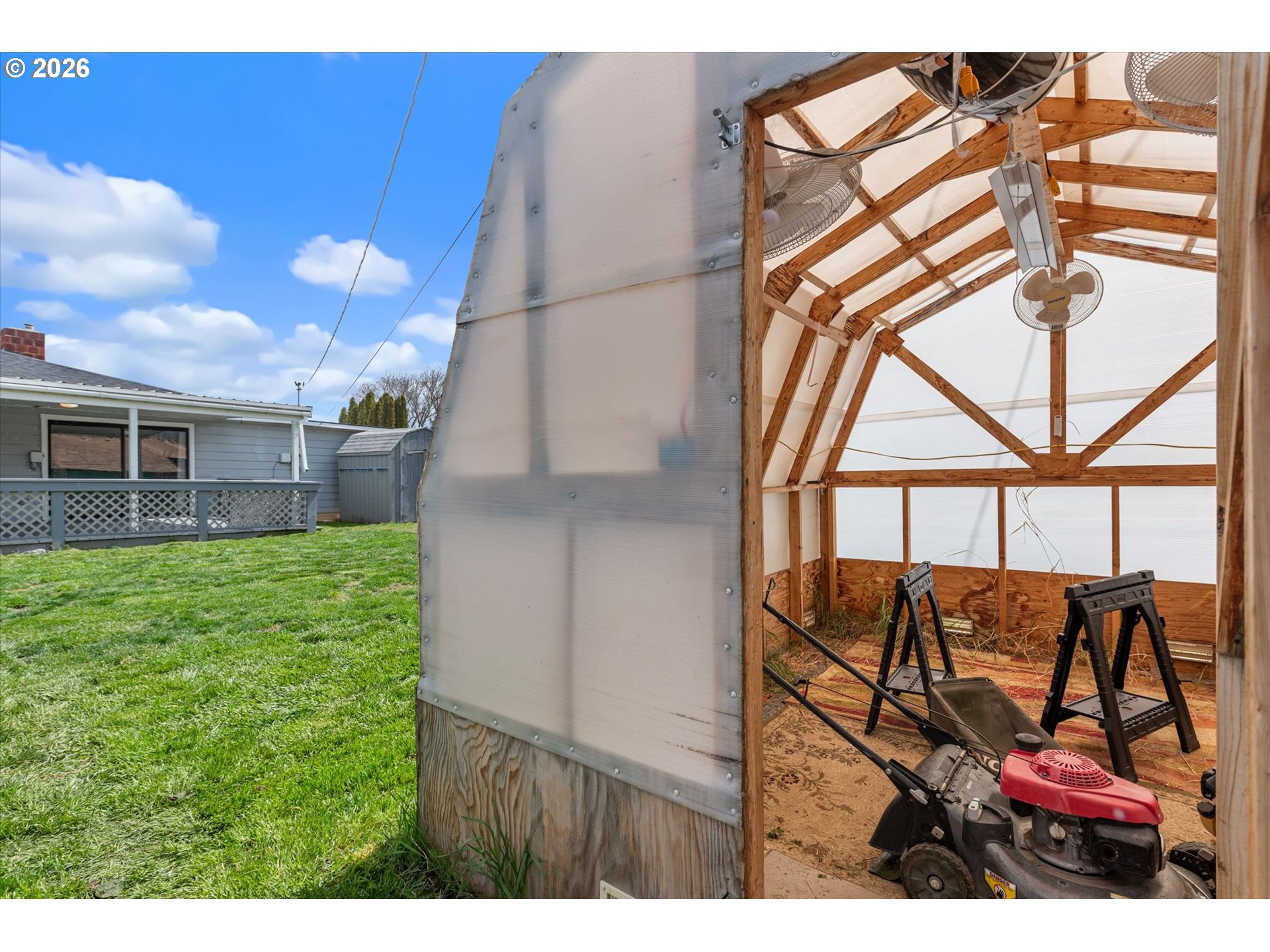 CoveredDeck, CoveredPatio, CrossFenced, Fenced, Greenhouse, Outbuilding, RVParking, SecondGarage, Workshop, Y