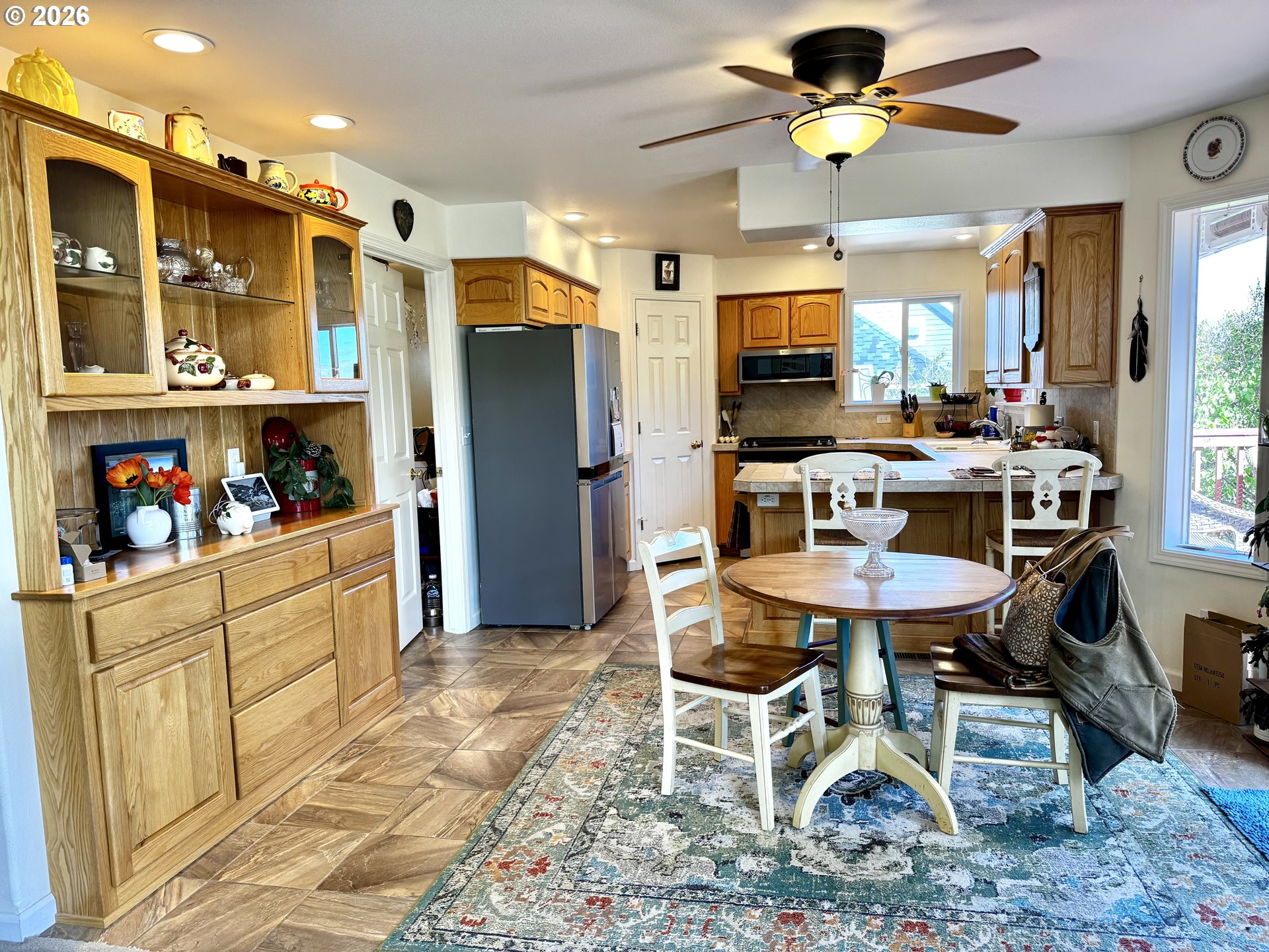 Welcome to your dream home on the 15th green of the Quail Ridge Golf Course. This custom built 5 bedroom, 2.5 bath home, with an attached triple car garage, offers an exceptional living experience. The 12' great ceilings not only create a sense of grandeur but also floods the interior with natural light, showcasing panoramic views of the lush golf course greens. Updates including a brand new forced air furnace, tankless water heater, newer kitchen appliances, floor coverings, light fixtures, ensure modern convenience and efficiency. Outside, the fully fenced backyard offers privacy and convenience complete with underground sprinklers for easy lawn & yard maintenance. A charming garden with raised beds awaits your green thumb, surrounded by mature landscaping that adds beauty and tranquility to the outdoor space. Store your tools & equipment in the garden shed, keeping the property tidy & organized. This home is not just a residence; it's a lifestyle, offering the perfect blend of luxury, comfort, & location. Use it as a vacation rental to generate income or enjoy it as your private retreat. You and your guest will love the easy access to golf, nearby outdoor recreation & the charm of Baker City just minutes away. Don't miss your chance to own a piece of golf course living with endless potential.