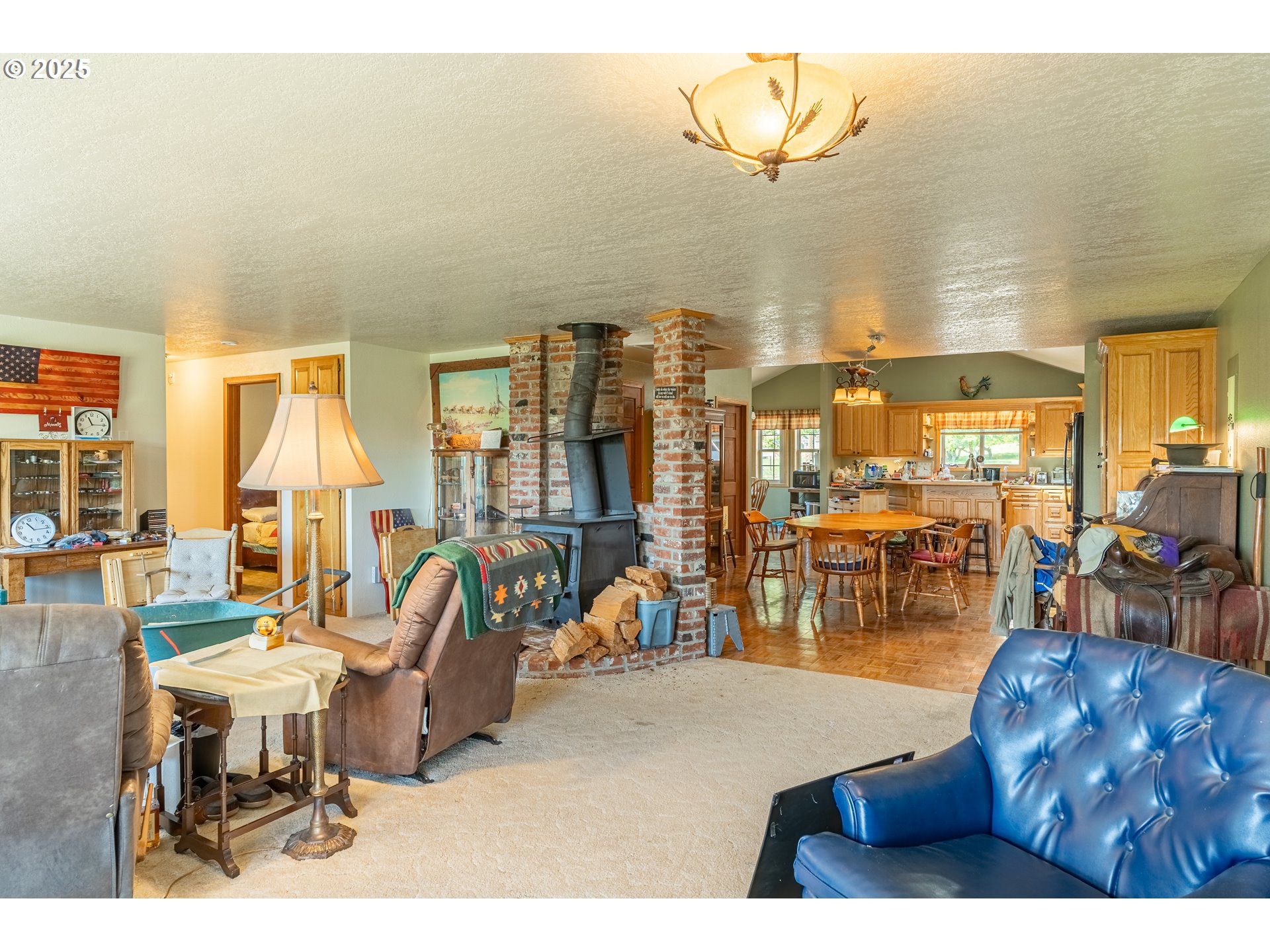 Experience the best of rural Oregon living with this spacious, well-appointed, single level home set in a desirable location featuring 220 feet of Eagle Creek frontage, mountain views, and water rights. The custom kitchen offers both beauty and function, while the expansive primary suite includes an accessible bath and an oversized walk-in closet. Outside, enjoy a private back deck, fruit trees and a garden. Fully fenced and cross-fenced, the property also features a productive hay field and pasture, ideal for animals or agricultural use. Nice shop/garage and plenty of covered parking and storage. With Eagle Creek running along the entire lower portion of the property, you’ll enjoy easy access for fishing, wading, or simply relaxing by the water. This rare offering has it all—space, water, views, and versatility.