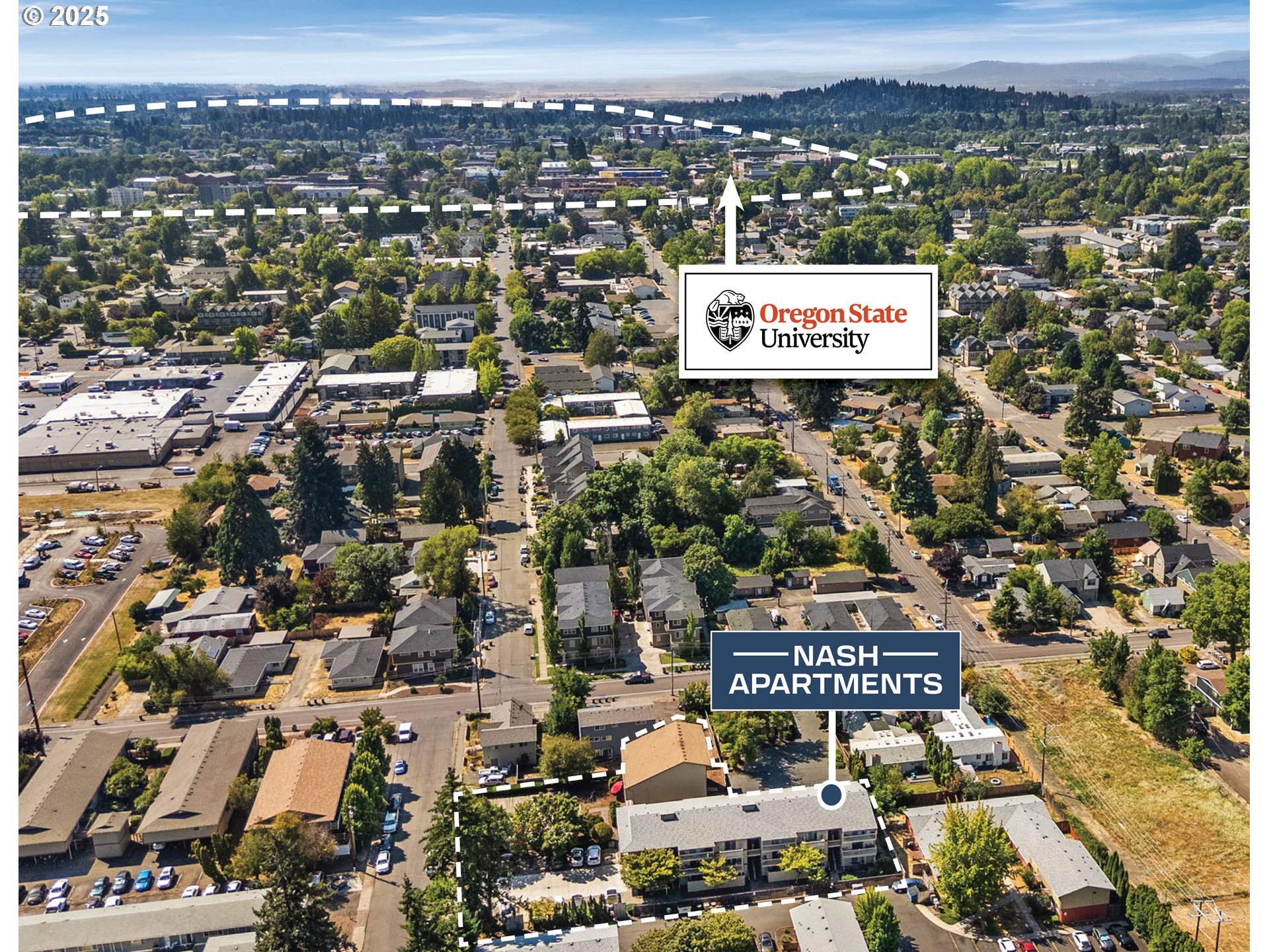 Prime investment opportunity awaits at The Nash Apartments, a 24-unit complex perfectly positioned just one mile from Oregon State University. Comprising two adjacent parcels at 1218 & 1230 NW 23rd St, the property offers a mix of one, two, three, and four-bedroom layouts, perfect for students. Recent exterior updates, include new siding and roof. On-site amenities include 24 off-street parking spaces, a laundry room, and bike storage. Each unit has a private balcony or patio.
