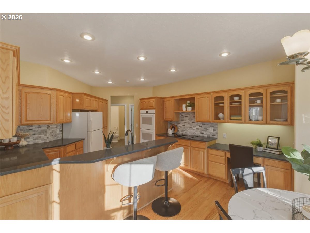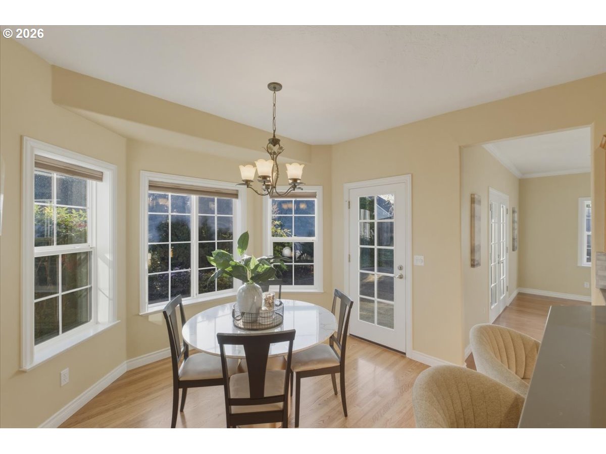 (503) 893-8874Welcome to this beautifully crafted custom home in the highly sought after Riverview Heights neighborhood. Situated on a spacious 0.24 acre corner lot, this stately residence offers timeless charm. Soaring vaulted ceilings in the formal living room, elegant staircase (stair chair included) & abundant natural light. Formal dining room w convenient wet bar. The kitchen is a standout, showcasing custom cabinetry, wood flooring, pantry, breakfast bar, & additional dining nook w French doors that open to the patio for seamless indoor/outdoor living. The main-level primary suite offers dual sinks, jetted tub, skylight, bay window, & private outdoor access. Additional main-floor features include a utility room w sink & ample storage. Upstairs, you’ll find two generously sized bedrooms along w a versatile bonus/recreation room. A den w closet on the main level offers flexibility for a home office or guest space. Outside, enjoy two covered patios ideal for year round relaxation, along w a large attic for extra storage. This home reflects quality craftsmanship w extensive tile & oak hardwood finishes, bay windows, & a warm, inviting great room w a gas fireplace. It’s unique floor plan, abundant storage, & prime location, this exceptional property is a rare opportunity you won’t want to miss. Schedule your private showing today.