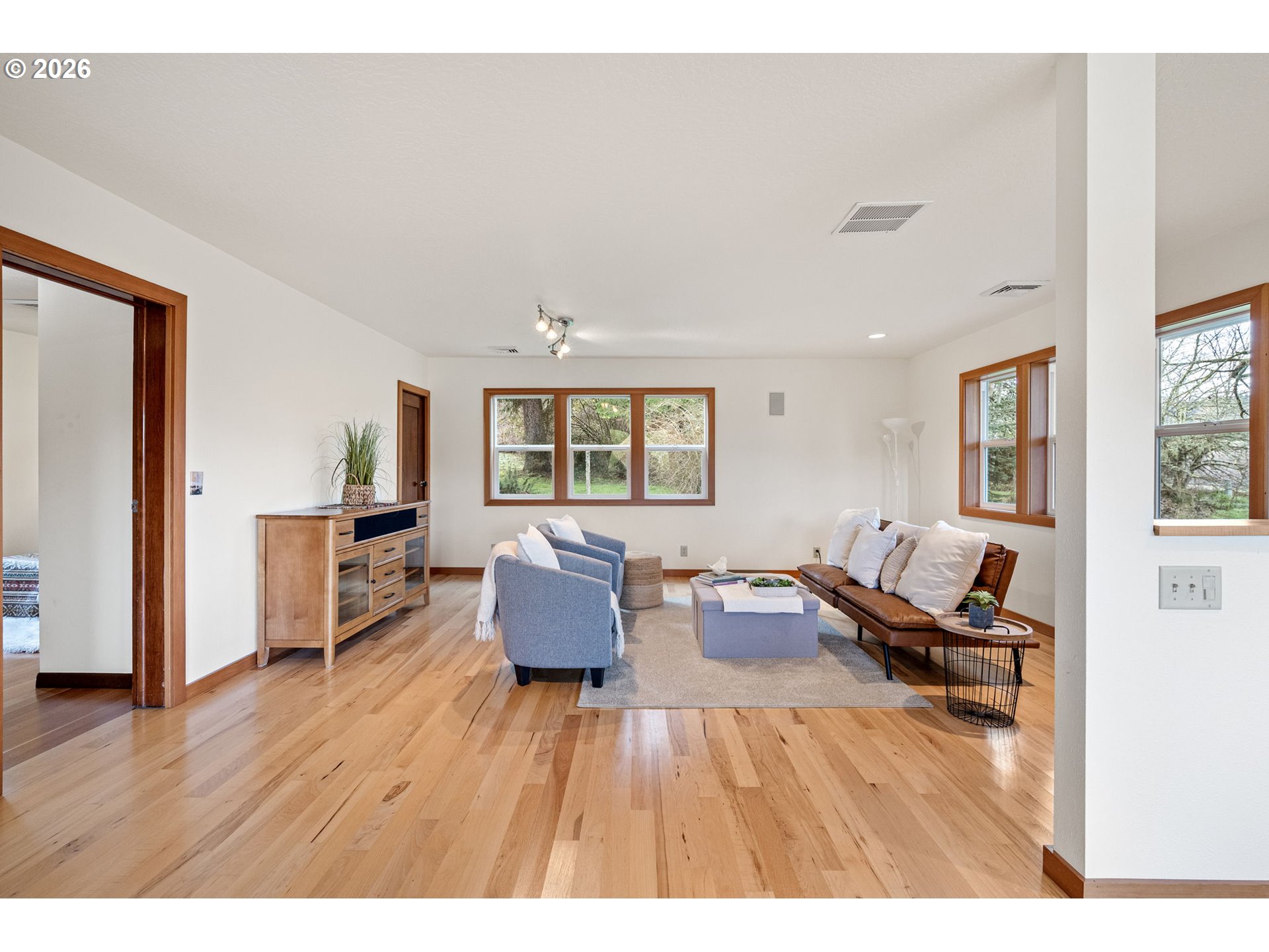 (503) 893-8874OPEN HOUSE Sun 1/18 1pm-3pm. Beautiful property and home with privacy from neighbors and very well maintained. Just over 5 acres, 3 tax lots, zoned EFU. Home is single level that has ample windows for plenty of light and views of the country setting. Wood accents throughout the home give it character and warmth. Updated over the years with a nice separation of space between living areas and bedrooms. Flexible floor plan to adapt to your needs. Primary suite has double sinks and a custom shower. Multiple outdoor living areas with a partially covered and partially uncovered deck off the living room/dining room space. Mudroom and laundry room. Seller previously used closet in mudroom for wine storage. Detached oversized 2 car garage/shop was built in 2007. There is a large barn (38x61) that is used for storage but could but utilized for animals. Driveway is paved. Garden area and multiple mature fruit trees.DSL internet through Monroe Telephone Co, satellite dish from Direct TV.