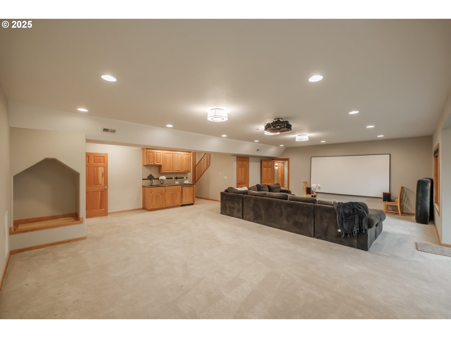 (503) 893-8874Well appointed custom home backing up to green space. Formal living & dining with gas fireplace & walls of windows, huge kitchen with center island, quality appliances & large pantry, open to private deck. Spacious primary suite on main level with vaulted ceilings, tiled shower & soaking tub, walk in closet. Office on main level. 5 more BRs & 3 more BAs with huge family RM & fireplace, newly finished 950+ SF media room. Large patios front & back, manicured lawn & shrubs. GFA heating & AC, deep 3-car garage.