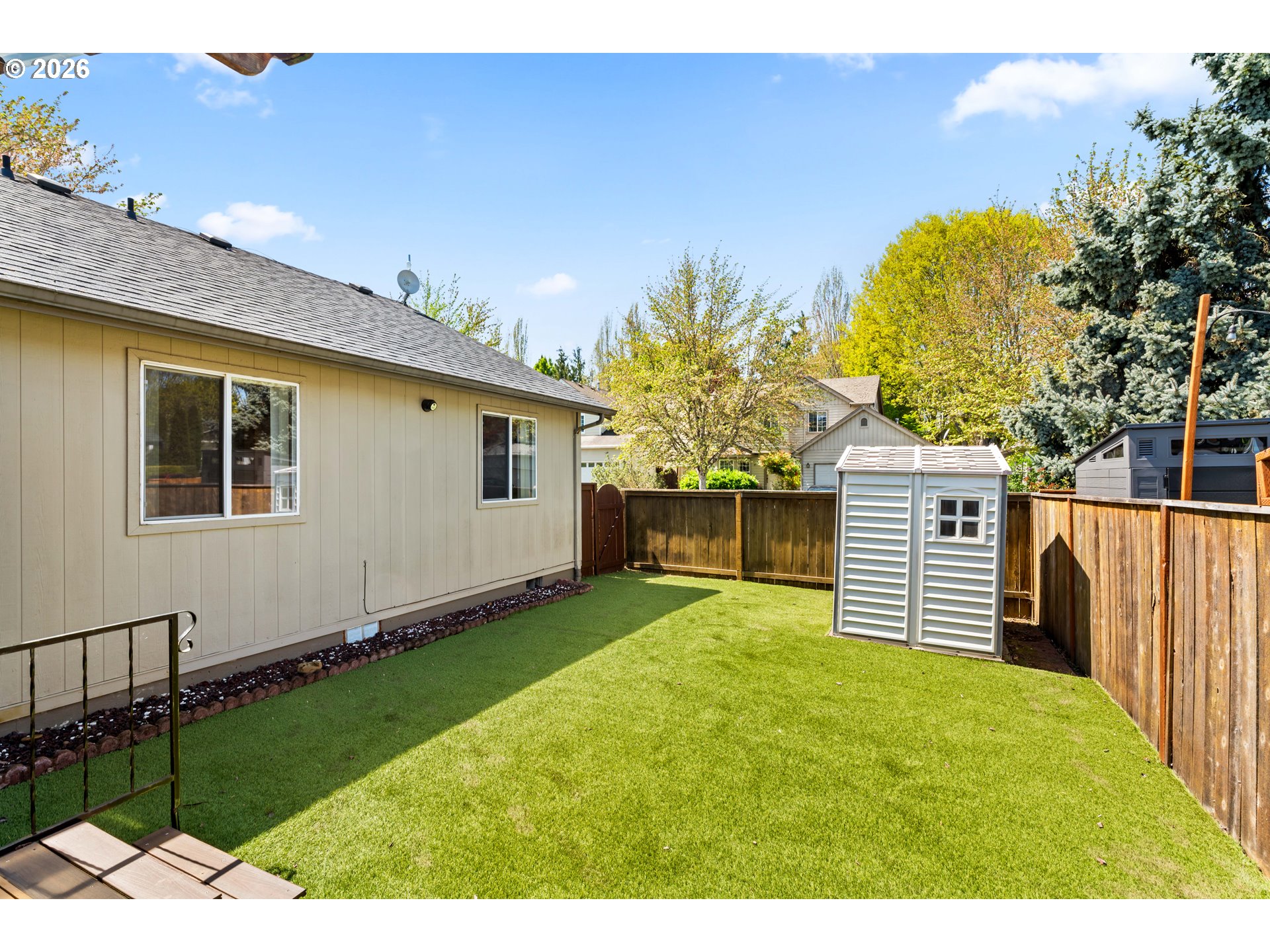 Corner lot charm meets Corvallis convenience! Nestled in the sought-after Sunset Meadows neighborhood just minutes from local parks and OSU, this 3-bed, 2-bath home checks every box. The spacious primary suite offers a walk-in closet and private ensuite, while the living room's gas fireplace sets the perfect cozy tone. Stay comfortable year-round with forced air heating and cooling. Outside, enjoy a fully fenced backyard with turf lawn for effortless maintenance, plus a covered deck made for entertaining. Don't miss this gem!