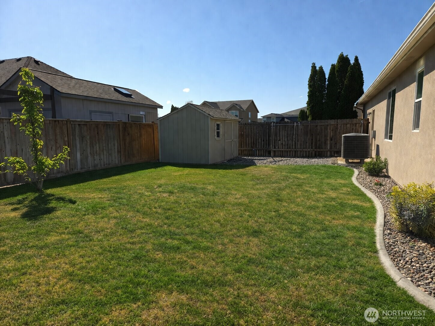 Nestled in a prime West Richland location, this meticulously maintained 2,054-square-foot stucco rambler by Etter Construction offers 3 bedrooms, a den or optional 4th bedroom, and 2 full bathrooms. A spacious great room with high ceilings and a cozy gas fireplace flows into a generously sized chef’s kitchen featuring stone countertops, full tile backsplash, and walk-in pantry, creating an open and functional living space. Storage is a standout throughout the home, with deep walk-in closets with built-ins, an extra-deep two-car garage, and a large exterior storage shed. Fresh exterior paint completed in 2025 reflects the home’s meticulous upkeep! Conveniently located near highly regarded schools and just minutes from Yoke's Fresh Market, Costco Wholesale, and the Queensgate Shopping Center, this home combines comfort, function, and convenience.