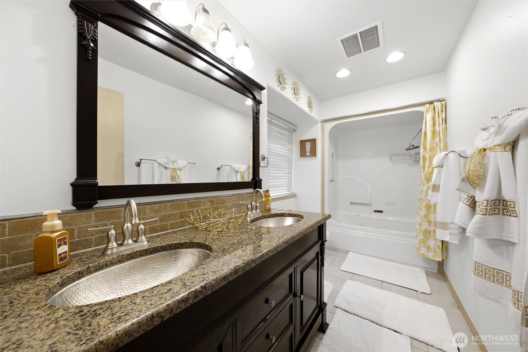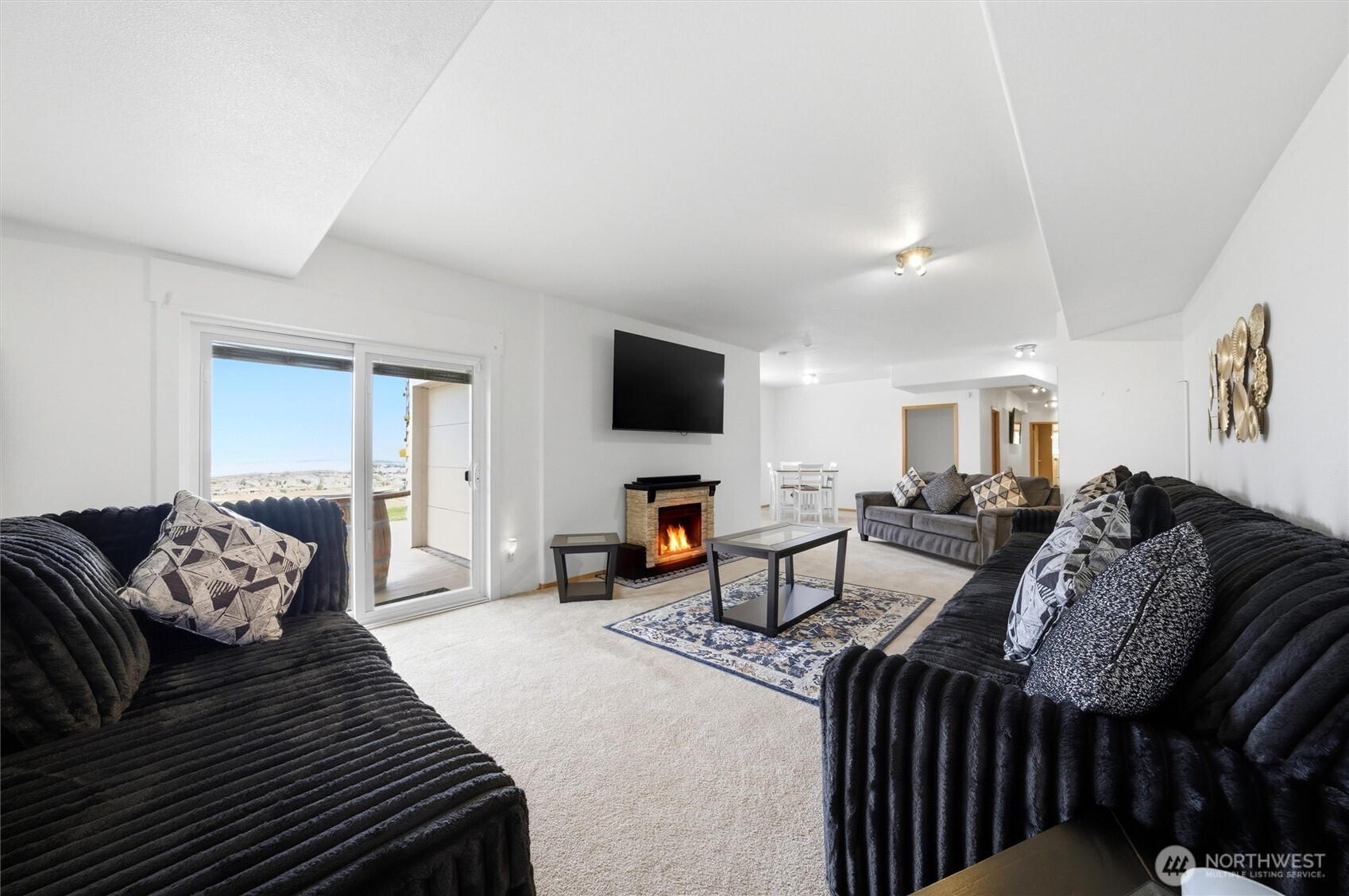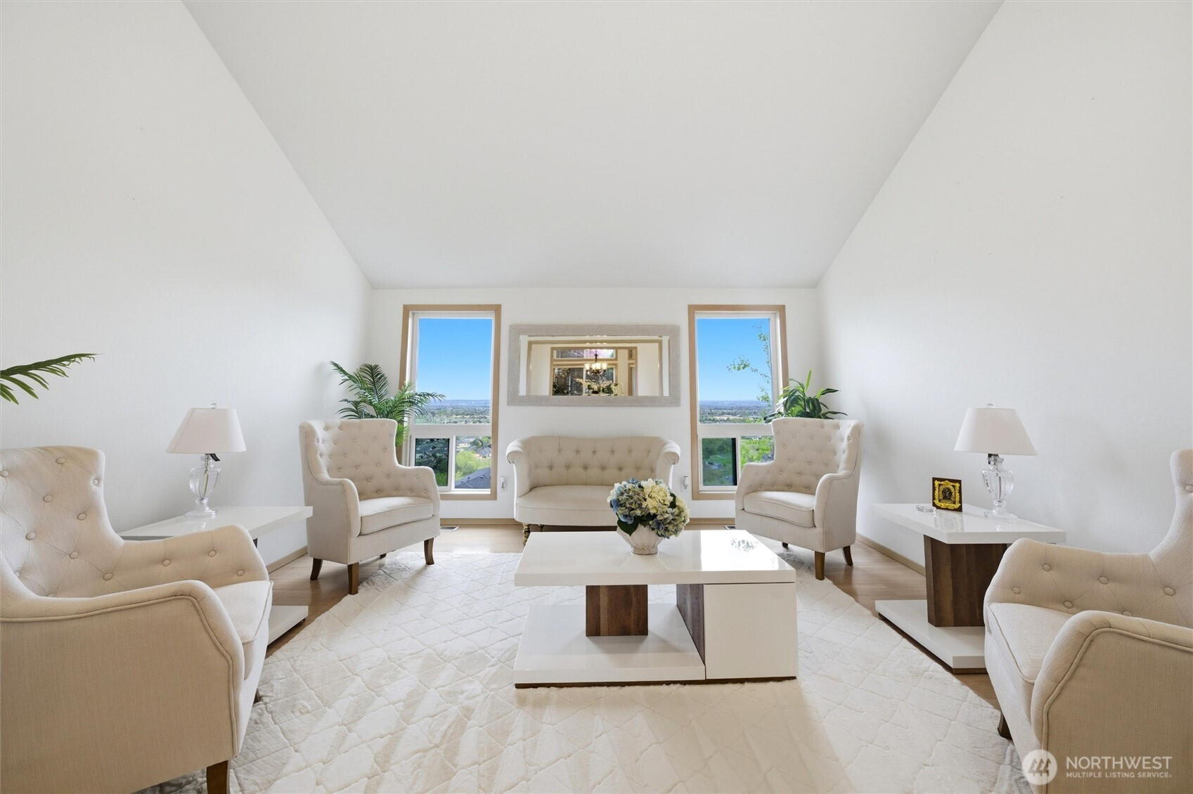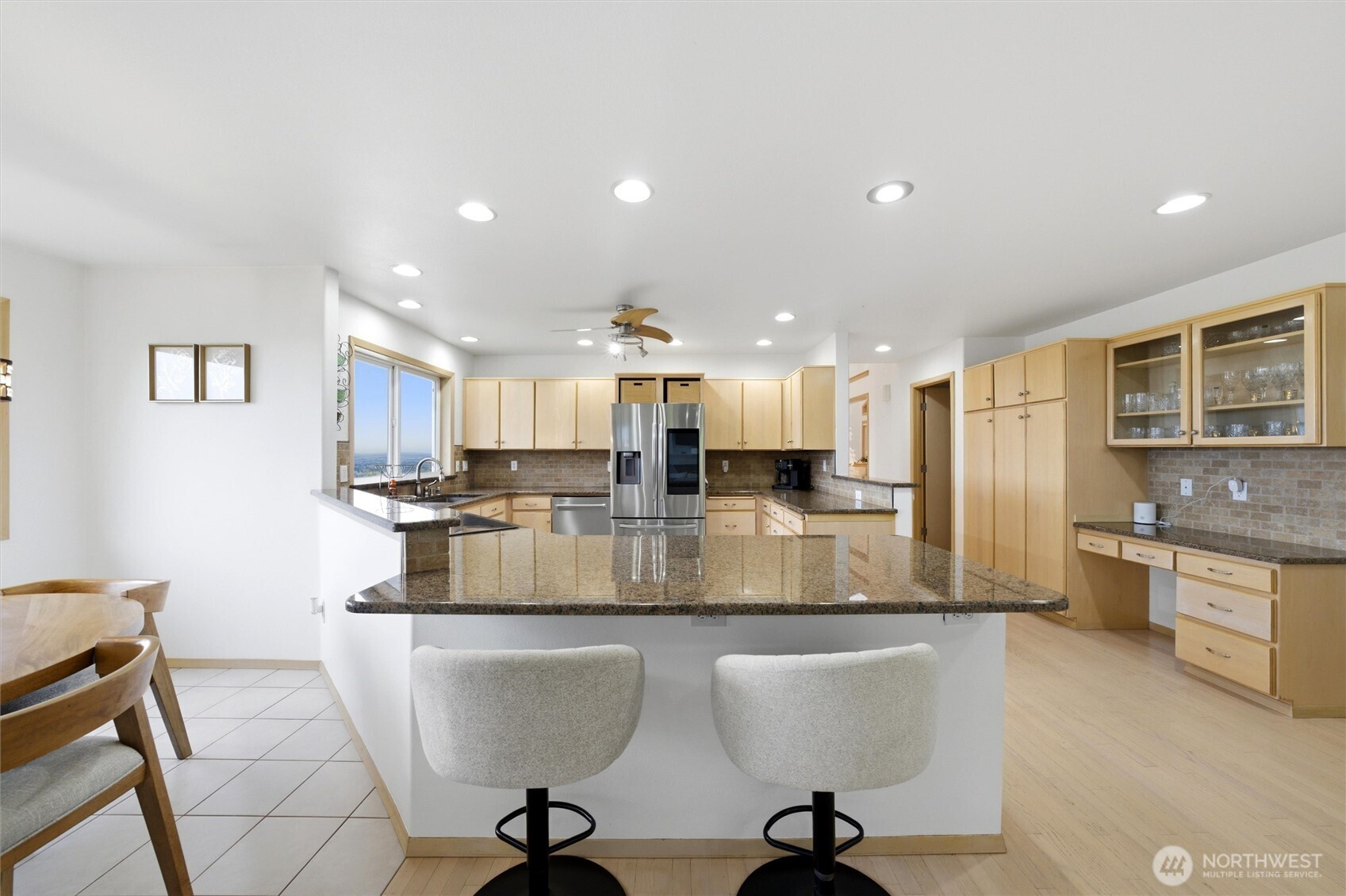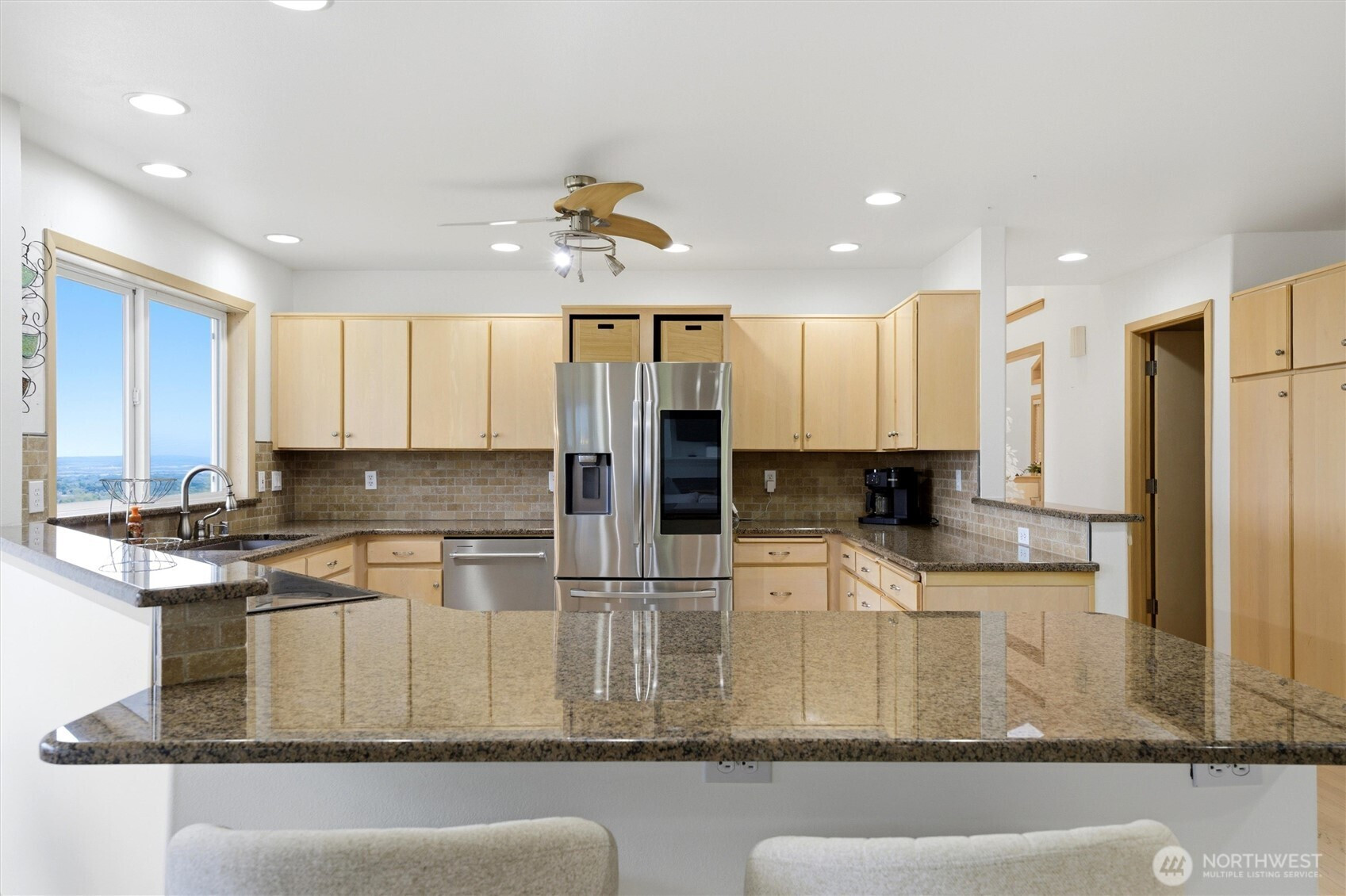 Welcome to Canyon Lakes living at its finest! Situated on a sprawling half-acre lot, this impressive 4,250 sq ft home offers breathtaking panoramic views of the golf course and city skyline—views you truly have to experience in person.Designed with both comfort and functionality in mind, this spacious residence features 5 bedrooms, 3 bathrooms, and a versatile two-level layout perfect for everyday living and entertaining. The main level showcases a well-thought-out floor plan with formal living and dining areas, a private office/den, and a warm, inviting great room that flows seamlessly into the expansive kitchen—complete with abundant countertop space and natural light pouring in from every angle.Convenience meets luxury with the primary suite and laundry room located on the main level. Downstairs, you’ll find a large family room, additional bedrooms, and plenty of space for guests, hobbies, or multi-generational living. Need storage? This home delivers with multiple storage areas throughout.Step outside and enjoy everything this property has to offer—from a private basketball court to a beautifully retained backyard designed for entertaining and soaking in the Tri-Cities sunshine. And for your golf cart toy, don’t miss the oversized lower-level golf cart garage.This move-in ready home offers the space, views, and flexibility to create your dream lifestyle in one of Kennewick’s most desirable communities.