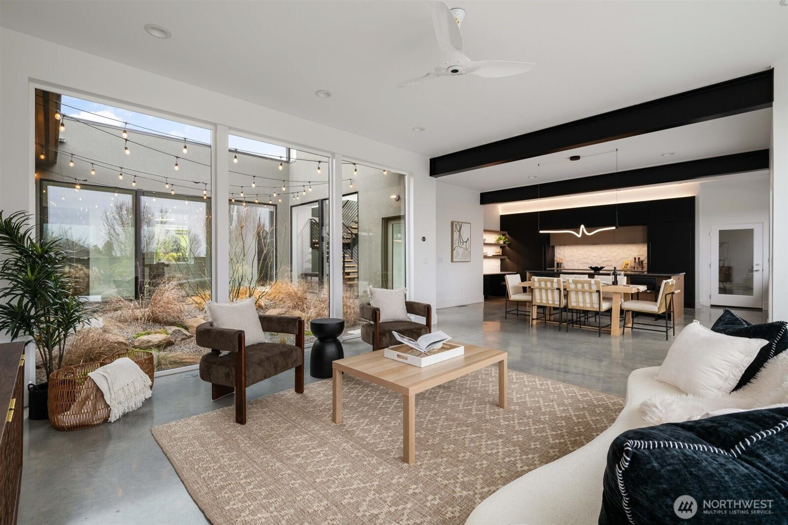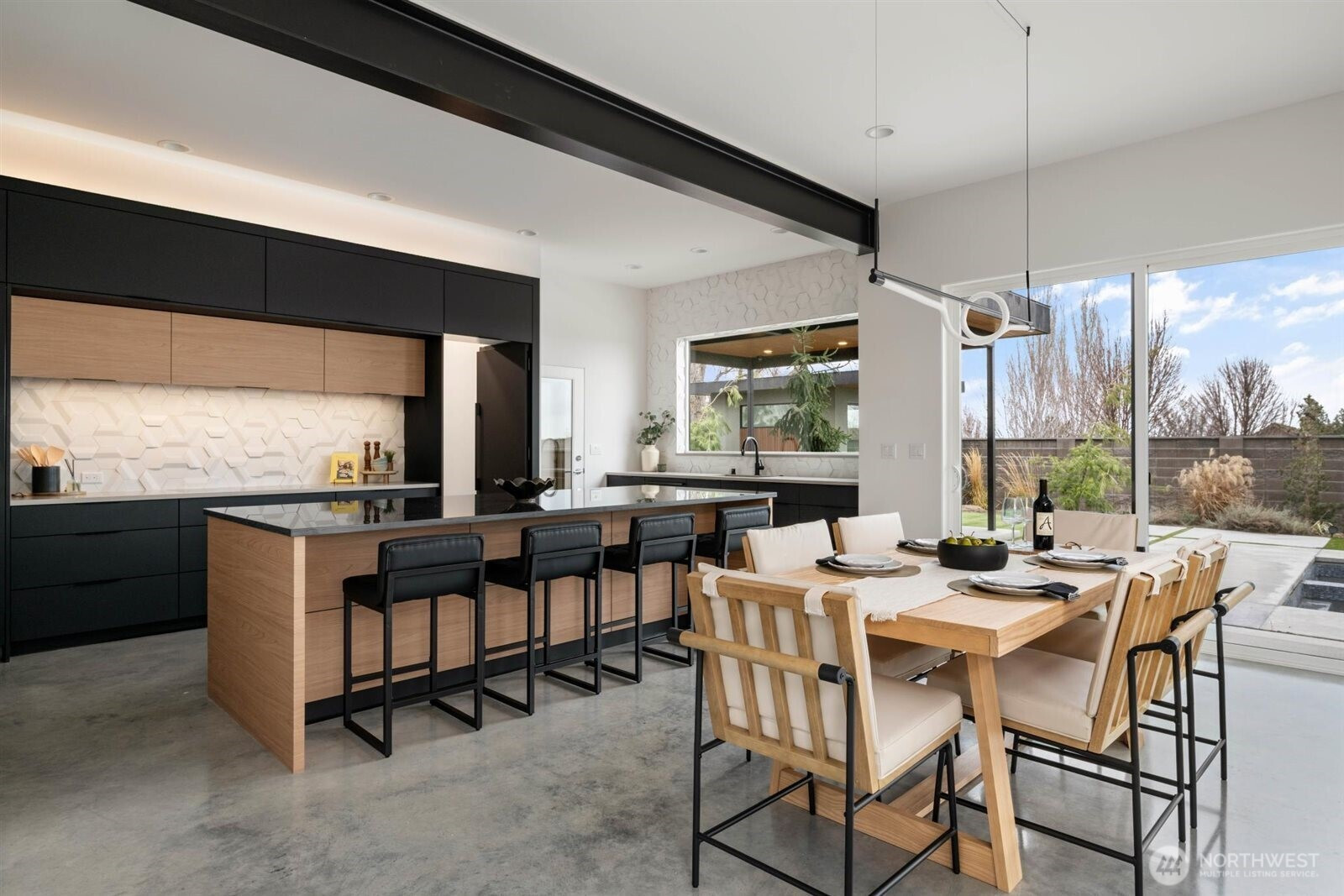 Welcome to 522 Melissa Street, a one-of-a-kind custom modern residence by Dream Builders Homes in the heart of Richland. Designed for elevated living and seamless indoor-outdoor flow, this home blends striking architecture with effortless comfort.Radiant-heated concrete floors span both levels, delivering warmth and efficiency year-round. The professionally designed kitchen features clean architectural lines, integrated appliances, a Miele refrigerator, and a full Fisher & Paykel suite including induction cooktop, oven, dishwasher, and hood. A built-in ice maker makes entertaining easy.Built-in Sonos audio enhances the primary suite, kitchen, shared bath, and family room, with full surround sound in the family room and landscape audio extending outdoors.Outdoor living defines the property with a fully automated saltwater pool and hot tub, gas firepit, outdoor BBQ, and multiple roof decks positioned for sunset views. A dramatic 18’ x 16’ atrium fills the home with natural light and serves as a stunning focal point.A detached heated and cooled 12’ x 12’ gym or studio adds flexibility, while a true four-car garage with additional storage completes the home.Every detail was intentionally designed to elevate how you live.