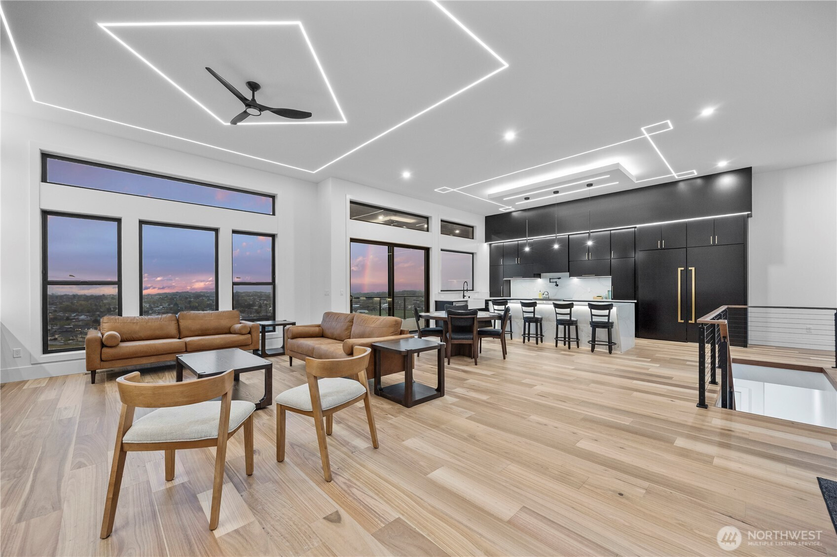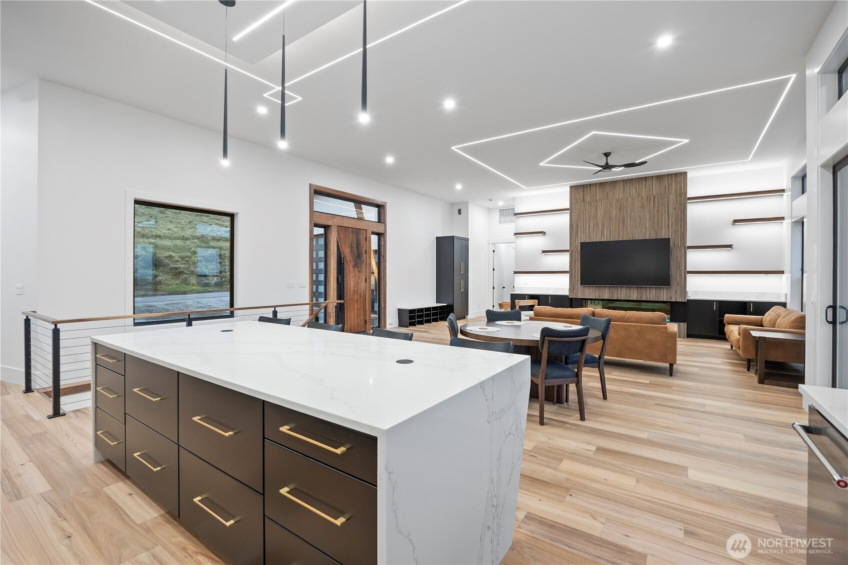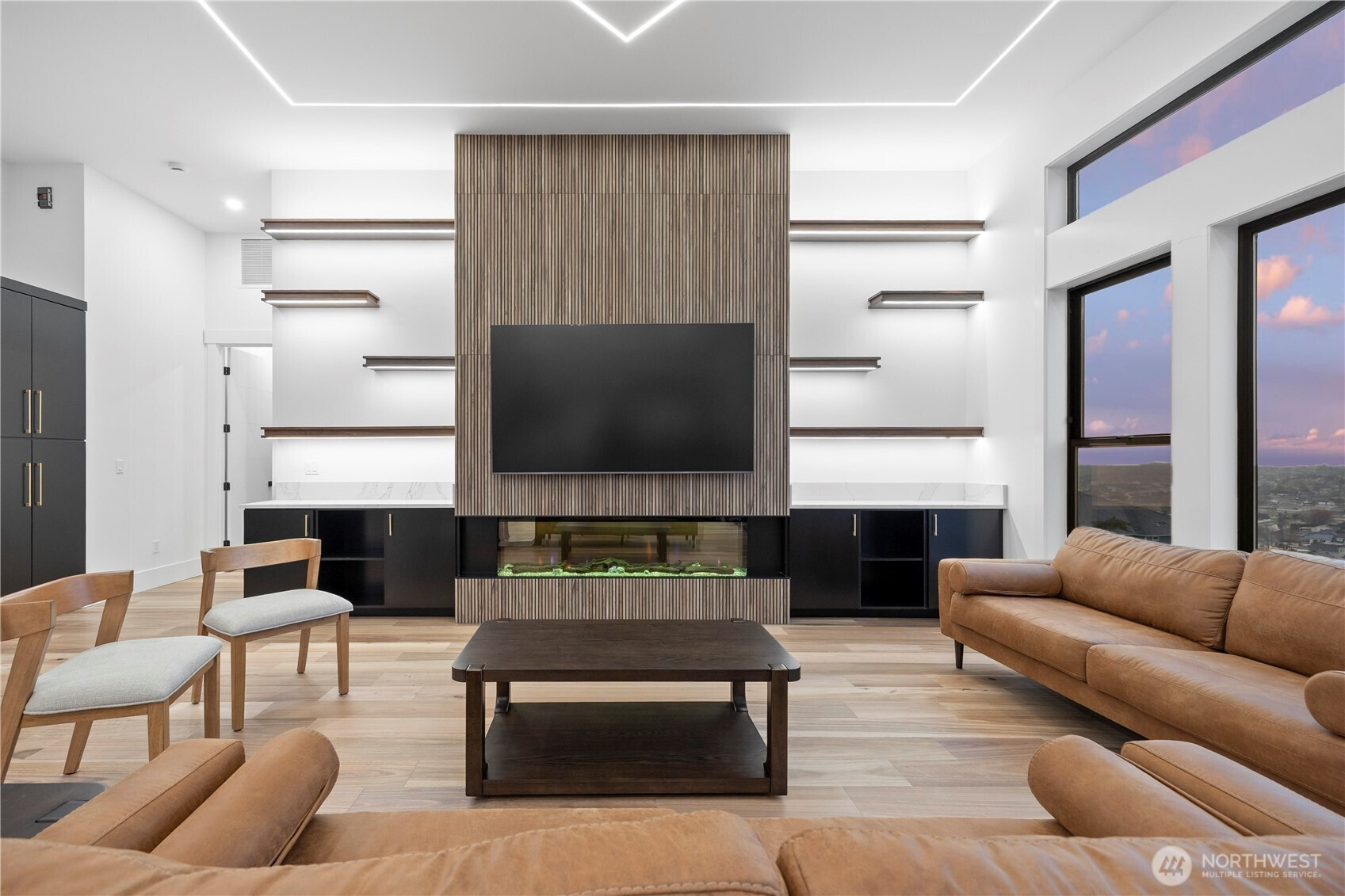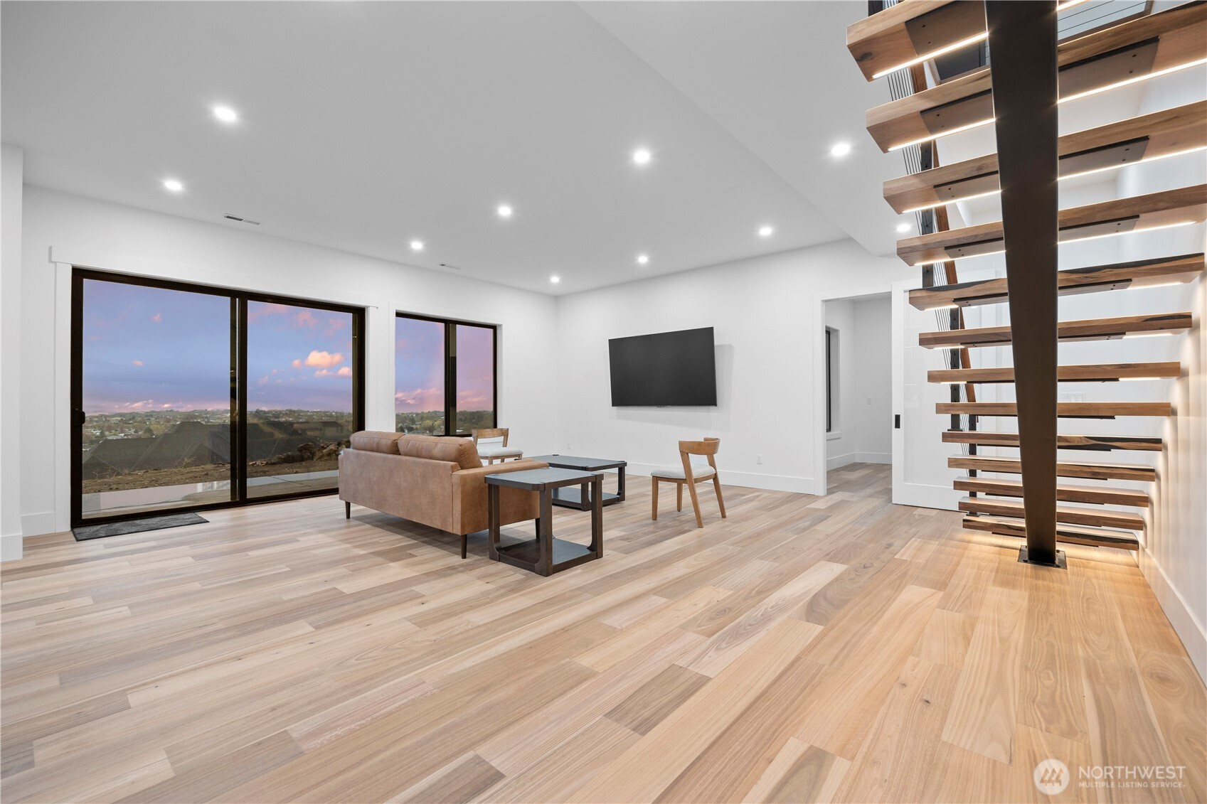 Discover elevated modern luxury and sweeping territorial and city views from this brand-new custom home in West Richland’s coveted Candy Mountain Estates, custom built by Next-Gen Pro-Builders. Offering 3,875 sq ft on a one-story with daylight basement, this 4-bedroom, 3-bath residence showcases sleek design, exceptional craftsmanship, and high-end finishes throughout. A stamped concrete driveway and striking hardwood front door create a warm, elegant entry. Inside, the open great room features raised ceilings, a dramatic wall of windows, engineered flooring, and a stylish gas fireplace with floating shelves and built ins. The dining area flows seamlessly to a covered deck—perfect for entertaining or relaxing with the view. The gourmet kitchen impresses with a massive quartz island, custom cabinetry, upgraded appliances, and a hidden butler’s pantry with ladder access. The primary suite offers a serene retreat with a spa-like bath, soaking tub, tiled shower, dual vanities, and a spacious custom walk-in closet. Generously sized bedrooms and beautifully finished bathrooms complete the main level. The daylight basement expands your living space with an office, large family room, and a stylish bar with wine cooler and sink, opening to a covered patio for effortless indoor-outdoor living. Additional highlights include a three-car garage with RV door, black vinyl Milgard windows, and a durable standing seam metal roof.