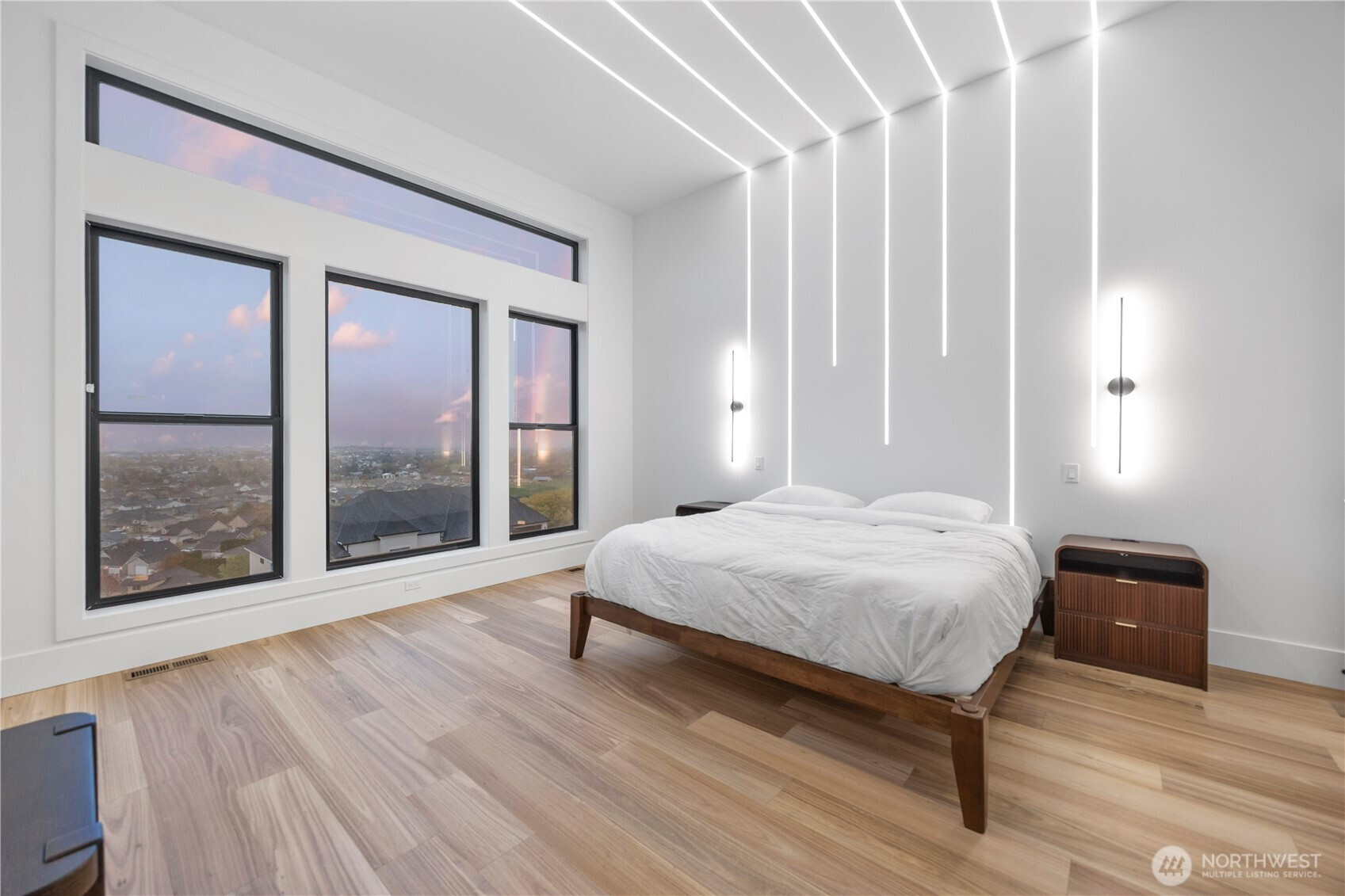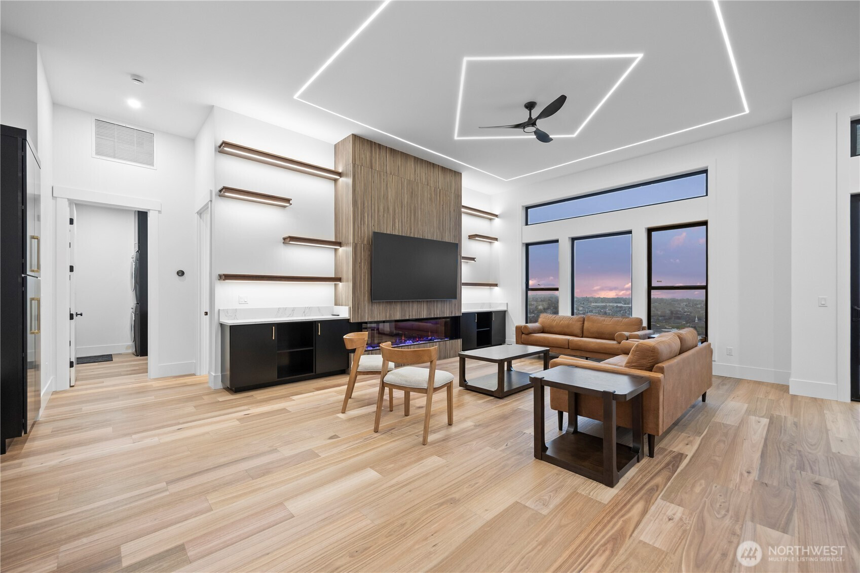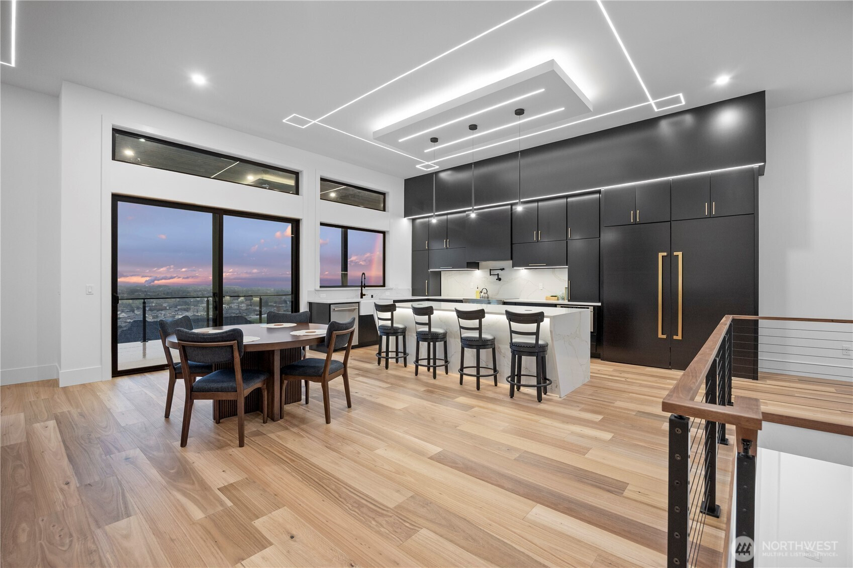 Discover elevated modern luxury and sweeping territorial and city views from this brand-new custom home in West Richland’s coveted Candy Mountain Estates, custom built by Next-Gen Pro-Builders. Offering 3,875 sq ft on a one-story with daylight basement, this 4-bedroom, 3-bath residence showcases sleek design, exceptional craftsmanship, and high-end finishes throughout. A stamped concrete driveway and striking hardwood front door create a warm, elegant entry. Inside, the open great room features raised ceilings, a dramatic wall of windows, engineered flooring, and a stylish gas fireplace with floating shelves and built ins. The dining area flows seamlessly to a covered deck—perfect for entertaining or relaxing with the view. The gourmet kitchen impresses with a massive quartz island, custom cabinetry, upgraded appliances, and a hidden butler’s pantry with ladder access. The primary suite offers a serene retreat with a spa-like bath, soaking tub, tiled shower, dual vanities, and a spacious custom walk-in closet. Generously sized bedrooms and beautifully finished bathrooms complete the main level. The daylight basement expands your living space with an office, large family room, and a stylish bar with wine cooler and sink, opening to a covered patio for effortless indoor-outdoor living. Additional highlights include a three-car garage with RV door, black vinyl Milgard windows, and a durable standing seam metal roof.