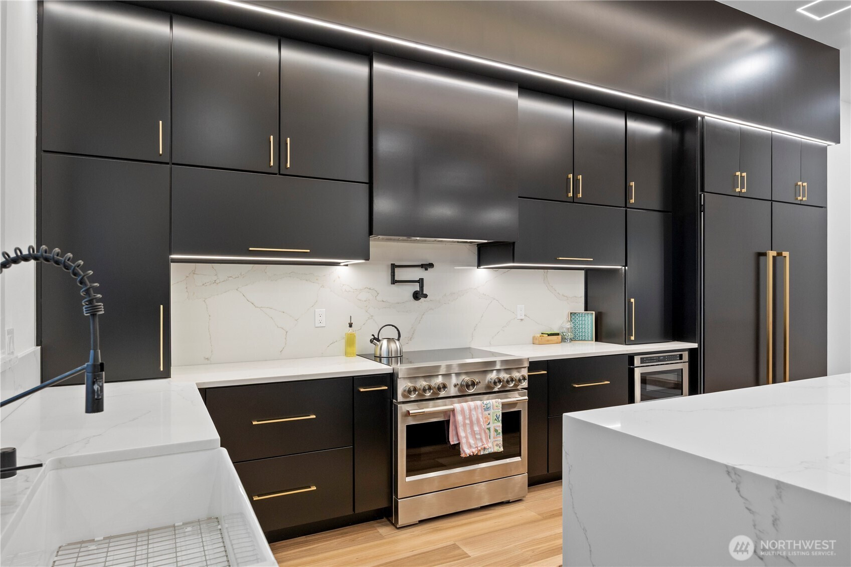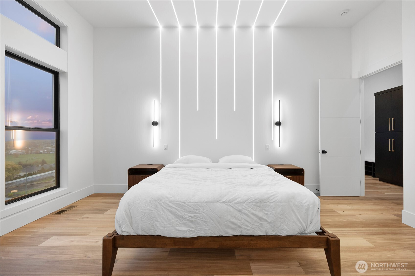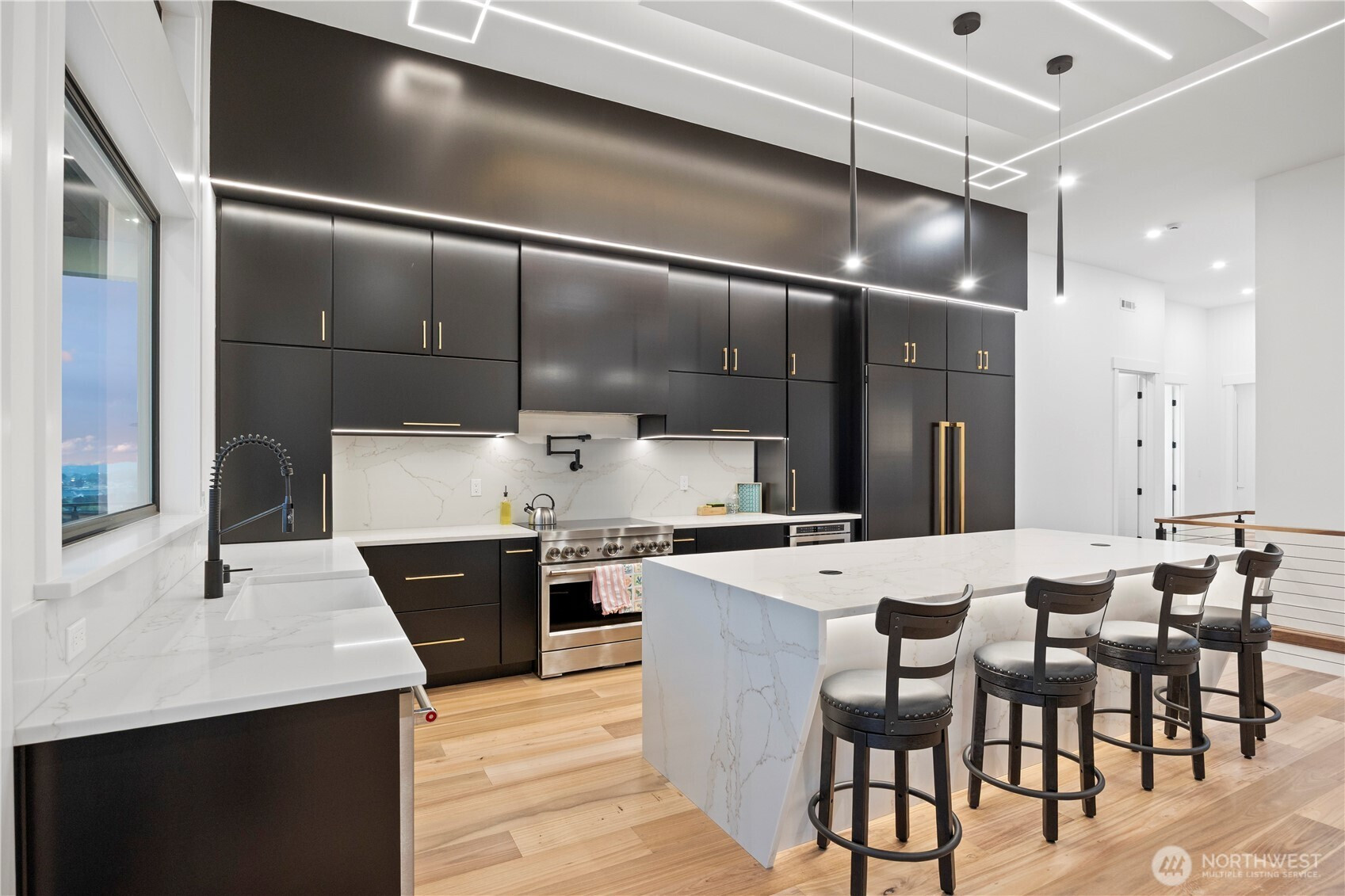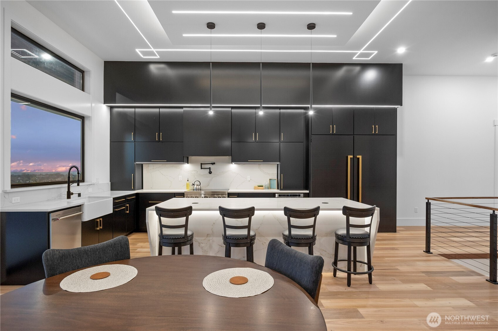 Discover elevated modern luxury and sweeping territorial and city views from this brand-new custom home in West Richland’s coveted Candy Mountain Estates, custom built by Next-Gen Pro-Builders. Offering 3,875 sq ft on a one-story with daylight basement, this 4-bedroom, 3-bath residence showcases sleek design, exceptional craftsmanship, and high-end finishes throughout. A stamped concrete driveway and striking hardwood front door create a warm, elegant entry. Inside, the open great room features raised ceilings, a dramatic wall of windows, engineered flooring, and a stylish gas fireplace with floating shelves and built ins. The dining area flows seamlessly to a covered deck—perfect for entertaining or relaxing with the view. The gourmet kitchen impresses with a massive quartz island, custom cabinetry, upgraded appliances, and a hidden butler’s pantry with ladder access. The primary suite offers a serene retreat with a spa-like bath, soaking tub, tiled shower, dual vanities, and a spacious custom walk-in closet. Generously sized bedrooms and beautifully finished bathrooms complete the main level. The daylight basement expands your living space with an office, large family room, and a stylish bar with wine cooler and sink, opening to a covered patio for effortless indoor-outdoor living. Additional highlights include a three-car garage with RV door, black vinyl Milgard windows, and a durable standing seam metal roof.