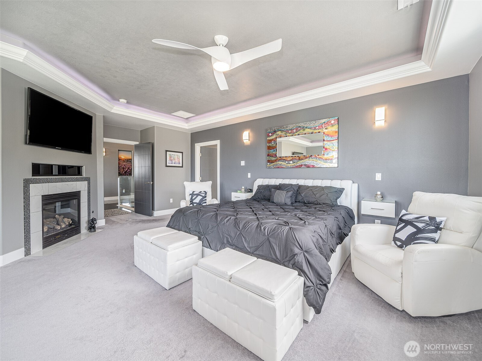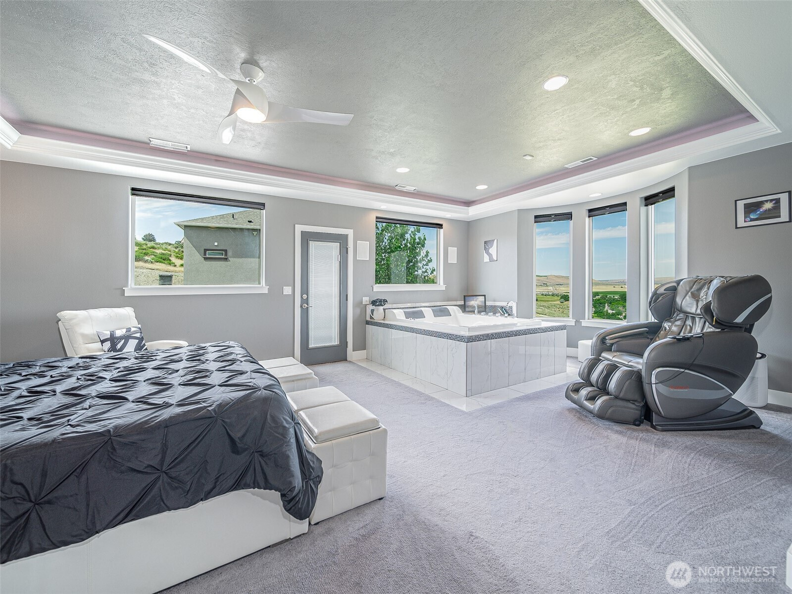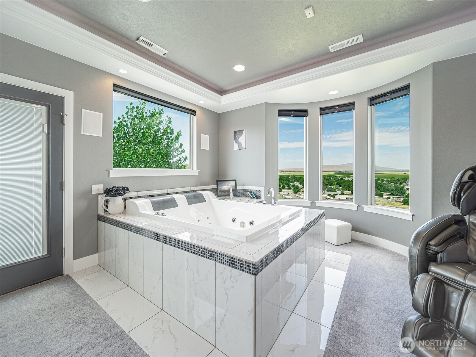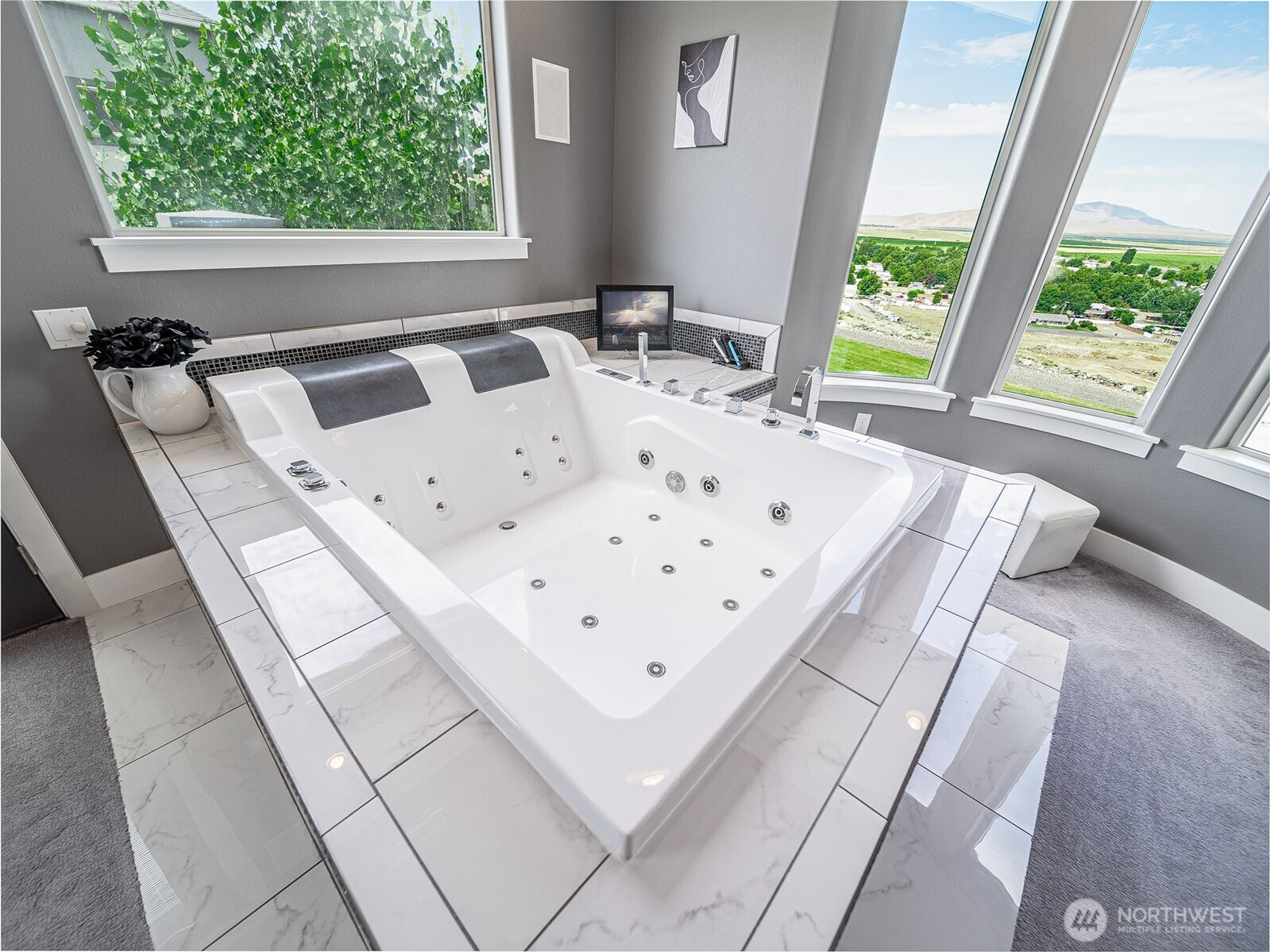 Perched on 2.5 scenic acres in the sought-after Willamette Heights neighborhood of West Richland, this exceptional custom-built home offers a one-of-a-kind living experience surrounded by a flourishing lavender farm and private vineyard of 250 Syrah vines. With breathtaking panoramic views of the Tri-Cities and Rattlesnake Mountain, every inch of this 3,450 sq ft residence is designed to impress. The thoughtfully designed 1-story layout with a fully finished walk-out basement blends modern elegance with rural tranquility. Step inside to a vaulted entryway, tile floors, and a light-filled living space anchored by a stylish fireplace and expansive windows that frame stunning natural vistas. The dining area provides an ideal setting for both everyday meals and entertaining guests while showcasing the ever-changing landscape. The kitchen is a chef’s dream featuring sleek white cabinetry, a full tile backsplash, granite countertops, a large island with breakfast bar, wine bar with beverage fridge, pantry, and stainless steel appliances including a gas range with hood. Offering 4 bedrooms and 3 luxurious bathrooms, the primary suite is a private retreat complete with a fireplace, custom lighting, spa-like bath, dual vanity, tiled walk-in shower, and a spacious custom closet. The lower level offers a large rec room with a full bar, ample space for entertaining, walk-out access to a patio, and a fourth bedroom currently outfitted as a home theater.
