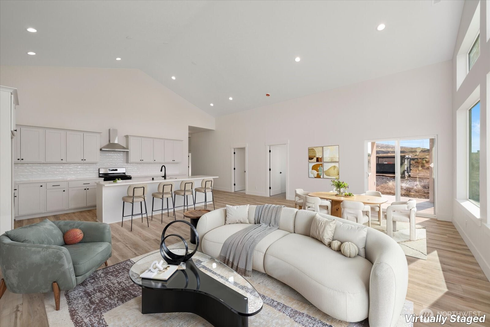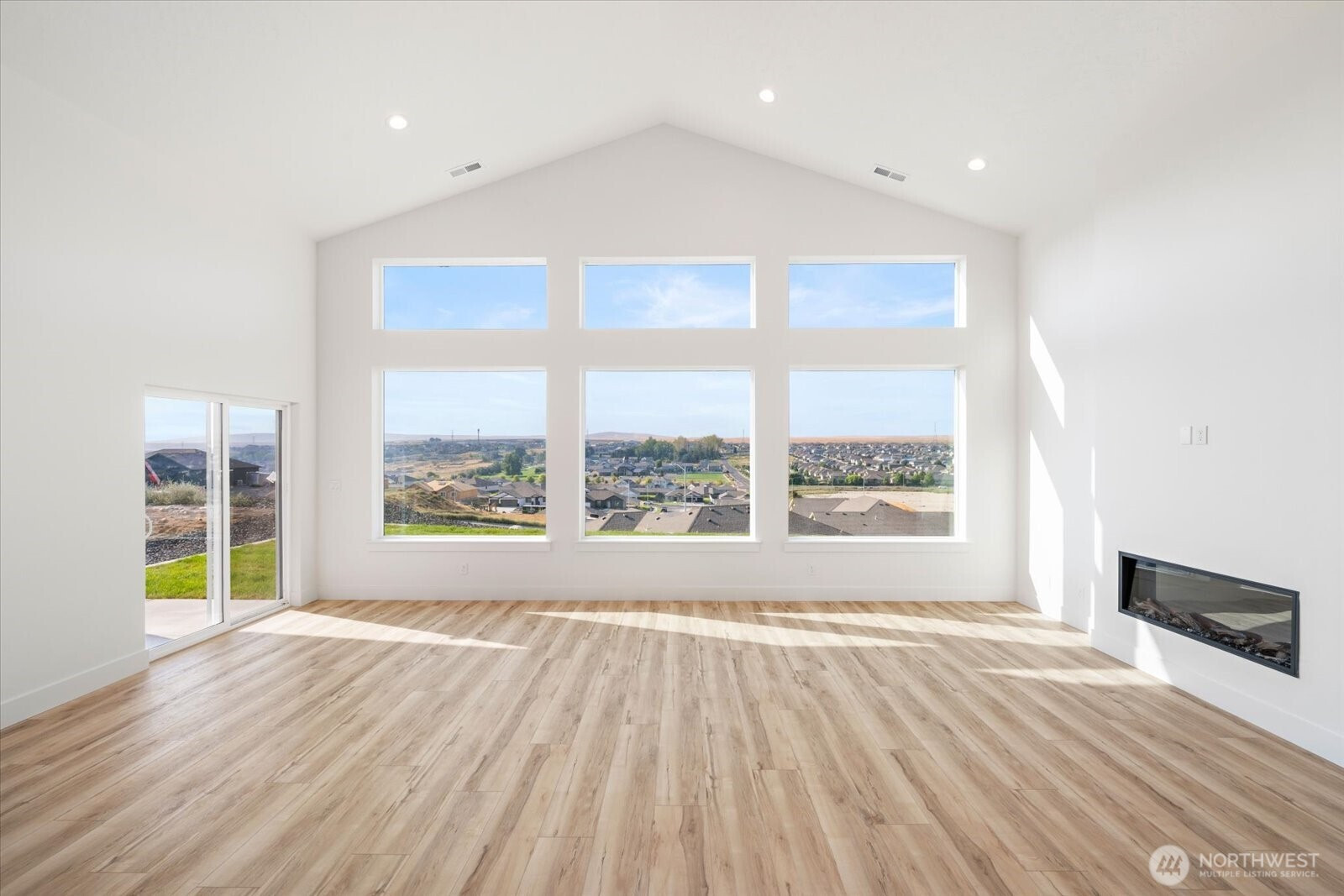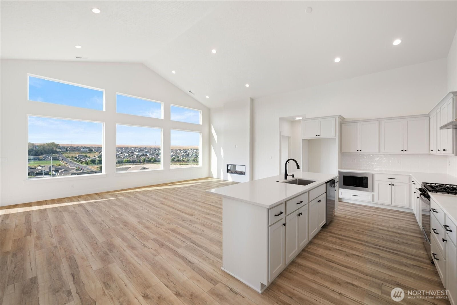 Experience elevated living in this stunning 4-bedroom home featuring vaulted ceilings, walls of windows, and high-end finishes throughout. The open-concept layout includes a gourmet kitchen with quartz countertops, stainless appliances, and custom cabinetry. The spa-style primary suite offers a soaking tub, dual vanities, and a tiled walk-in shower. Enjoy low-maintenance landscaping, a private patio with sweeping views, and a location close to schools, shopping, and dining. Built by BrickWise Homes at Valley View — where modern comfort meets exceptional style!
