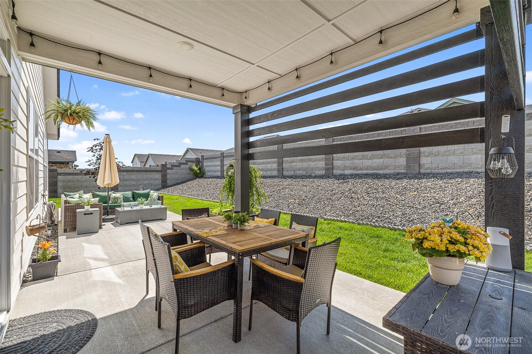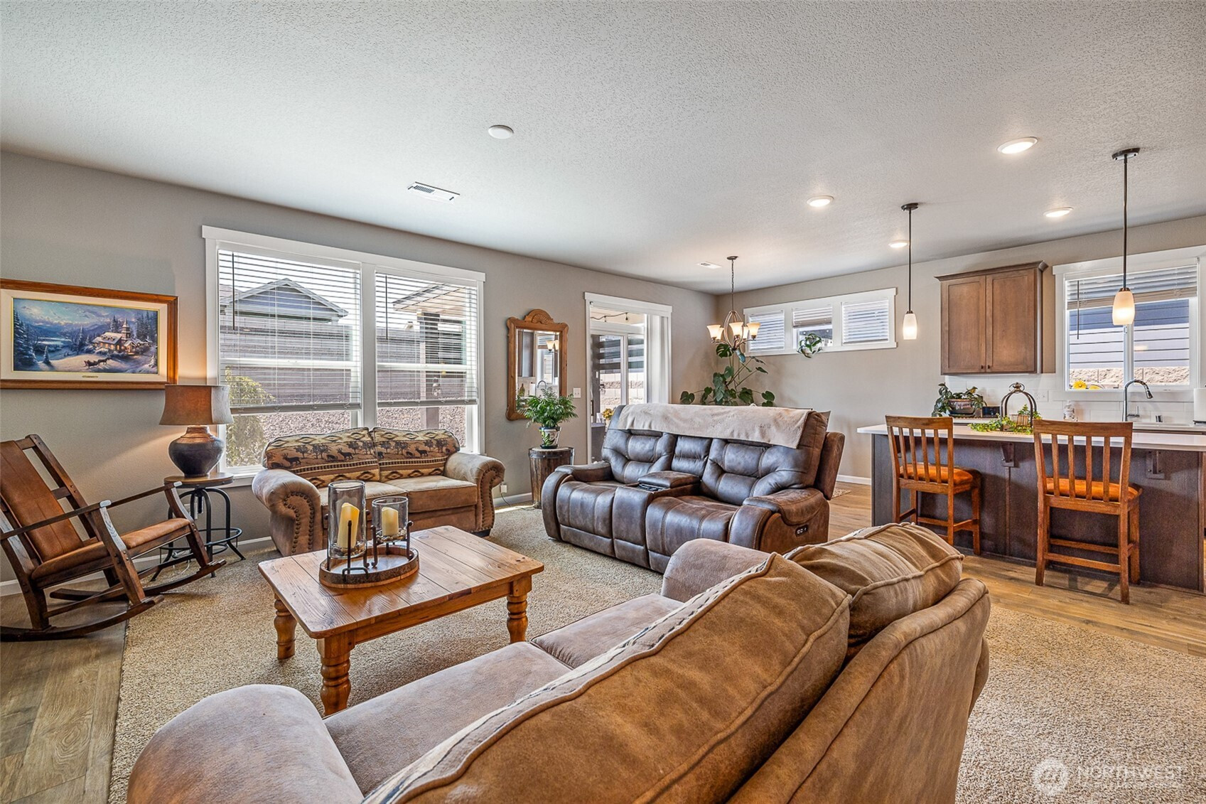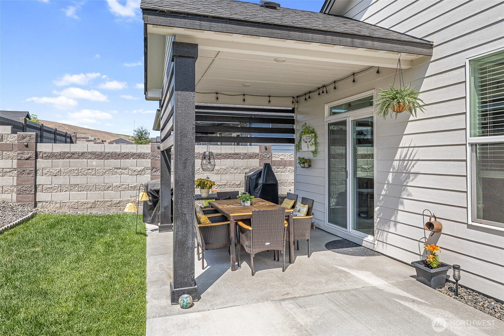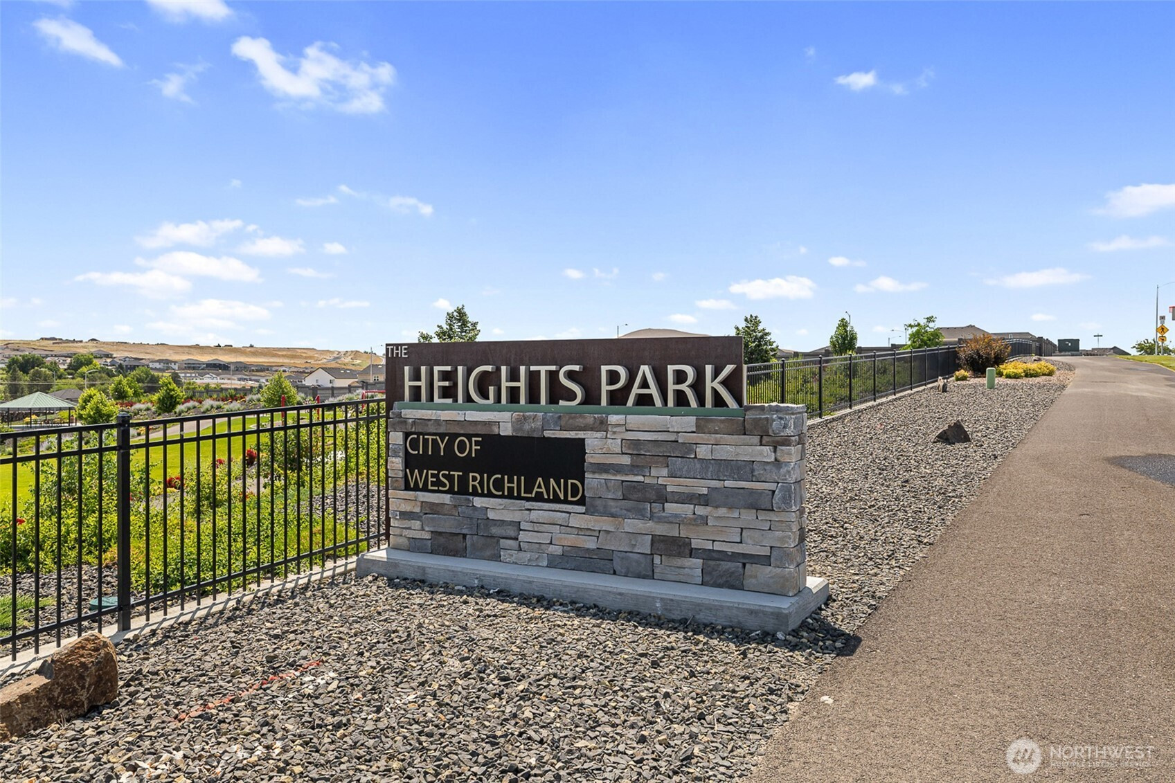 Meticulously maintained move-in ready, in perfect condition, great curb appeal, and includes all appliances! Open concept kitchen, quartz counters, undermount sink, island/breakfast bar, pennant lighting, cabinet high back splash, staggered cabinets, soft close hardware, stainless appliances, gas range. Raised ceilings, electric fireplace, plenty of natural lighting. Nice separation between bedrooms, primary bedroom has large walk-in closet and large attractive bathroom. Cabinets and sink in laundry room. Finished garage, covered front porch, block fencing, fantastic outdoor living area, covered oversized back patio. Great neighborhood near beautiful Heights Park with gazebo, playground, trails, basketball court, soccer field and more.