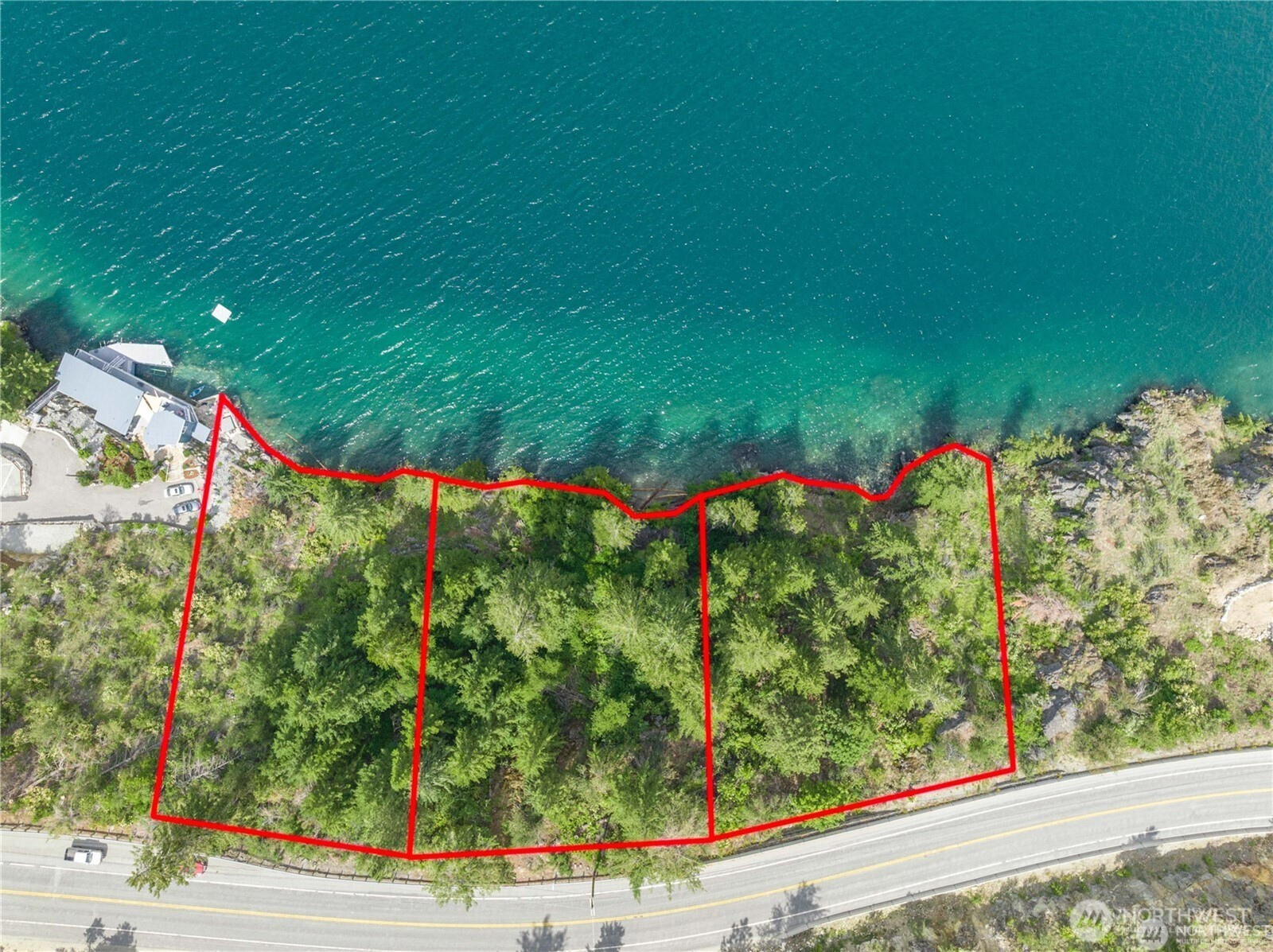 An exceptional waterfront offering on Lake Chelan South Shore. 15.38 acres spanning lake to hillside with 3 legal waterfront lots of record and 389 feet of private shoreline. The 1.15-acre waterfront is naturally beautiful with deep, clear water, a natural beach, and a private forested backdrop—ideal for a signature estate or thoughtfully designed multi-residence compound. Property has been previously surveyed and staked, providing clarity for future planning and vision. Across the street, 14.23 acres rise above the lake provide a natural privacy buffer and supplemental space. The combination of waterfront and additional acreage creates flexibility rarely found—build, divide, or design a legacy retreat with long-term optionality. Properties with this level of scale, privacy, and multiple legal lots are increasingly rare. Seller financing options available to create a pathway for a new owner to bring their waterfront vision to life!