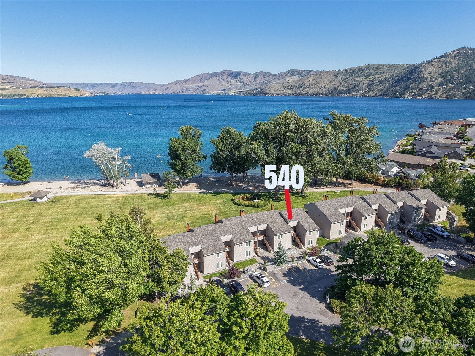 Purchase for $1.00. Buy NOW & Pay NO HOA Fees until January 2027. Seller will pay 2nd, 3rd & 4th quarter 2026 HOA Fees for Buyer at Closing of Sale if sale closes by April 2, 2026. Upper floor CORNER waterfront condo, lake views, remodeled 1 bed 1 bath with lawn & sandy beach waterfront amenities directly in front of condo. Desirable Upcoming Weeks: April 2-9, July 30-Aug 6 & Thanksgiving Nov 26-Dec 3 in 2026; April 29-May 6, Aug 26-Sept 2 & Christmas December 23-30 in 2027. 3 rotating weeks every year (Thursday to Thursday). $655/quarter HOA fees makes this the most affordable way to own on Lake Chelan. Use your weeks, rent for income or trade thru RCI & visit other places. Purchase includes use of boat docks, slips, buoys, children's activity center, basketball/tennis/pickle ball courts, sandy beaches, indoor/outdoor pools, multiple waterfront parks, mini golf, watercraft rentals & more. Close to downtown Manson restaurants, shopping, wineries, coffee shops, bakeries, grocery store & night life. Don't miss out on the opportunity to own at one of Washington State's most desirable vacation spots. 116 Acres of FUN for ALL Ages!