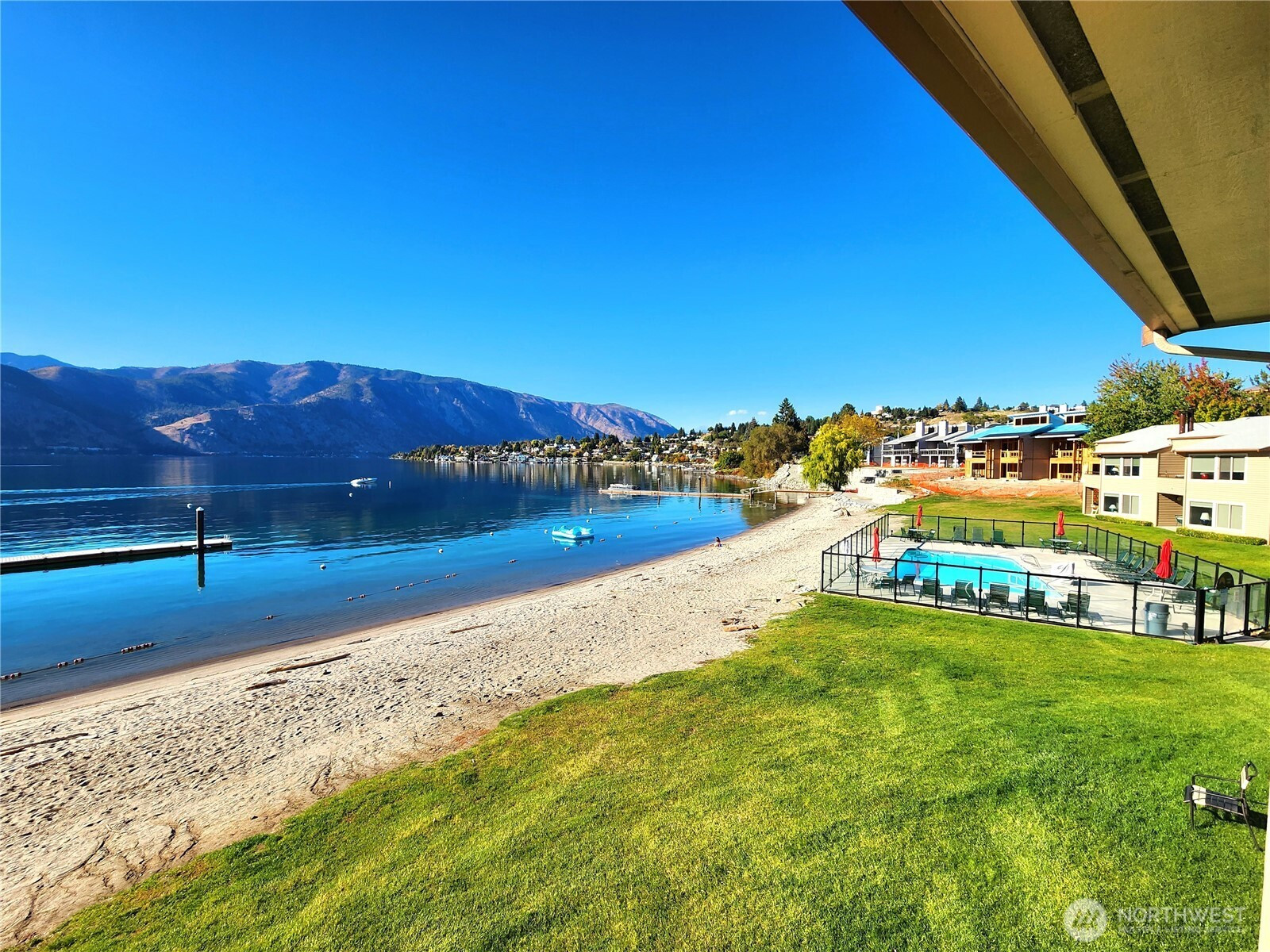 UPPER Floor 2 Bed 2 Bath with unobstructed lake & mountain views. AWESOME LOCATION with sandy beach, boat moorage, lawn, swimming area & outdoor pool in your front yard! Desirable Upcoming weeks: March 22-29, July 19-26 & November 15-22 in 2026. April 18-25, August 15-22 & December 12-19 in 2027. January 9-16, Holiday May 21-28 & September 17-24 in 2028. February 11-18, June 17-24 & October 14-21 in 2029. Purchase 3 rotating weeks every year (Sunday to Sunday). HOA fees $925/quarter. Use your weeks, rent for income or trade through RCI or Interval International & visit other places. Full remodel completed May 2022 with high end upgrades. Lakeside is located next to the Kiosk (watercraft rentals, children's activity center) in the heart of all resort amenities & short stroll to tennis/pickle ball courts, indoor pool, hot tub & exercise facility. Less than 2 blocks to downtown Manson restaurants, shopping, wineries, coffee shops, bakeries, grocery store & night life. One of Washington State's most desired vacation spots. 116 Acres of FUN for ALL Ages!