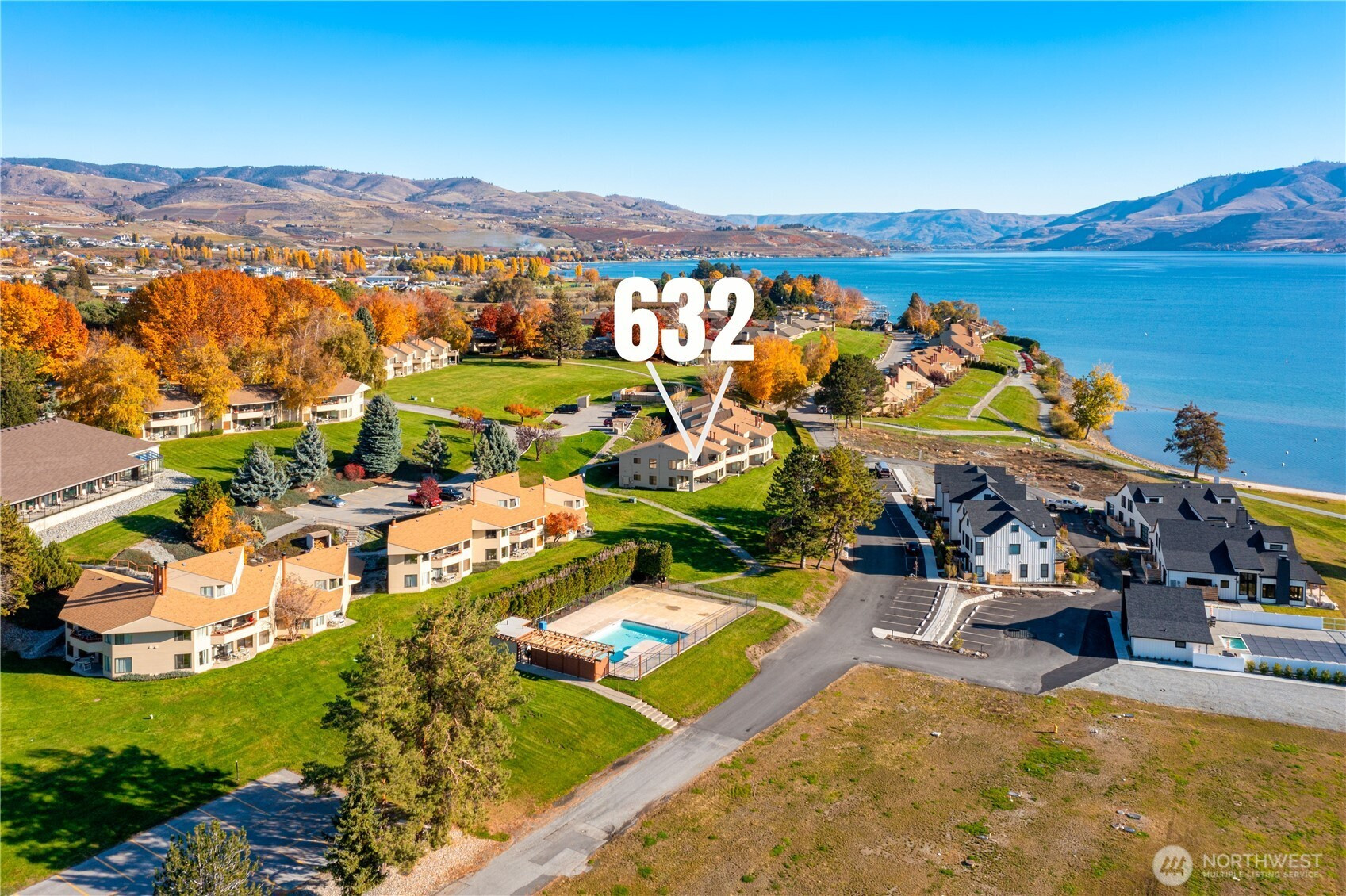 Enjoy a brand new unit w/high end finishes & new furnishings. Buy NOW & Pay No HOA Fees until July 2026. Upcoming Weeks: July 31-August 7 & November 27-Dec 4 in 2026. Christmas December 25-January 1, May 7-14 & Labor Day Week Sept 3-10 in 2027. 2nd unit from corner. Fully equipped GROUND floor 2 bed 2 bath luxury suite located steps away from indoor/outdoor pools, sandy beach waterfront amenities, children's activity center & more! Relax on the patio or at the nearby sandy beach. HOA fees $681 per quarter + $146 per quarter Lodge remodel cost. 3 rotating weeks per year ensure you experience every season this valley has to offer — spring wildflowers, summer on the water, fall harvest & winter serenity. Use your weeks, rent for income, or trade through RCI or Interval International to travel the world. Ownership includes full access to world-class resort amenities: boat docks, slips, buoys, sandy beaches, indoor/outdoor pools, on-site watercraft rentals, tennis/pickleball courts, children's activity center & more. Less than 3 blocks to downtown Manson restaurants, wineries, coffee shops, bakeries, grocery store, night life & more. 116 Acres of FUN for ALL Ages! Don't miss out on the opportunity to own at one of Washington State's most desired vacation spots. Four seasons. One incredible investment. Zero reasons to wait.