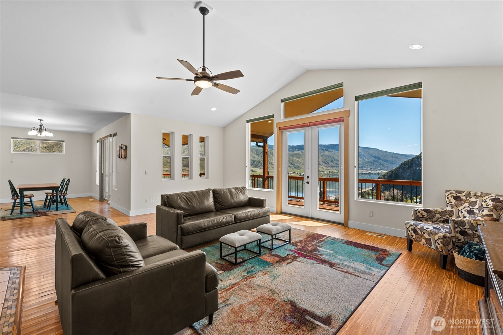 (503) 893-8874Top of the line Rambler with unobstructed Columbia River & Mountain views in every direction. Bamboo flooring, ten foot ceilings, & open great room floor plan. Cook's kitchen with double ovens, granite countertops, Cherry cabinets & walk-in pantry. Master suite with heated tile floors, double vanities and walk-in closet. Security system, sprinkler system, irrigation water & Pergola with hot tub. Covered and uncovered deck for entertaining. Plumbed for outdoor kitchen. 3 car tandem garage. Easy access to the Entiat Waterfront trail and boat launch. Vacant lot to the left available for purchase separately.