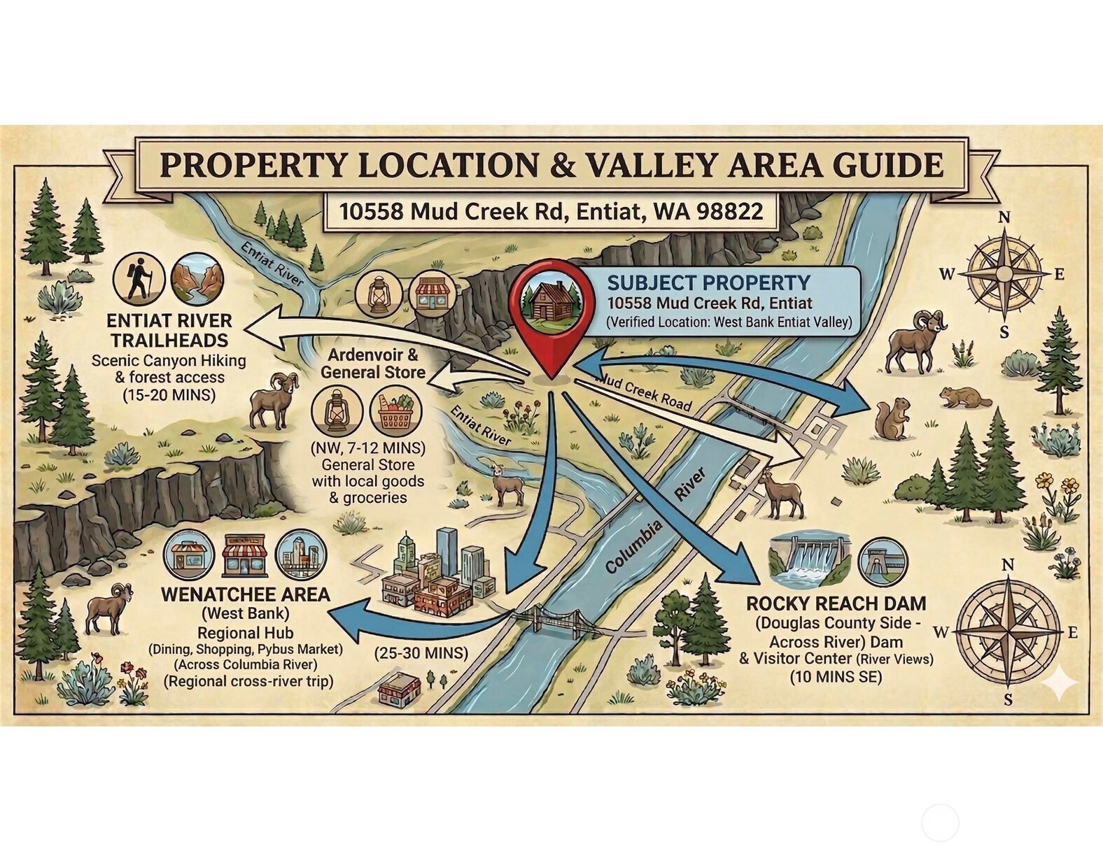 Lot 9 offers 41+ acres in the heart of recreation - 15 minutes up the Entiat Valley w/year-round creek and several fish bearing ponds. Adjacent to public land property has the feel of a national park with evergreens. Own 3/4 of a mile of Mud Creek on a quiet and private setting on one of the quietest paved roads in the Chelan County wildlife and recreation mecca. Parcel may be subdivided into two 20-acre parcels allowing a home on each. Cable and power at the road. Approx. 1.5 miles from the Ardenvoir Store.