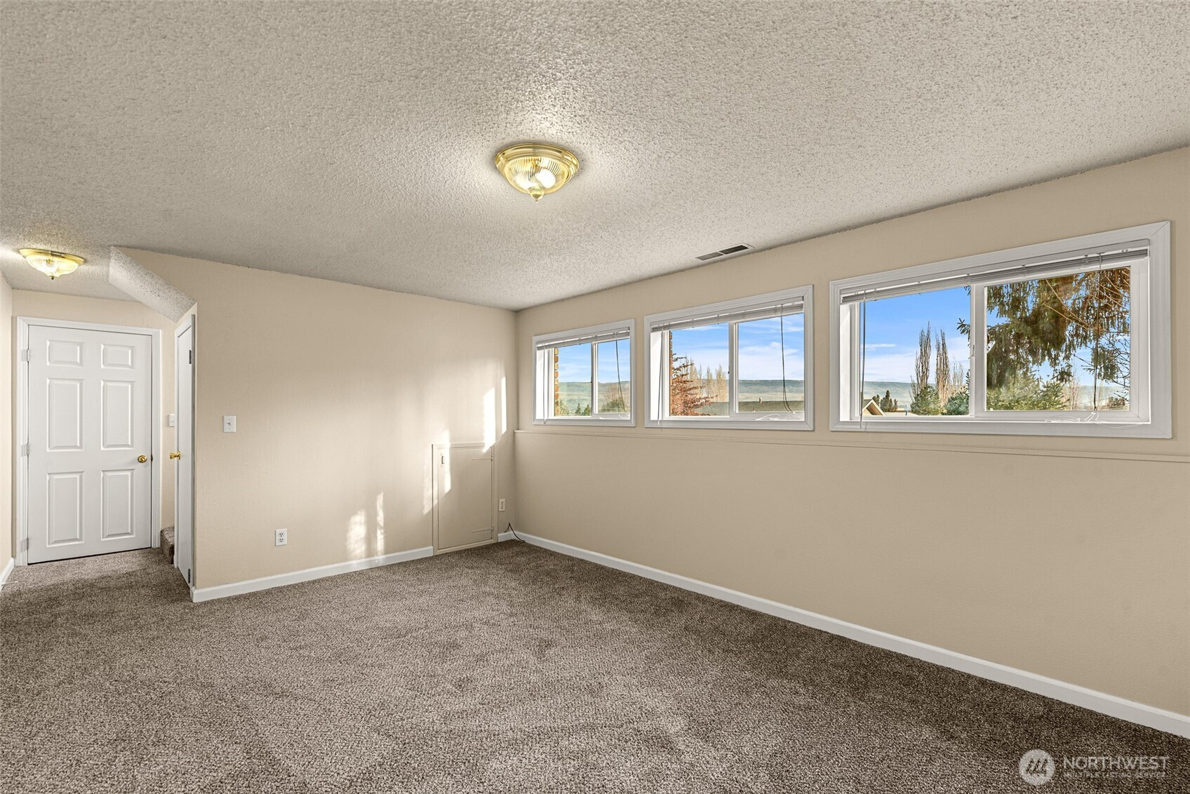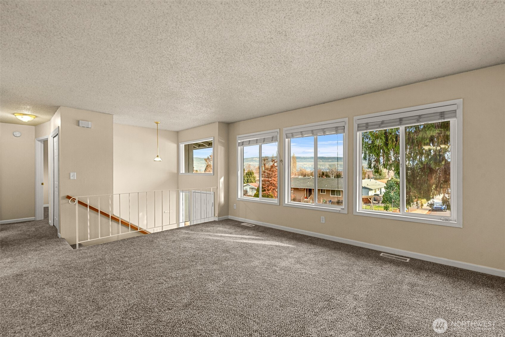 Bright & updated condo with sweeping views – duplex-style living. Discover this beautifully remodeled condo bathed in natural light & boasting panoramic views. Fresh interior paint & brand-new carpet create a move-in-ready feel throughout.The kitchen features sleek granite countertops & a convenient window overlooking the backyard, perfect for enjoying morning coffee. The spacious living room is filled with sunlight & views from expansive windows and there is a slider door leading to a back patio—ideal for relaxing. Enjoy the rare duplex-style building with no units above or below. Additional highlights include newer central heat & a/c, an attached garage, & a dedicated laundry room. The thoughtful split-level layout offers flexibility: upstairs features 2 bedrooms & a full bathroom, while the lower level includes 1 bedroom, another bathroom, and a versatile family room. This light-filled, low-maintenance condo combines modern updates with comfortable, functional living in a prime location near the high school & hospital.