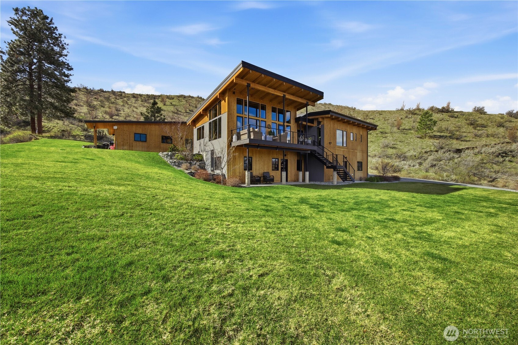 A signature Chelan Valley custom home. Set on 20 private acres with sweeping, commanding views of the lake and valley, this thoughtfully designed custom home built by Harkey Construction offers a balance of space, craftsmanship, and convenience—located just 8 minutes from town and nestled at the base of the Hawks Meadow community. A truly unique feature of the property is its ownership of the well-known bear sculptures that welcome visitors to the Chelan Valley. This beloved local landmark gives the home a distinctive sense of place. The property is designed to enjoy both the landscape and time with family and friends. Relax in the hot tub while taking in the views, gather around the fire pit set within a historic rock building, or enjoy movie nights in the media room with the projector. Inside, the home offers thoughtful features that make everyday living comfortable and practical. The primary bedroom includes motorized blinds and blackout shades, and the bathrooms feature heated floors for added comfort. A Tesla charger is installed for convenience, and the property includes fire-wise landscaping with an integrated outdoor sprinkler system. With expansive views, private acreage, and distinctive character, this property offers a unique opportunity to enjoy the beauty and lifestyle of the Chelan Valley.