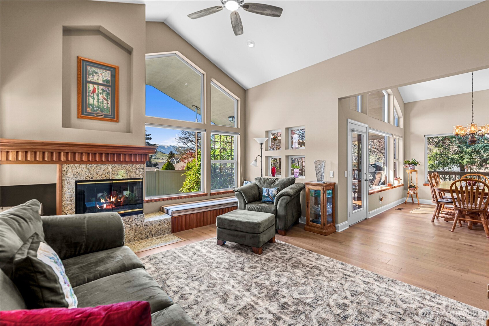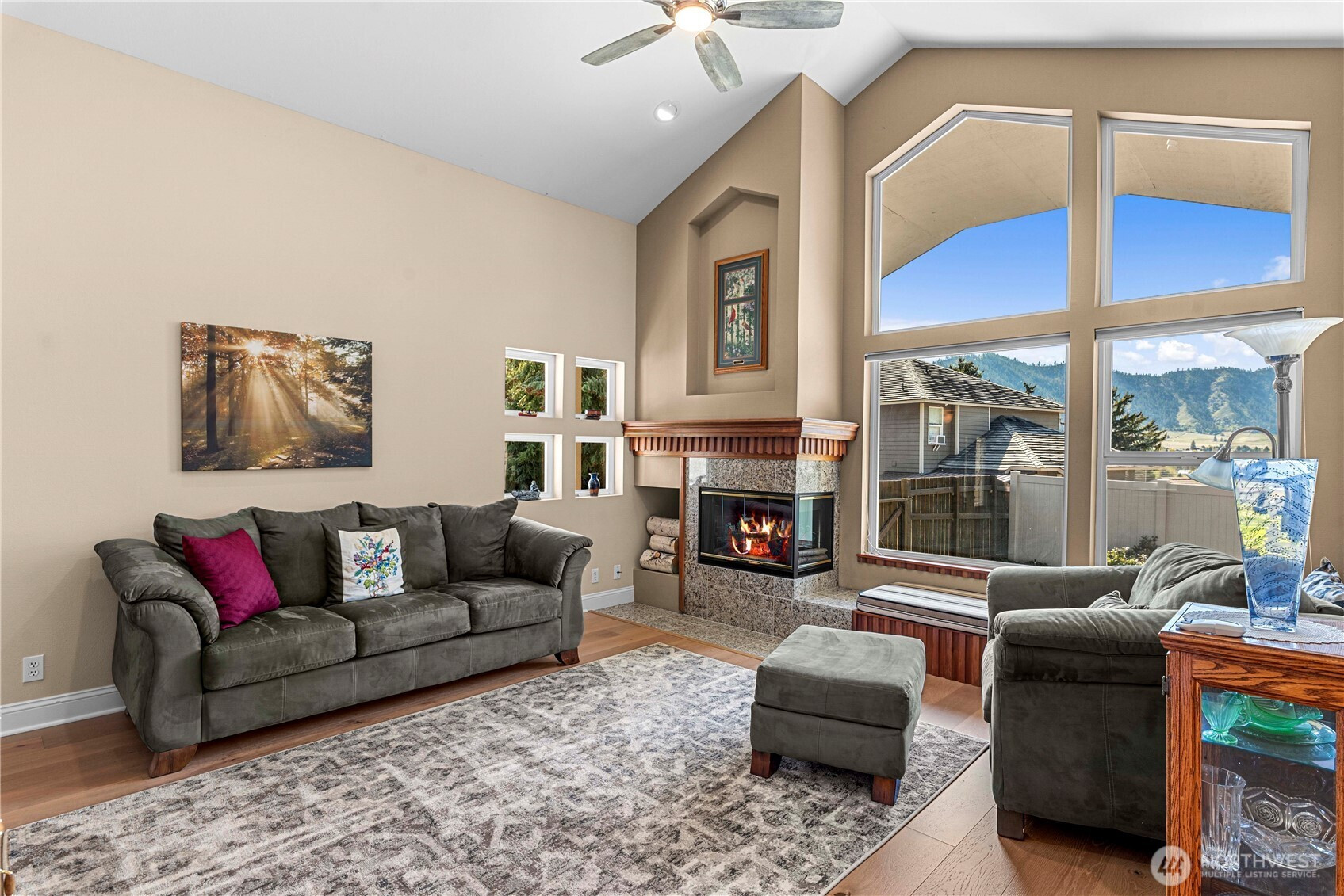 Nestled in Cashmere, this charming home captures stunning mountain and valley views in a peaceful neighborhood setting. Thoughtfully designed with vaulted ceilings in the dining and living rooms, engineered hardwood floors, and an many of windows, the home is filled with natural light and warmth. Granite countertops in both the kitchen and bathrooms add elegance, while a built-in hutch in the dining room and marble-surround fireplace add unique character. Enjoy quiet mornings or relaxed evenings on the large covered deck or welcoming front porch. Located near Riverside Park and the Cashmere Museum & Pioneer Village, and just moments from Milepost 111 Brewing Company, this home offers a seamless blend of comfort, design, and natural beauty.