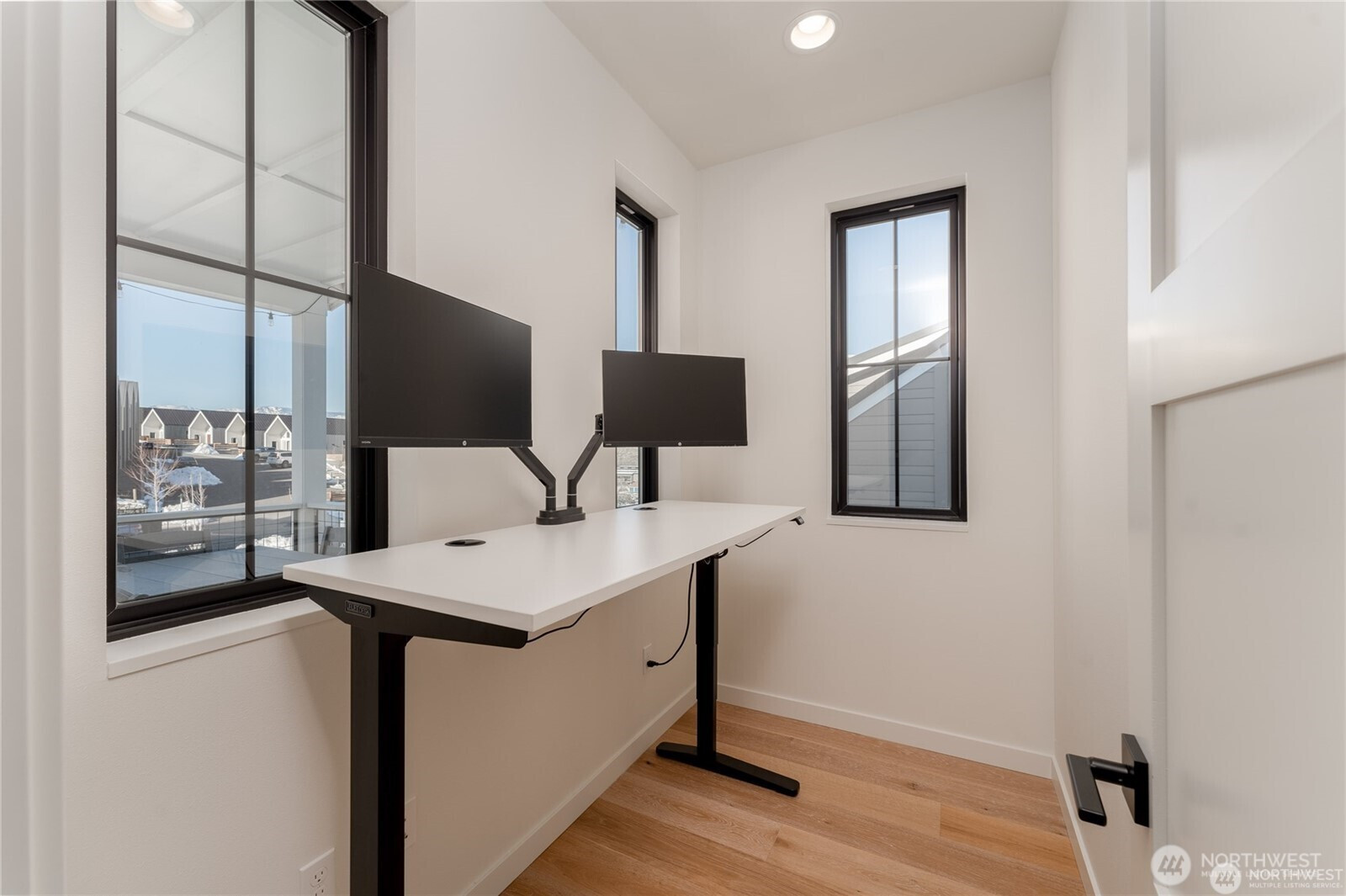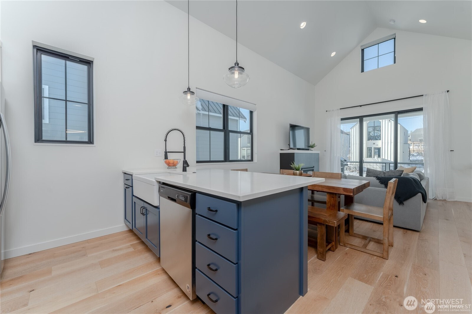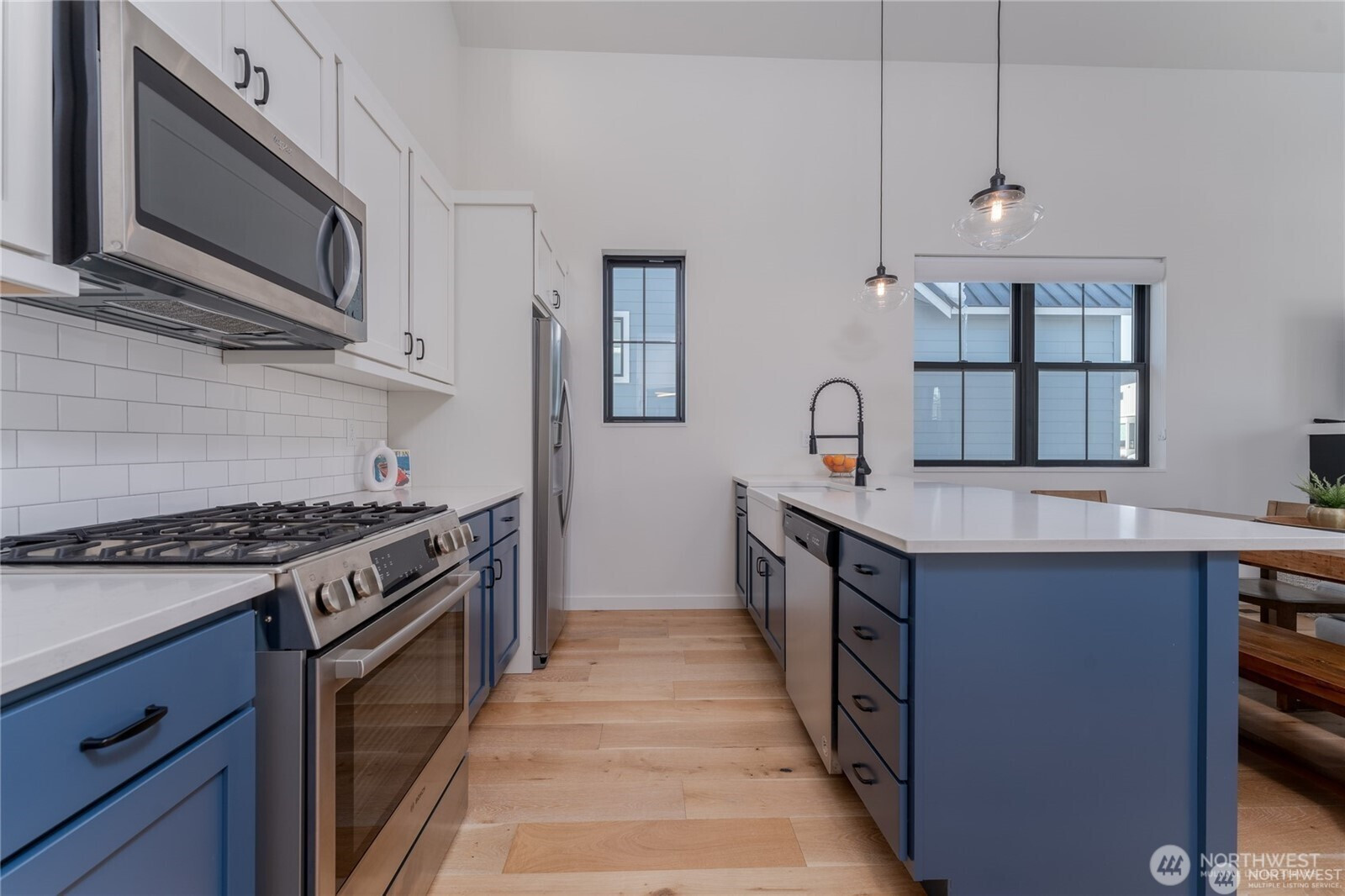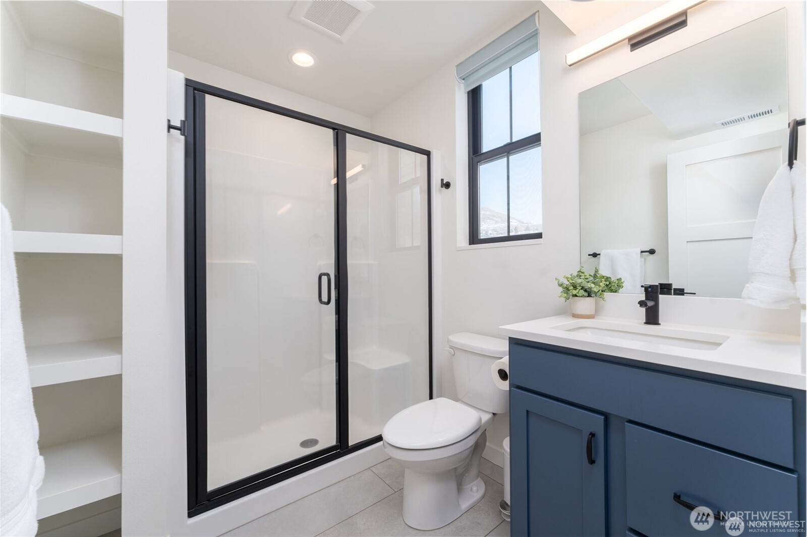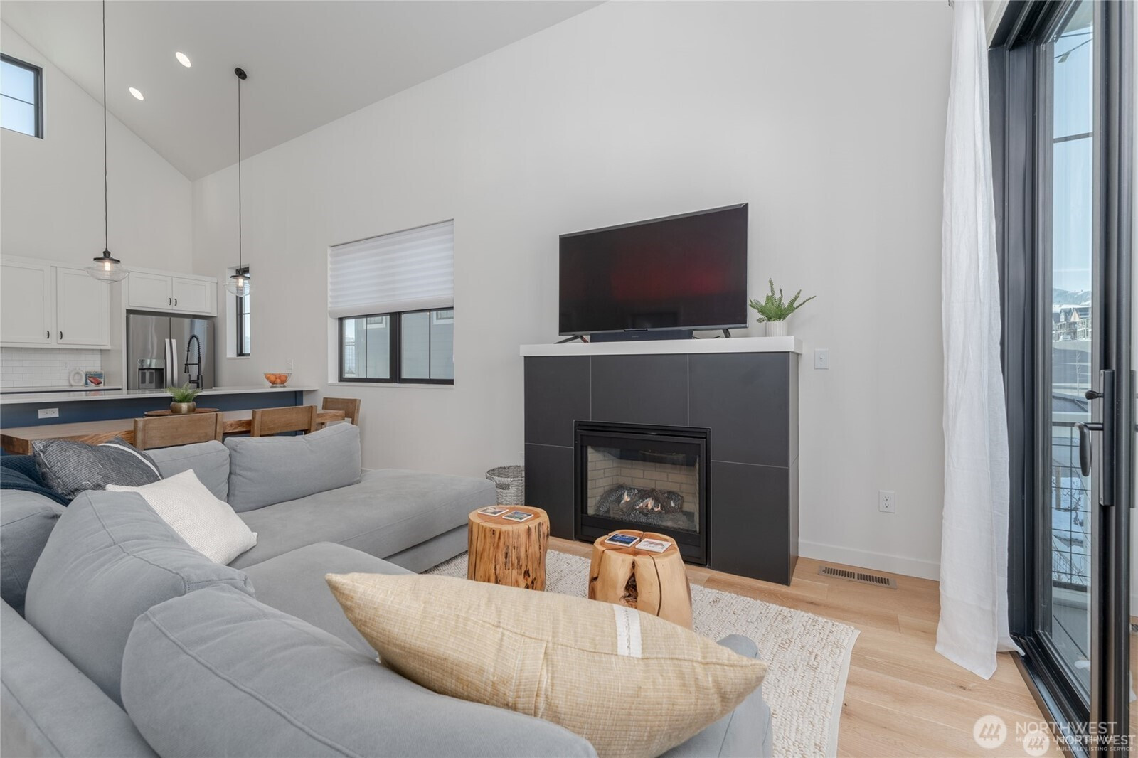 Like-new and impeccably maintained, this 2-bed, 2.5-bath home with a Carriage House comfortably sleeps seven! The light-filled main home offers 1,092 sq. ft. of stylish living with two spacious ensuite bedrooms, a pocket office, vaulted great room with gas fireplace, and 366 sq. ft. of covered deck space for year-round enjoyment. The Carriage House adds 286 sq. ft. of flexible living featuring a bonus room with queen Murphy bed, kitchenette, and ¾ bath — perfect for guests or short-term rental income. Enjoy abundant parking plus a 384 sq. ft. garage providing excellent storage or additional flex space. With nearly 1,400 sq. ft. of total living area, this fully furnished turnkey property offers exceptional value and versatility. Located in The Lookout, a premier community with waterfront access, sandy beach, marina, parks, pools, playgrounds, and on-site management & hospitality — a truly unique opportunity!