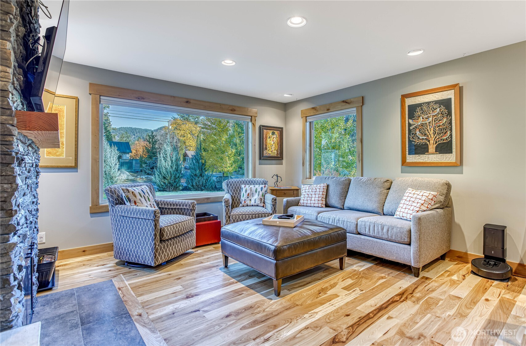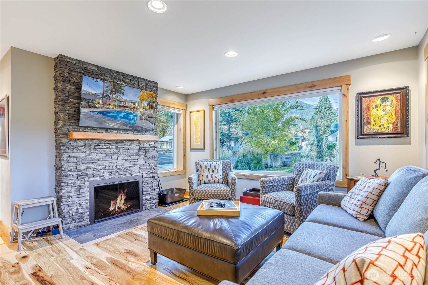 Discover your dream home in this stunningly remodeled house, completed in 2019! Step inside to an open, inviting living area adorned with a cozy wood-burning fireplace—perfect for relaxation and entertaining. The chef’s kitchen is a culinary masterpiece, boasting high-end appliances and quartz countertops, ideal for gatherings and gourmet cooking. With 4 spacious bedrooms and 3 spa-inspired bathrooms featuring heated tile floors and rain showers, luxury awaits at every turn. Enjoy the heated pool in a serene private setting and easy access to riverfront park trails. The primary suite offers a tranquil retreat with a luxurious bath and exclusive deck access. Plus, a dedicated movie room, heated driveway and garage ensure year-round comfort.