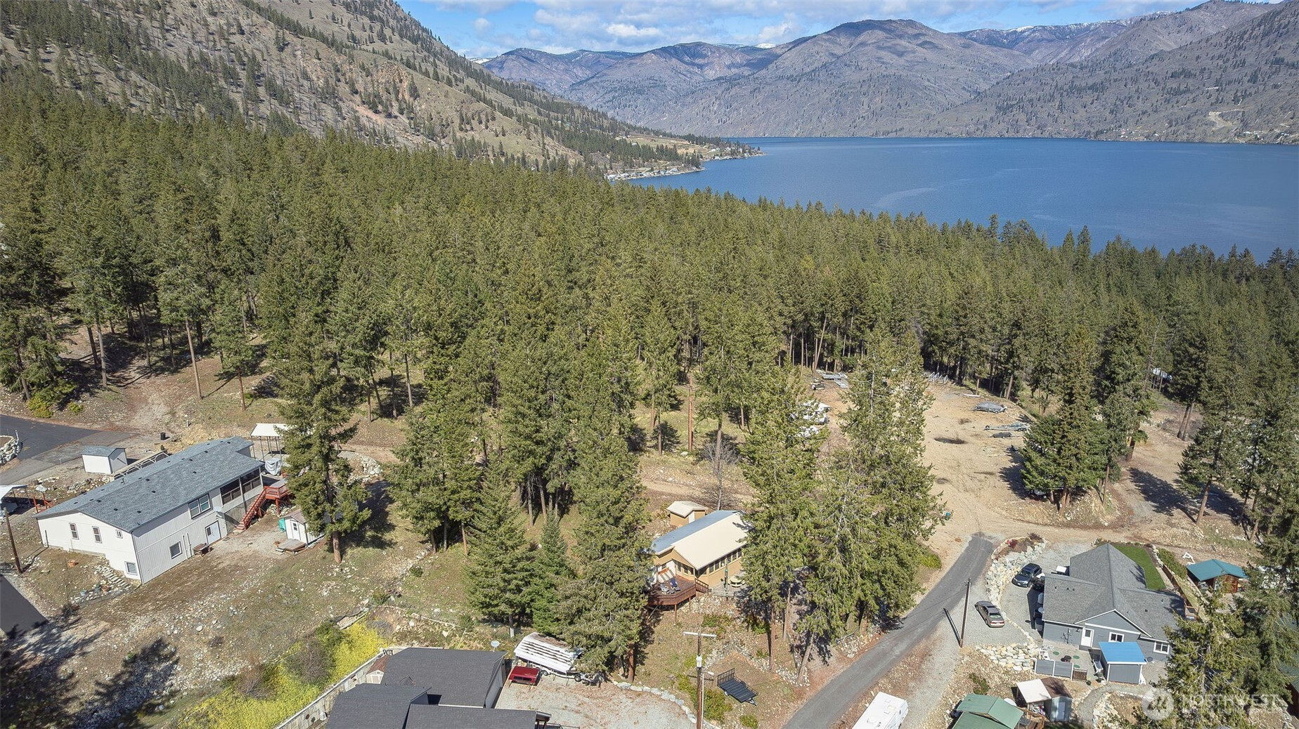 The perfect getaway; seclusion, beautiful views, the woods, wildlife, all while only 20 min from town! Your whole troop can play the "I see it" game to see who can spot the lake first on your way in to your personal paradise! Nearby hiking, waterskiing and fishing. If you don't want to be out playing, stay in and take in the expansive views of the lake, osprey building nests, deer walking by grazing, while having the opportunity to enjoy your new escape. The Lake Chelan Yacht Club also host many events for all ages creating a community of individuals you'll cherish. This lake house has 2 bedrooms, 1 bath, 600 sq foot enclosed porch (windows come out for open breeze), and unlimited memories waiting to take place! The seller's favorite memories are all their friends and loved ones taking photos on "the rock" in the front driveway! How many individuals can you fit on it at once?! Everything in this home is included in the sell, turn key paradise is awaiting you!