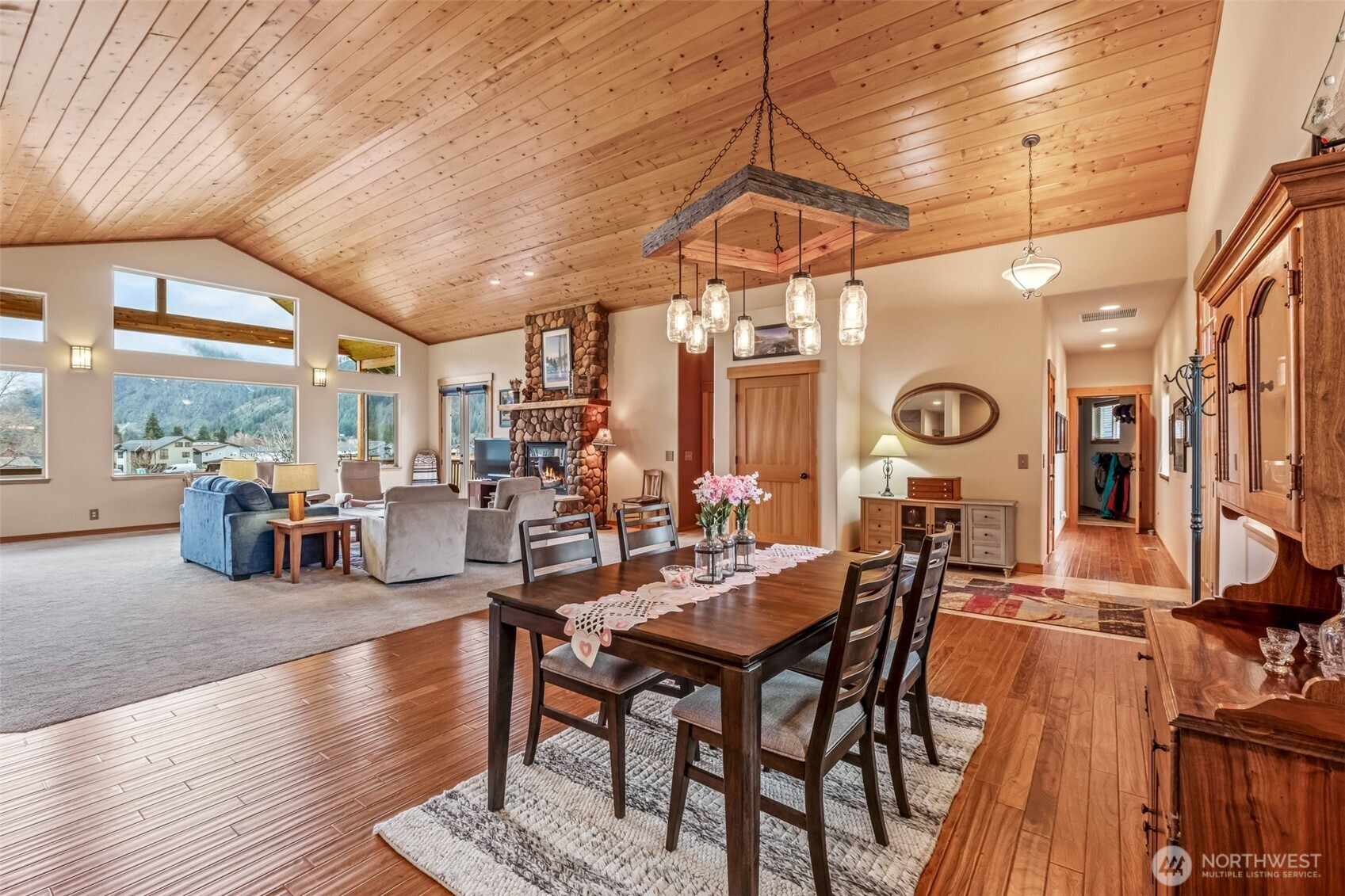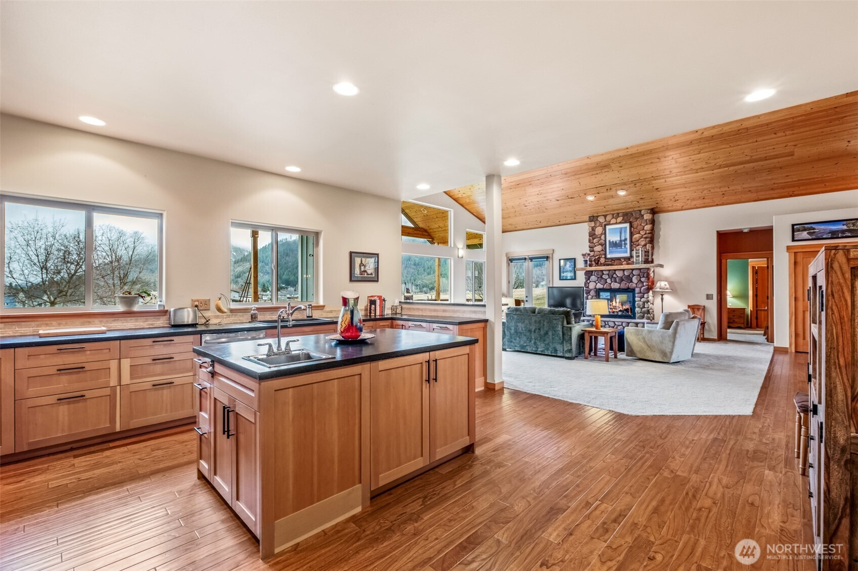 Beautiful one-level home featuring an amazing floor plan designed for comfortable living and effortless entertaining. The expansive living, dining, and spacious chef's kitchen area showcases soaring vaulted ceilings and oversized windows that fill the space with natural light and frame incredible views. Large covered deck allows you to enjoy the outdoors year round and the oversized yard is perfect for 4 seasons playing! This thoughtfully designed home offers three spacious bedrooms plus a dedicated office—perfect for working from home, hobbies, or guest space. The stunning fireplace creates a warm and inviting focal point in the main living area, making it ideal for cozy evenings or gathering with friends. Enjoy exceptional privacy in this serene setting, tucked away on a quiet dead-end street. Despite the peaceful location, you’re just minutes from town and within easy walking distance to shops, dining, and everyday conveniences. Outdoor enthusiasts will love the recreation opportunities right outside the door, whether it’s walking, biking, or simply enjoying the surrounding natural beauty. Popular Ski Hill location with great southern exposure and of course close to the Leavenworth Ski Hill, cross country skiing, mountain biking and don't forget the outdoor theater! You are going to love this home the second you walk in the door!