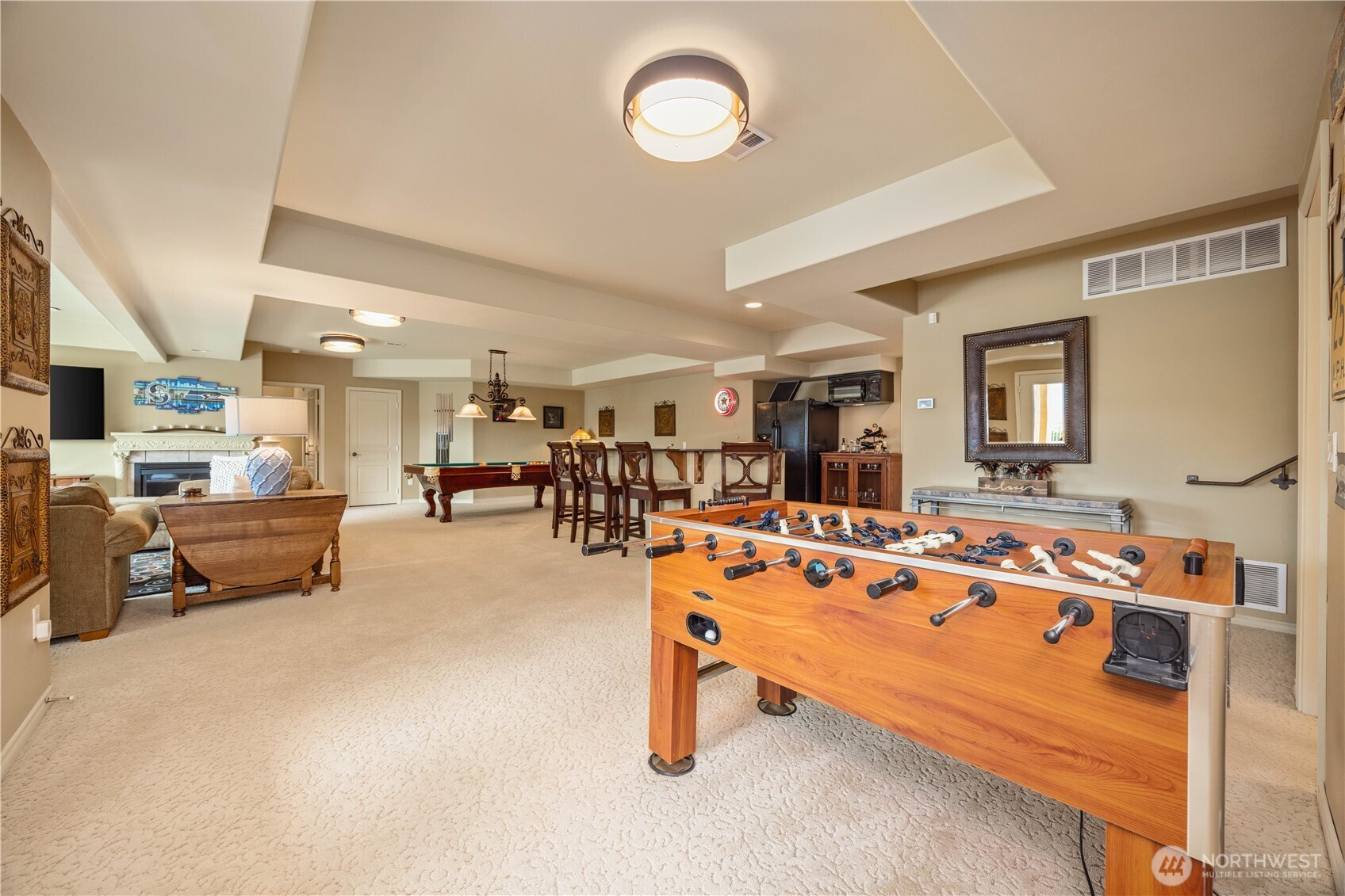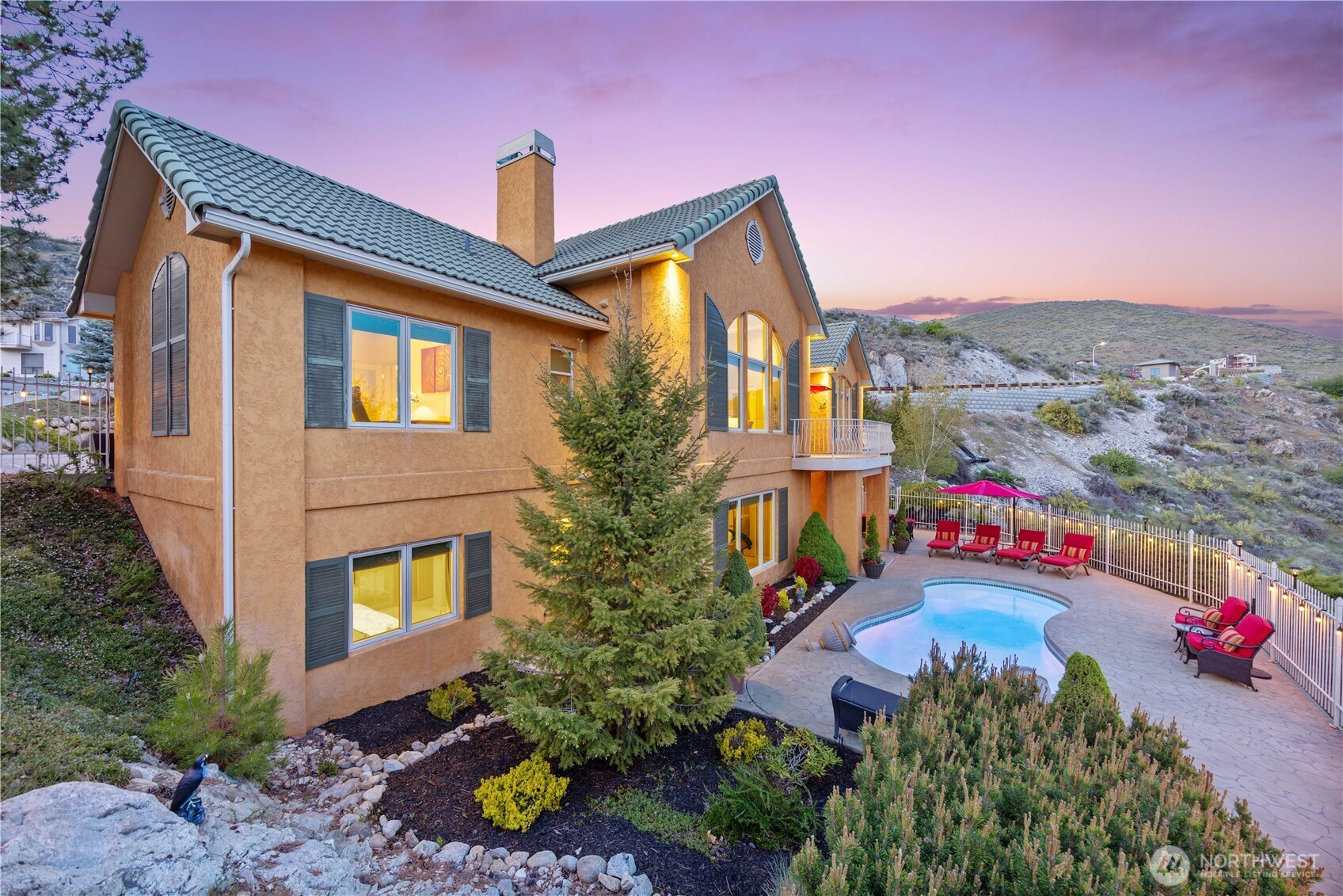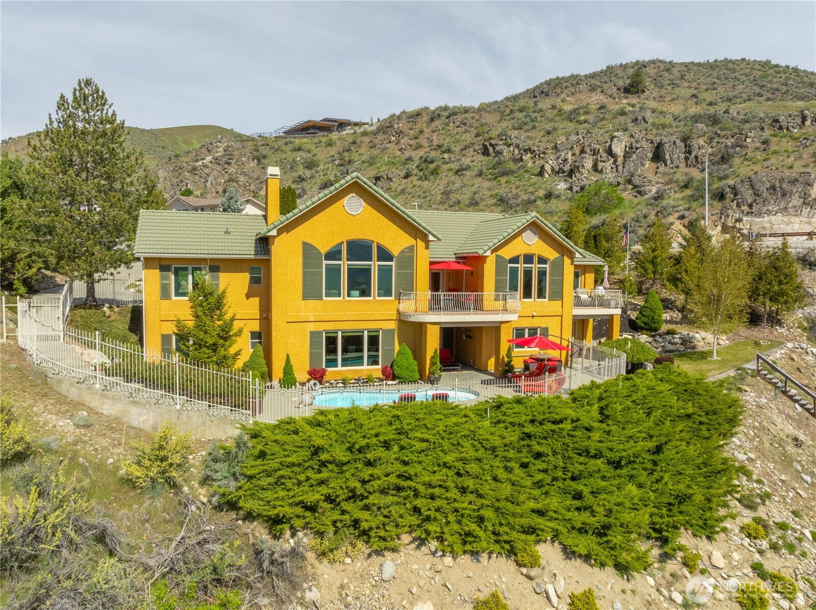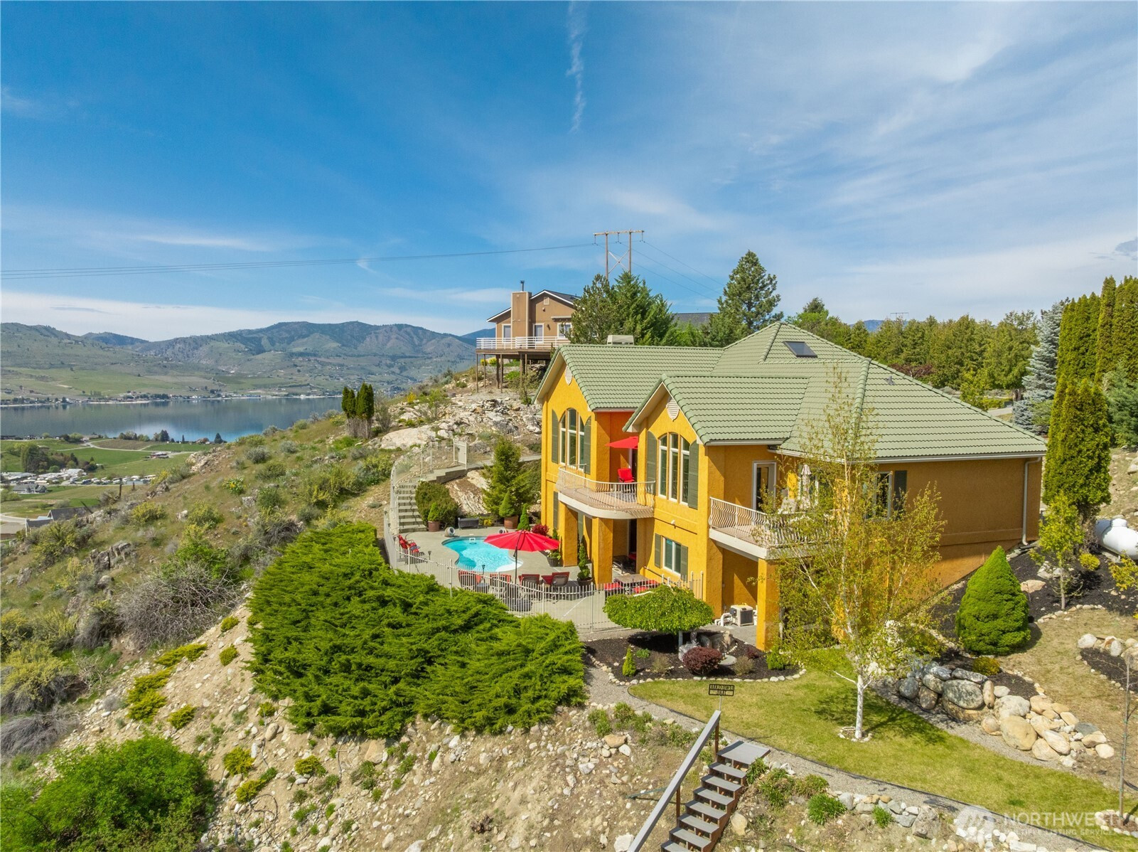 Perched above the fairways with sweeping views of the lake, this extraordinary Chateau estate captures the essence of luxury living in Lake Chelan. A sparkling in-ground pool anchors the outdoor experience, perfectly positioned to take in the breathtaking scenery. Spanning over 4,800 square feet, the residence showcases a thoughtfully designed and highly functional layout. The grand main level features an open-concept living, dining, and chef’s kitchen, seamlessly blending elegance and comfort. Just off the entry, a private office offers the ideal vantage point to watch golfers or simply enjoy the serene surroundings. The main-level primary suite is a true retreat, complete with a spa-inspired ensuite featuring a jetted Jacuzzi tub, oversized steam shower with sauna, and an expansive walk-in closet. The lower level is designed for both relaxation and entertaining, offering two junior suites, an additional guest bedroom, versatile flex space, wet bar, and an expansive game and family room. Floor-to-ceiling views continue throughout, with direct walk-out access to the pool creating a true resort-style experience. Car enthusiasts and hobbyists will appreciate the impressive 1,254-square-foot attached garage with ample room for storage, workshop space, and more. A separate dedicated golf cart garage provides direct access to the Lake Chelan Municipal Golf Course, enhancing the lifestyle this home so effortlessly delivers. A rare one-of-a-kind offering.