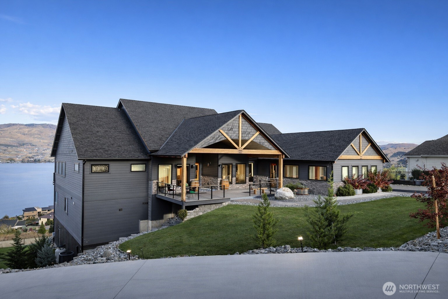 Welcome to your private oasis in Clos CheValle, Lake Chelan's premier neighborhood for luxury living. 149 Clos Chevalle offers main-level living with guest rooms, a recreation room and a beautifully crafted wine room on the lower level. Take in sweeping lake views in every direction from the moment you enter the home. Every detail has been thoughtfully designed around luxury living, relaxation & entertainment. The spacious kitchen and dining area create the perfect setting to host while feeling perched above Lake Chelan. Downstairs, enjoy a full entertainment experience with a bar, projection screen, wine room, and more. Step outside to the patio, pool, and hot tub, all framed by stunning 180-degree lake views. The indoor/outdoor speaker system ties everything together for seamless transition throughout. When work calls, a dedicated office provides the ideal workspace. A fully-fenced yard allows plenty of play area for furry friends and the large three car garage includes extra room for tinkering. This home is move-in ready with furniture negotiable. Clos CheValle features gated access, scenic trails, parks, and a surrounding vineyard—truly the finest in Lake Chelan living!