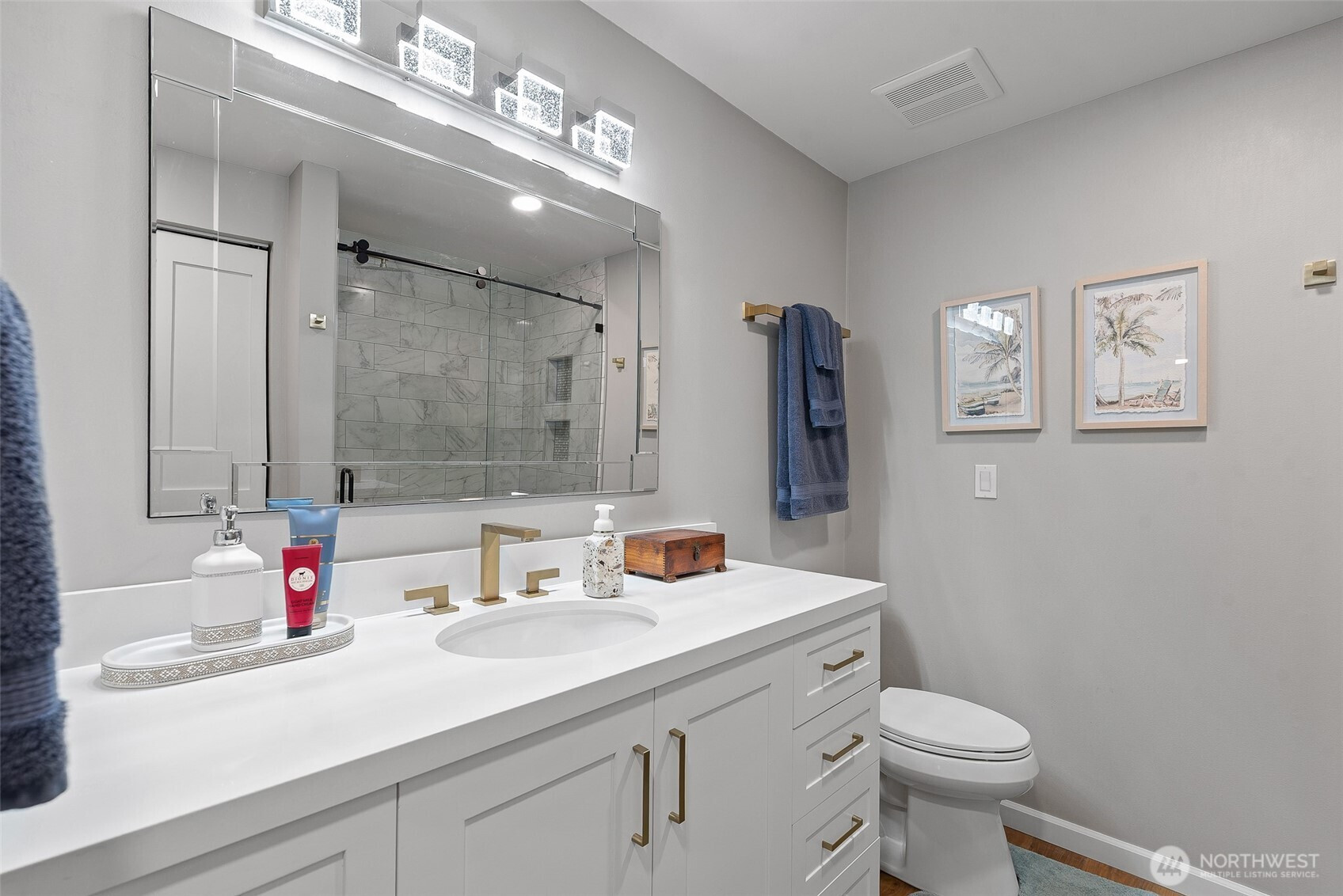 Tastefully renovated and beautifully maintained, this upper-level condo offers effortless living in a peaceful, tucked-away setting. With 3 bedrooms and 1.75 bathrooms (3x5 shower), the home is thoughtfully designed. The light filled layout features travertine tile, LVP flooring, fresh interior paint and newer appliances adding to the move-in-ready appeal. The cozy fireplace sets the tone of comfort. The kitchen and primary bathroom are elevated with newly installed quartz countertops & backsplash, offering a clean, timeless look that feels both stylish and functional. The private deck, accessible from both the living room and the primary bedroom, is the perfect spot to start your morning with coffee, unwind in the evening, or simply enjoy the peaceful views and quiet location overlooking the canal and mountains. Additional features include carport parking & a secure storage area. The healthy HOA provides confidence, allowing you to focus more on enjoying life. Seller providing a 1-year home warranty as well. If you are ready for low maintenance living with access to a community pool, sauna and clubhouse, Castlerock Village is the place for you!