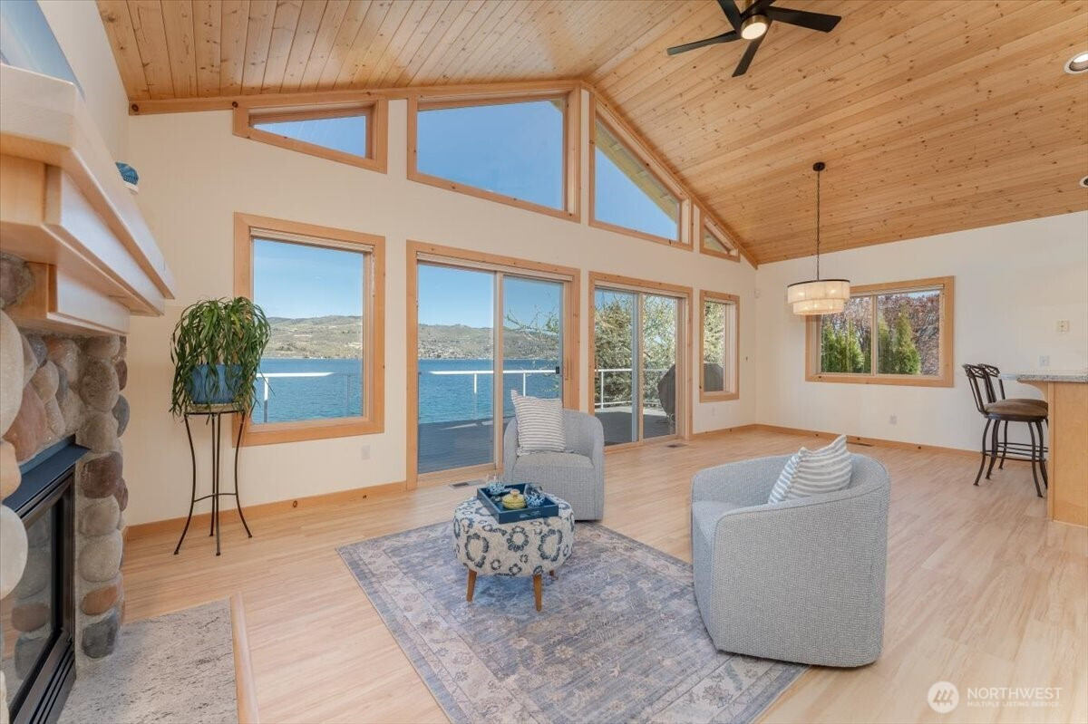 Step into a truly exceptional waterfront retreat at the coveted entrance to Minneapolis Beach Road—where refined living meets effortless lakeside enjoyment. This remarkable property is designed for both elevated entertaining and serene everyday living, offering a rare combination of privacy, space, and direct access to Lake Chelan. From your private shoreline and inviting swimming bay to the covered boat lift, dock, and buoy, every detail has been thoughtfully curated for a seamless waterfront lifestyle. Expansive terraced lawns create the perfect setting for outdoor gatherings and games, while the fenced yard provides peace of mind for pets and little ones. Multiple patios and decks invite you to relax, host, and take in the surroundings. Inside, the home continues to impress with four bedrooms and four baths, including a main-level primary suite with a spa-inspired ensuite. The great room is framed by a vaulted wall of windows capturing lake views and filling the space with natural light. Enjoy cool summer breezes or cozy up beside the river rock fireplace in winter. An expansive game or media room offers endless possibilities for gatherings and relaxed evenings. A bonus informal living room lake level. Lush landscaping enhances privacy, while generous storage and a two-car attached garage ensure convenience. Opportunities like this are rare—finding a home of this size and quality on Lake Chelan’s south shore is truly exceptional.