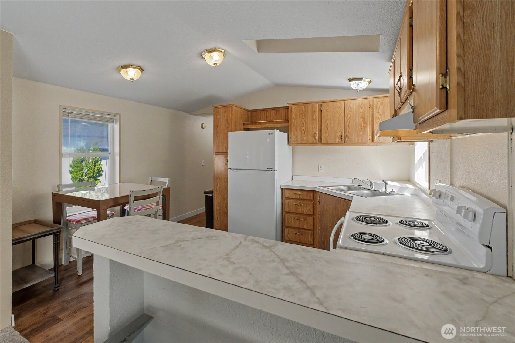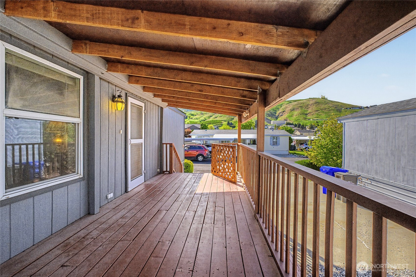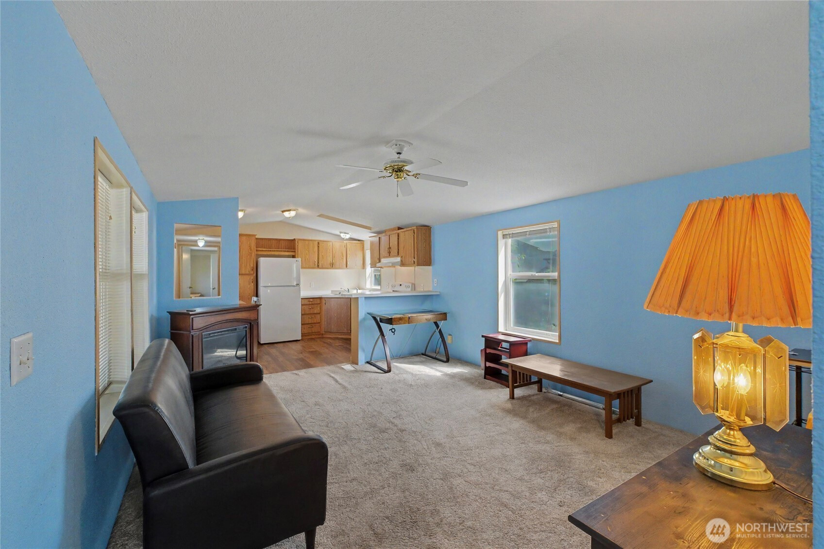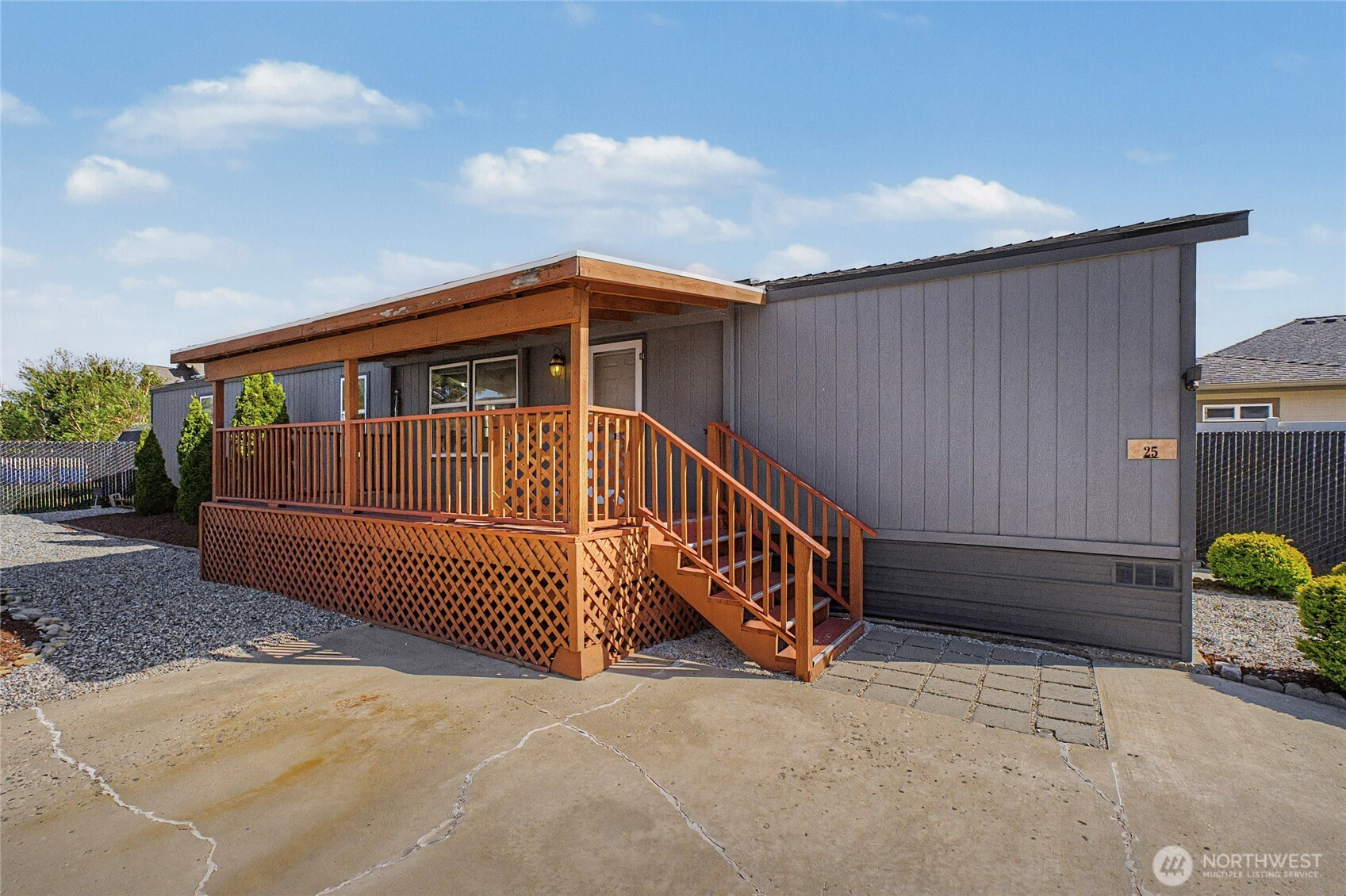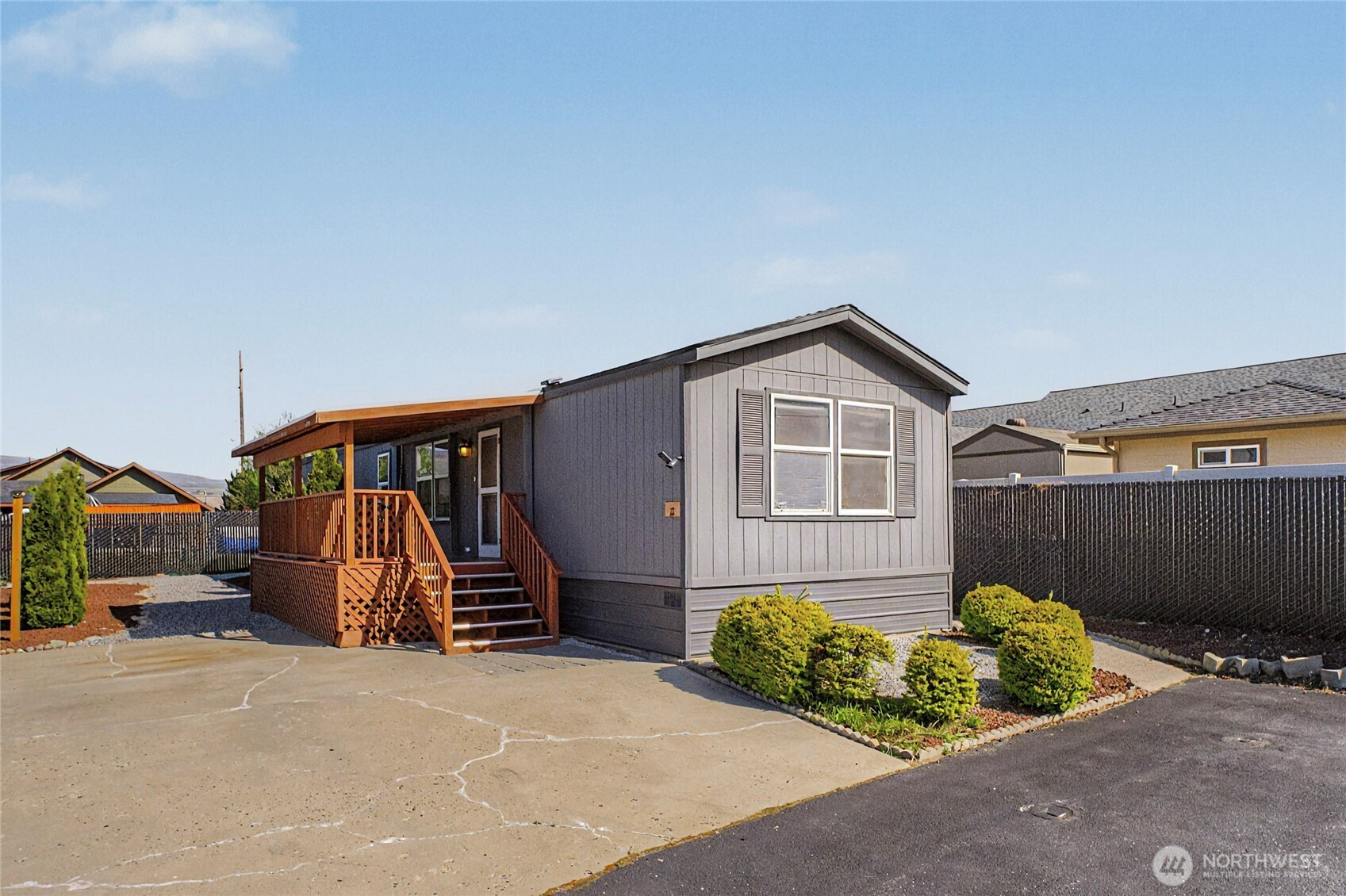 Well cared for manufactured home with the primary bedroom at opposite end of the home from the 2nd bedroom with a private bath and walk in closet. The 2nd bedroom conveniently has a full bathroom next to it in the hallway. Spacious living room with open kitchen concept. Sky light in kitchen makes it bright and airy. Nice sized covered front deck. Easy access to disabled ramp at the back of the home. The kitchen has new flooring. This is a 55 & Older Manufactured Housing Community with leased land. The monthly $625.00 payment includes domestic water, and sewer. Park allows one small pet, one dog, or one cat, 15 pounds or less and up to 18 inches tall.
