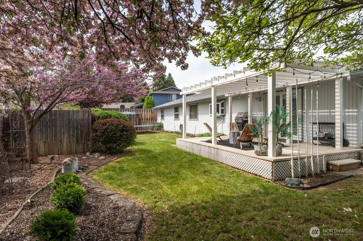 Beautifully updated single-level home in a sought-after cul-de-sac location near shopping, schools, and medical services, this 3-bedroom home offers a spacious primary suite, 1 full bath plus a 3/4 bath, newer furnace, updated lighting, fresh paint, and abundant storage throughout. The open and inviting kitchen is ready for your personality to shine, featuring hardwood cabinets, newer appliances, pantry space, and a functional layout that flows seamlessly into the main living area, complete with laminate flooring and a cozy wood-burning fireplace. Thoughtful updates and added storage, including an extra closet in the primary suite, enhance everyday comfort and livability. Step outside to a fully fenced and irrigated backyard with a covered patio perfect for year-round enjoyment, along with RV parking and a 2-car garage with built-in office space—offering flexibility for work, hobbies, and more. A rare blend of comfort, convenience, and versatility in a desirable Wenatchee neighborhood.