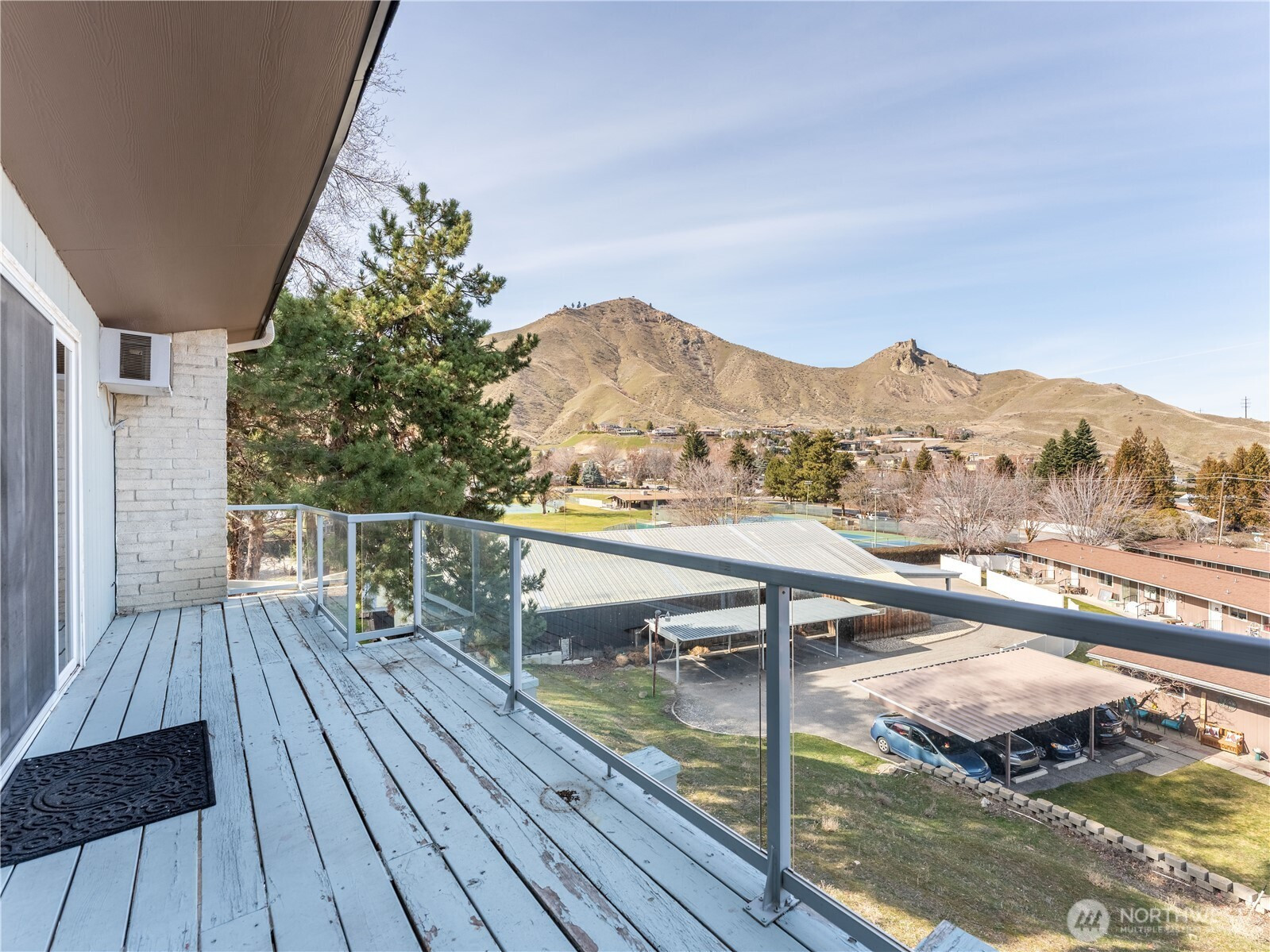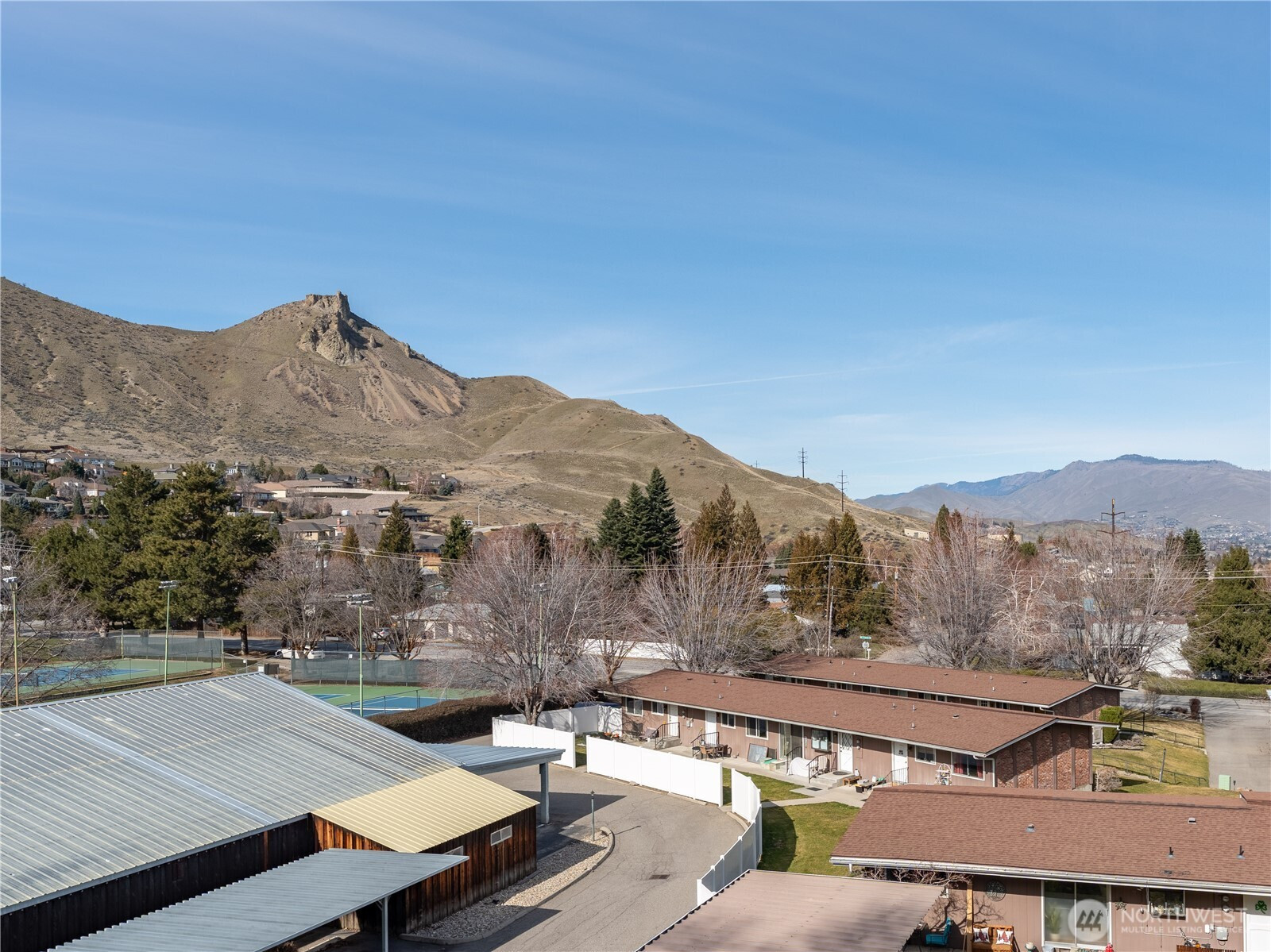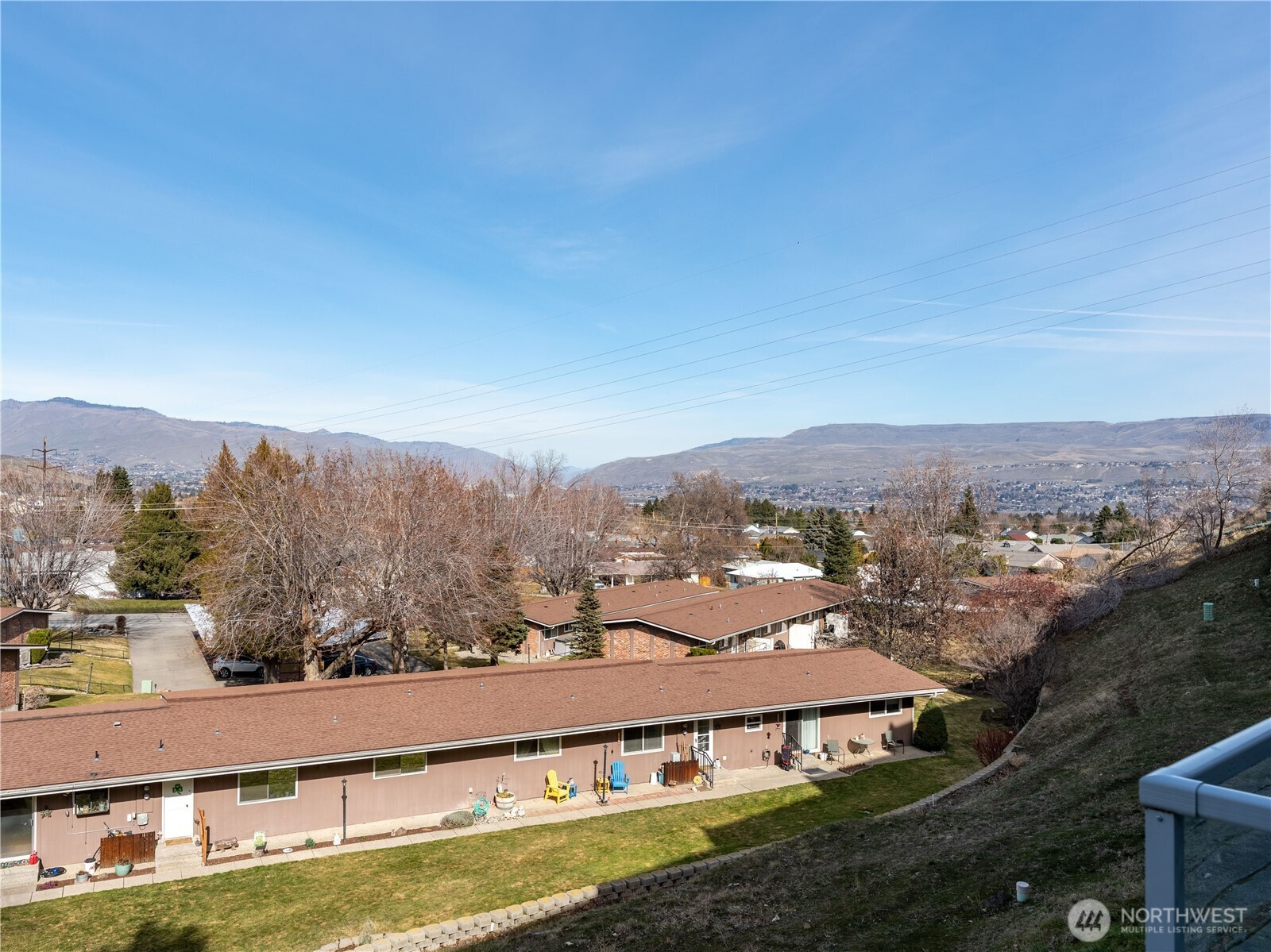 Stunning two-level townhouse-style condo with sweeping Wenatchee Valley, mountain, and river views! The main level features a galley kitchen that opens to the dining and great room with luxury vinyl plank flooring throughout. The primary suite offers dual sinks and a spacious closet. Downstairs includes two bedrooms plus a versatile bonus room—ideal for a home office or workout space—along with a laundry room featuring built-in shelving. New composition roof in 2023. HOA dues cover water, sewer, and garbage. Two covered parking spaces and a view deck perfect for enjoying wildlife and sparkling valley lights. Conveniently located near trails and shopping.